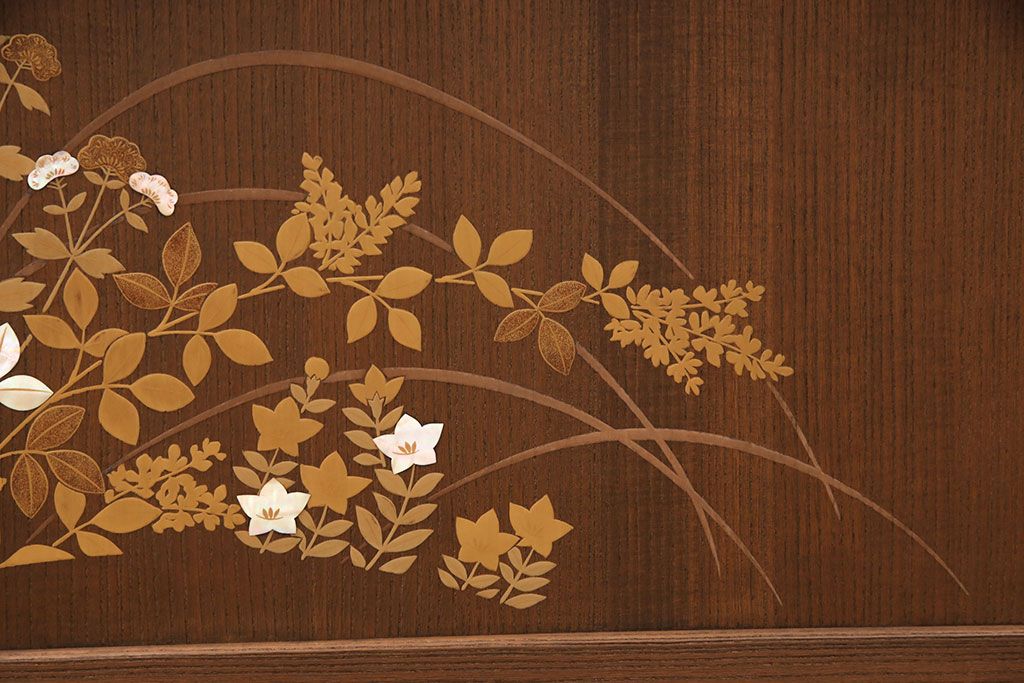 引き戸には蒔絵や螺鈿の意匠が施され、
