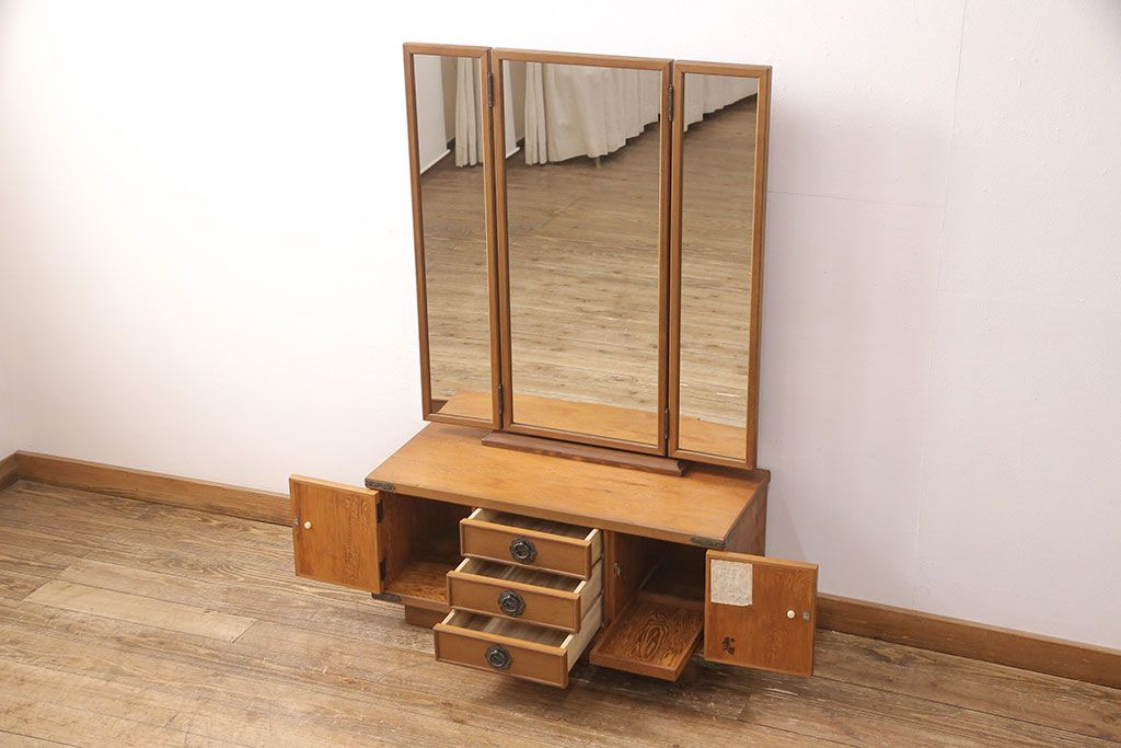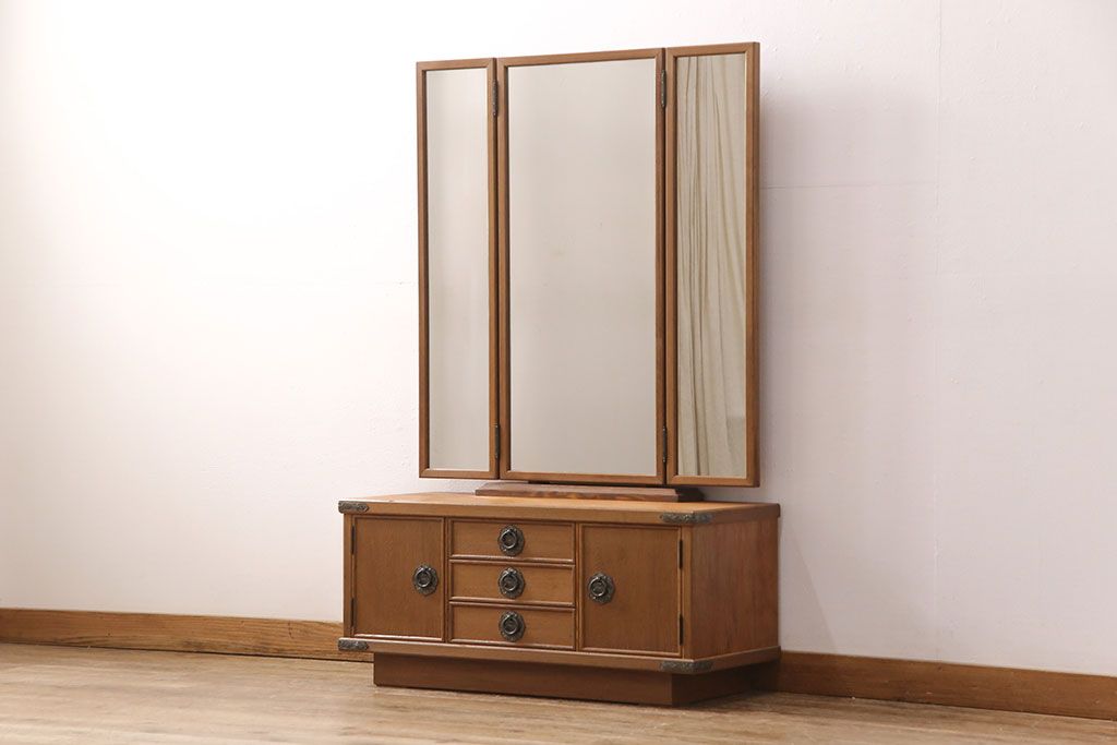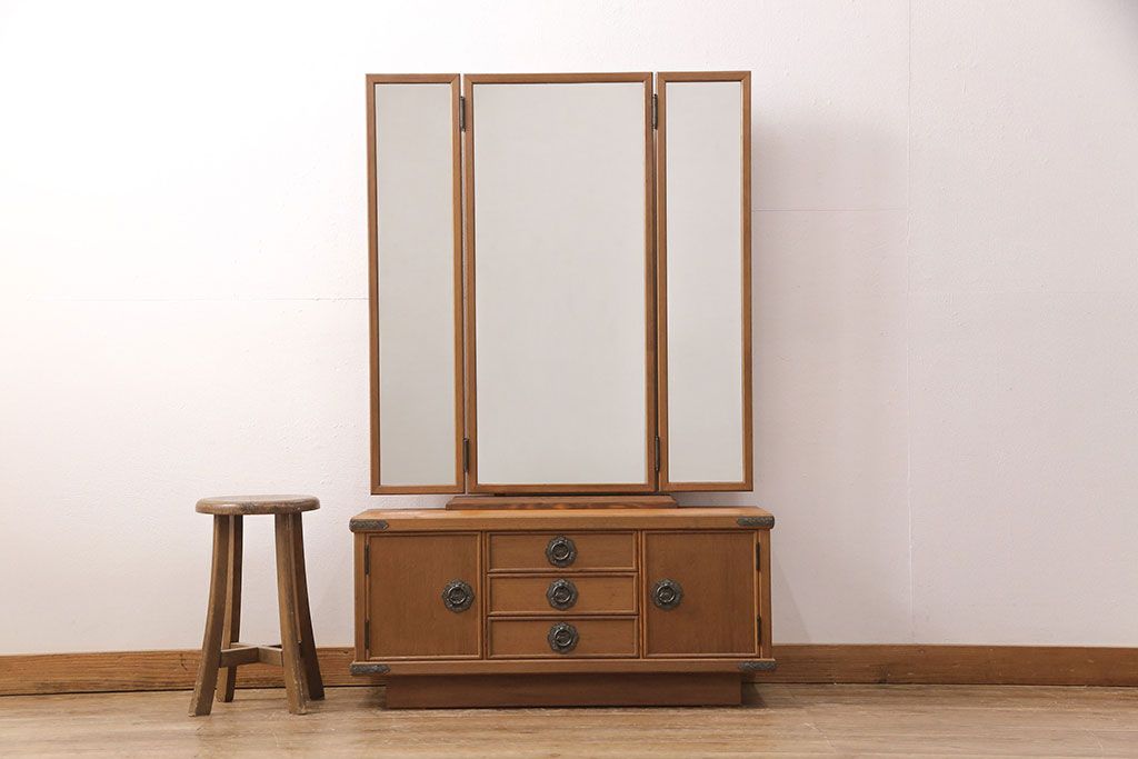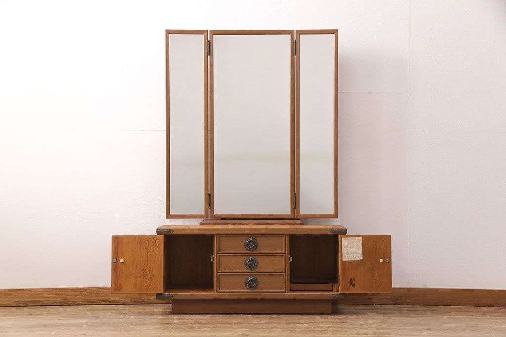 民芸家具 > 中古 美品 屋久杉を贅沢に使用した上品な佇まいの鏡台(姿見、ドレッサー、ミラー)(R-051745)