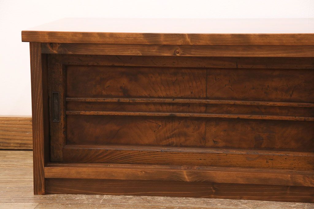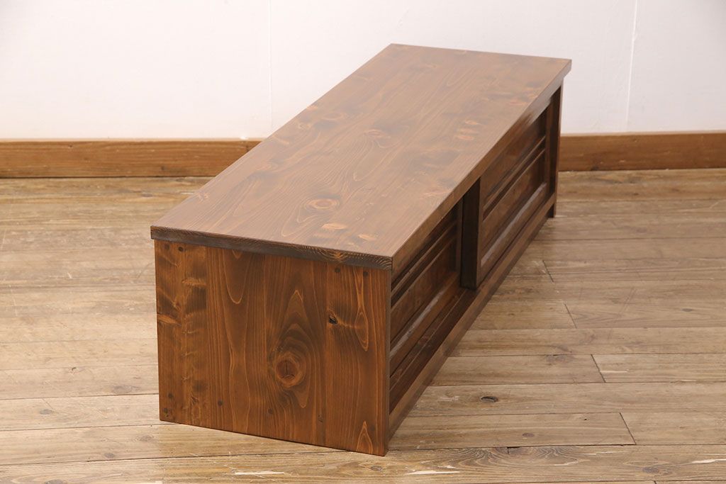 ラフジュ工房オリジナル 古建具リメイク 明るい木色がレトロな印象を高めるローボード(テレビ台、テレビボード、収納棚、リビング収納)(R-051852)です。