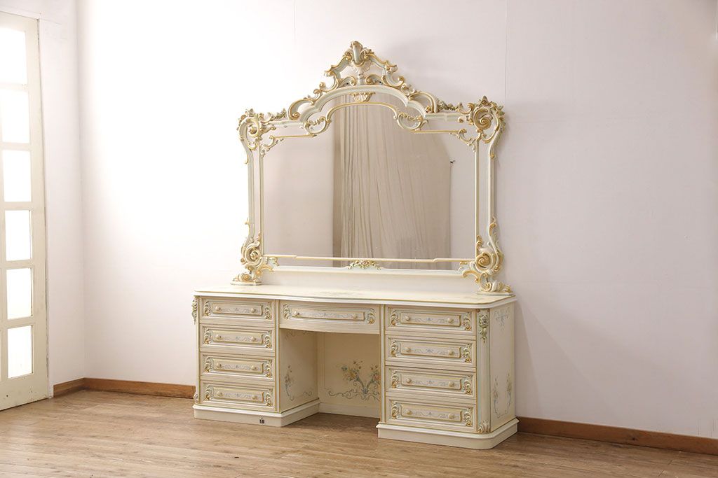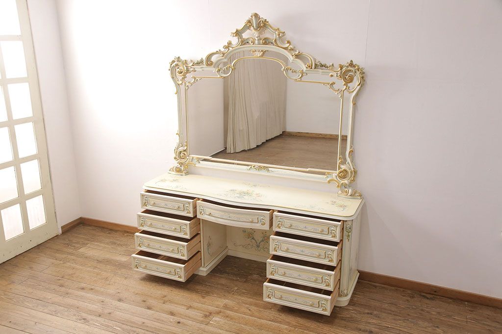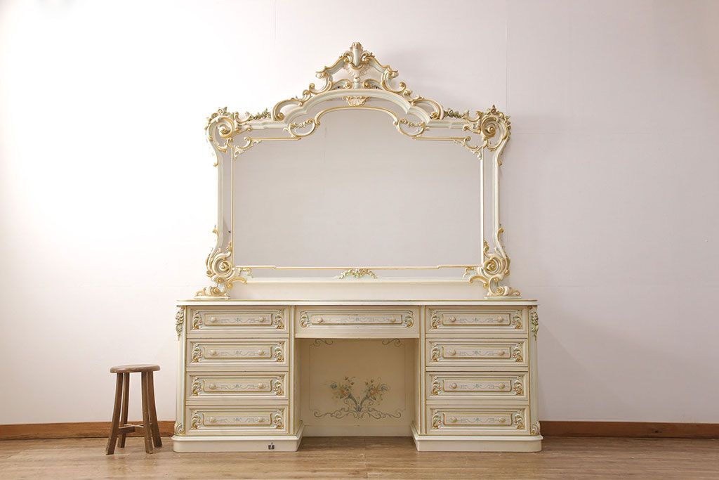 チェスト・引き出し> ドレッシングチェスト > 中古 イタリア高級家具 ノバパルク(NOVAPLAK) ロココ調の装飾が美しい!エレガントな空間作りに活躍するドレッサー(定価約200万円)(ドレッシングチェスト、キャビネット、サイドボード)(R-051847)