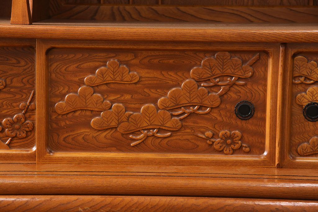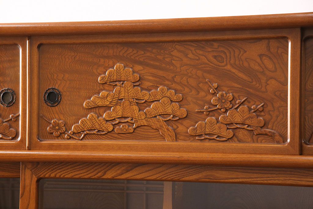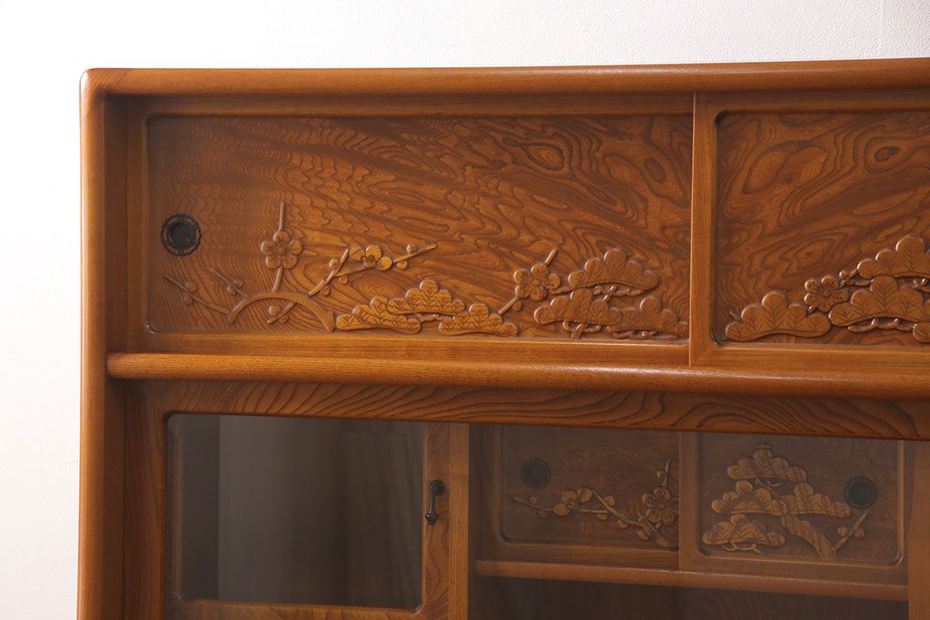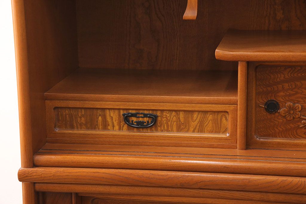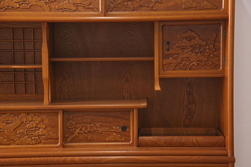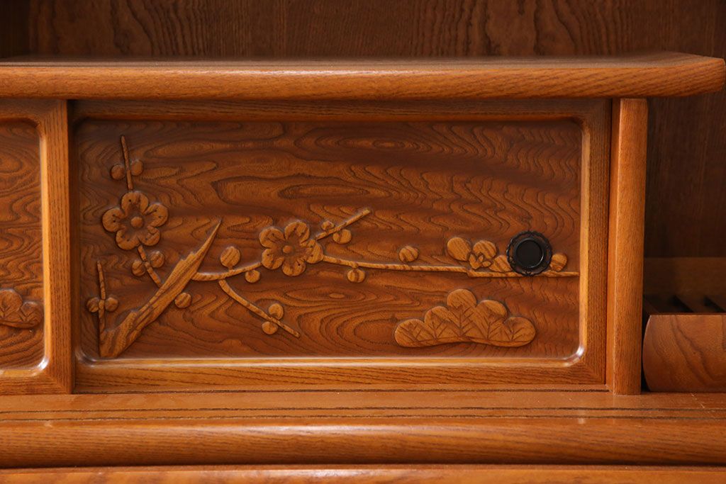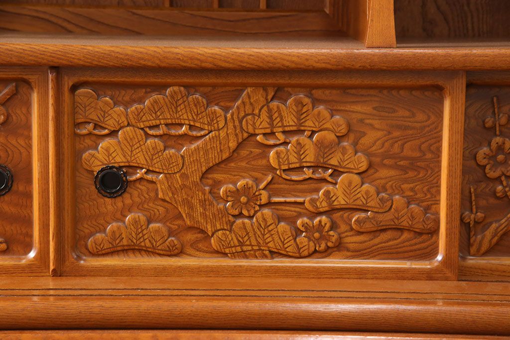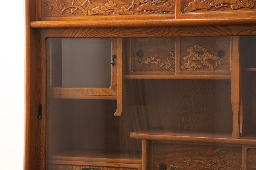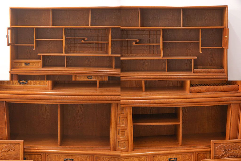 ラフジュ工房> 和箪笥> 茶箪笥・茶棚 > 中古 美品 前面ケヤキ材 なかなかお目にかかれない特大サイズの2段重ね茶箪笥(茶棚、食器棚、収納棚、キャビネット、戸棚)(定価約135万円)(R-051786)