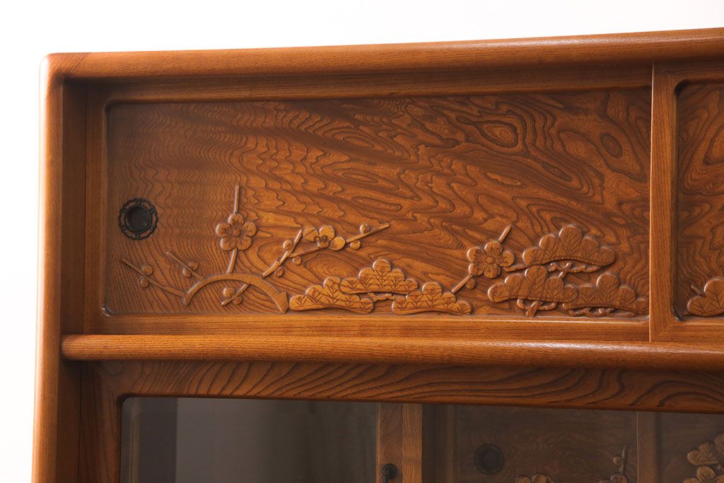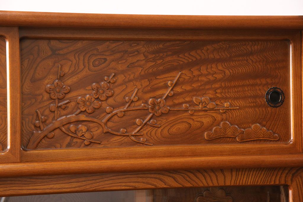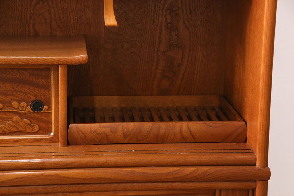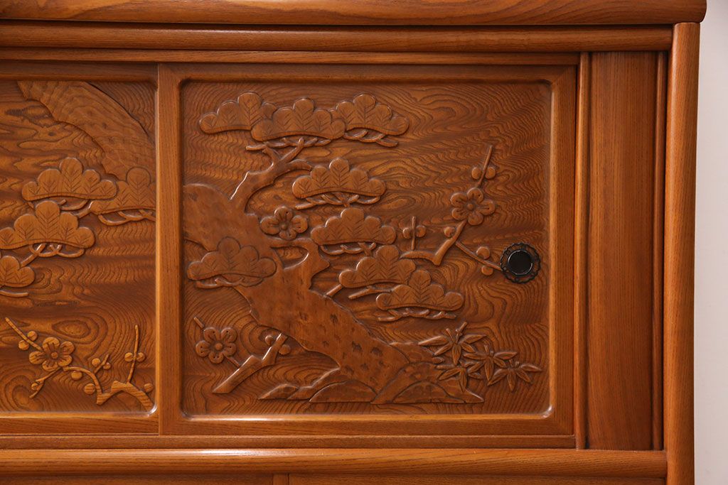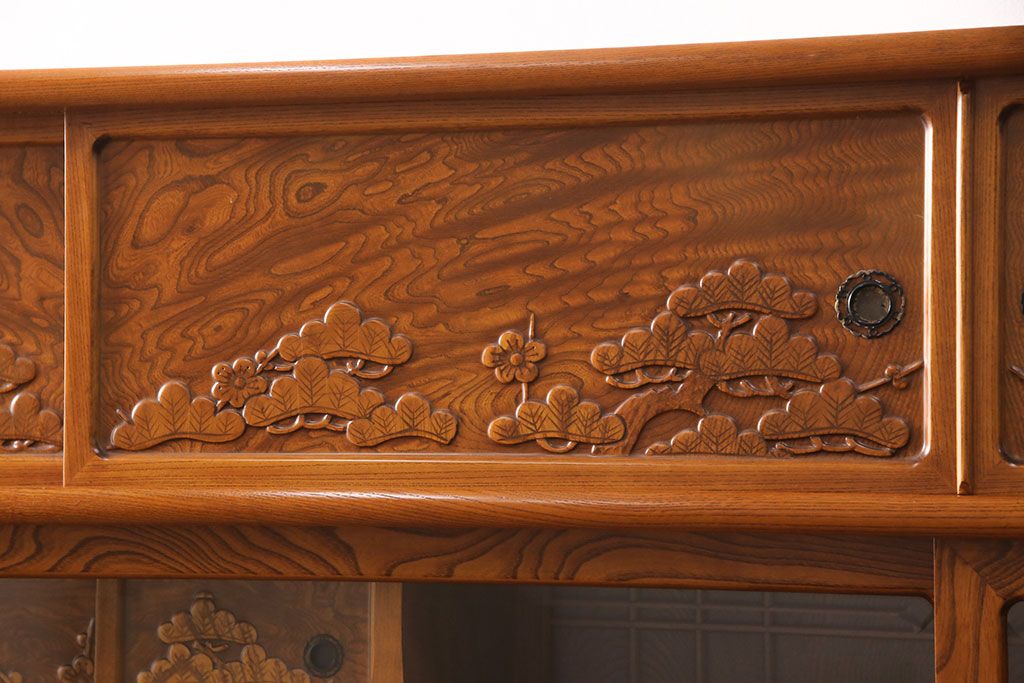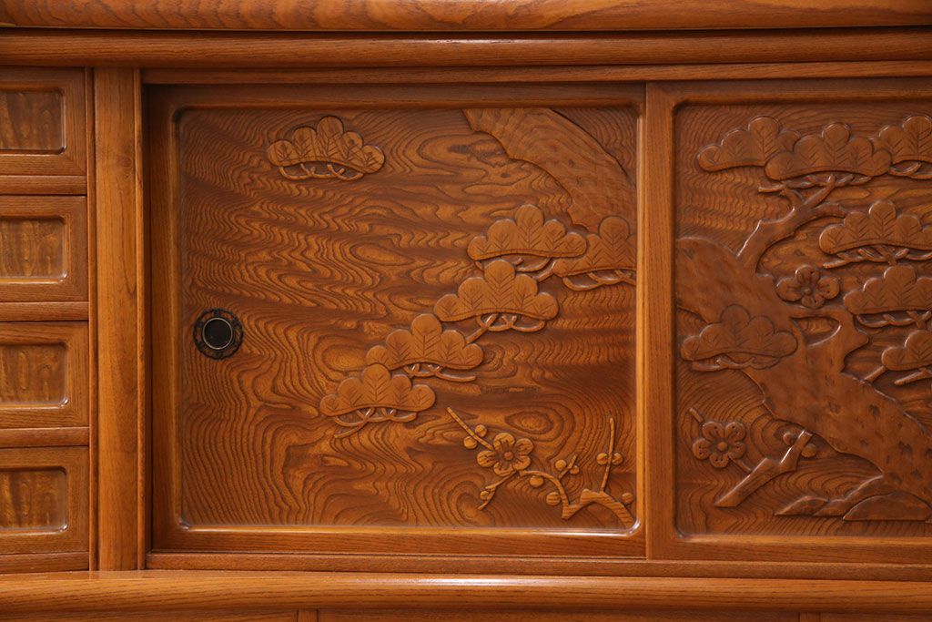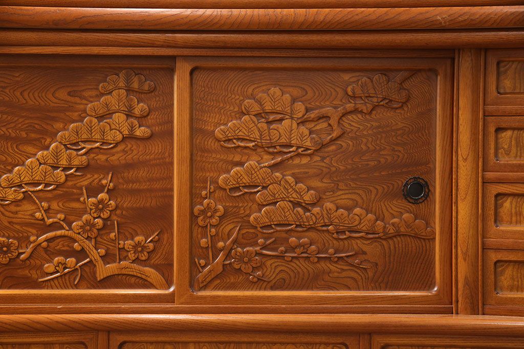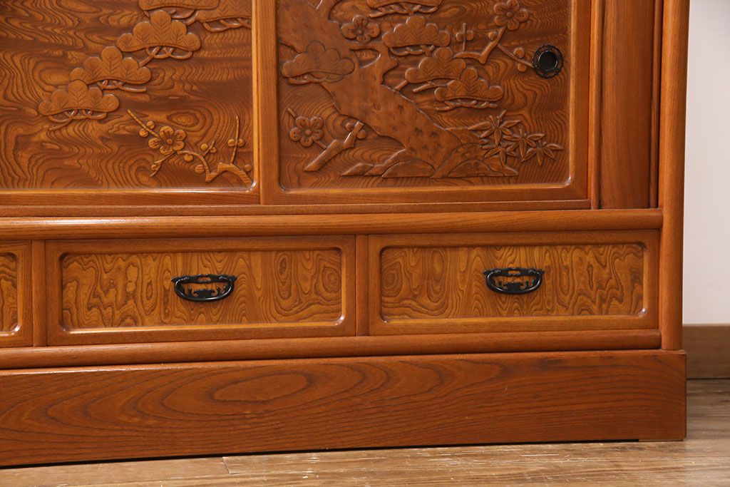 ラフジュ工房> 和箪笥> 茶箪笥・茶棚 > 中古 美品 前面ケヤキ材 なかなかお目にかかれない特大サイズの2段重ね茶箪笥(茶棚、食器棚、収納棚、キャビネット、戸棚)(定価約135万円)(R-051786)