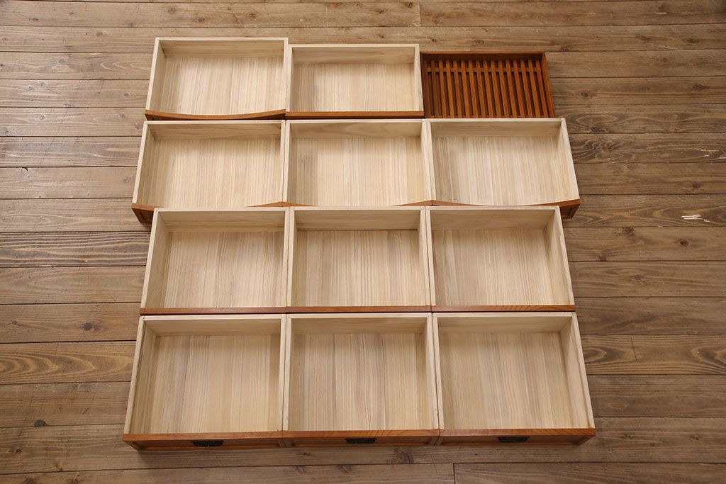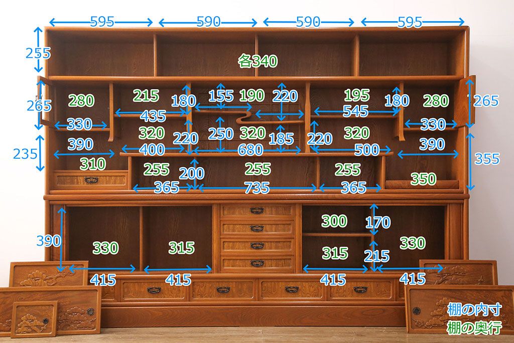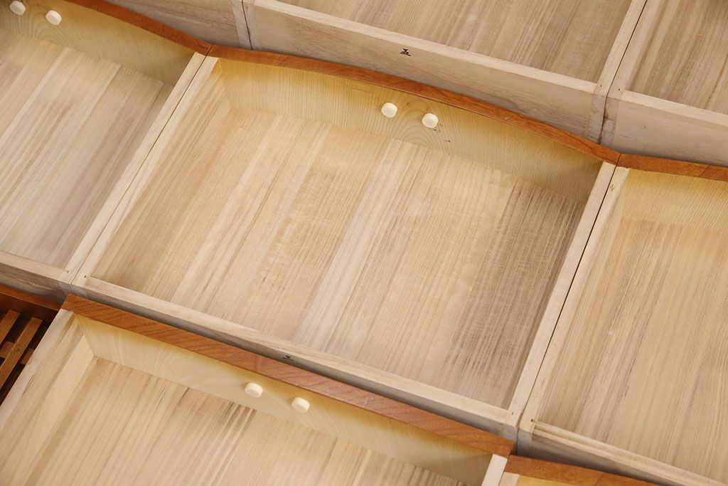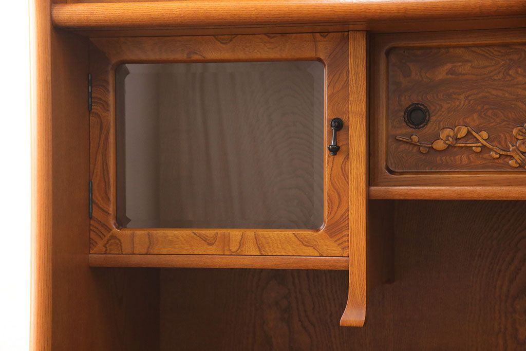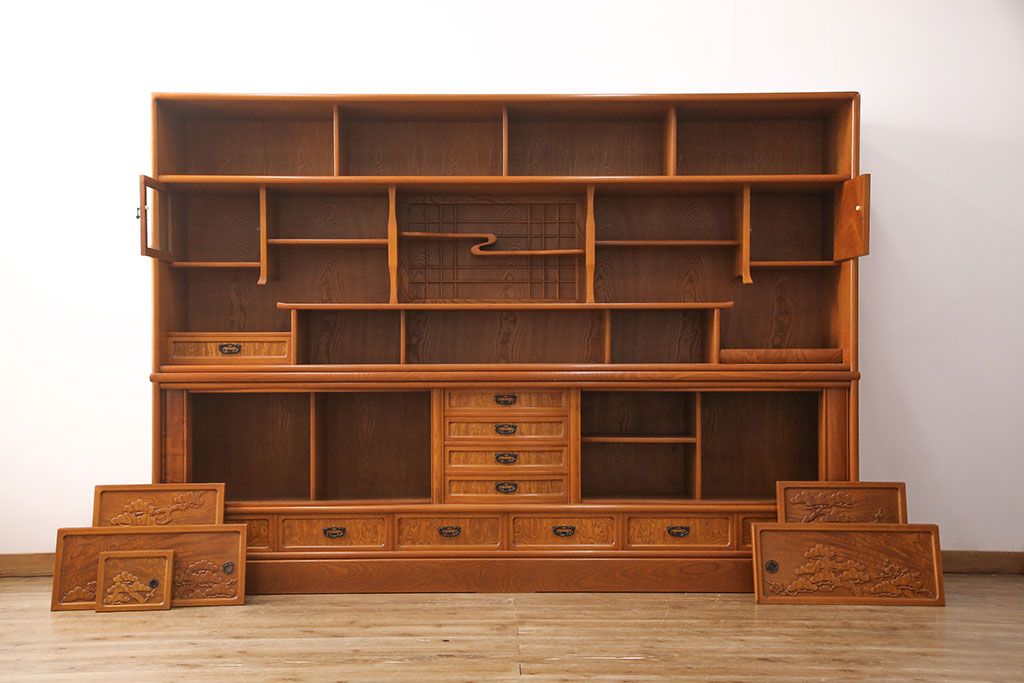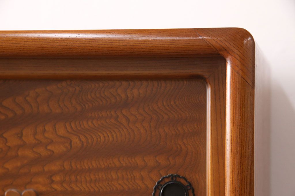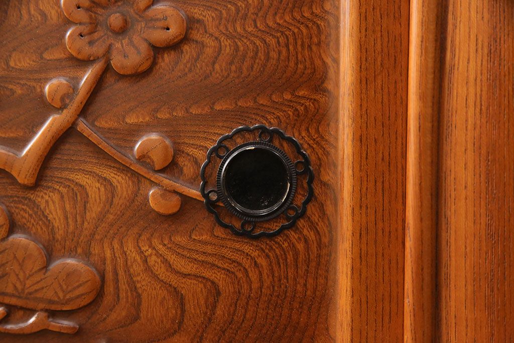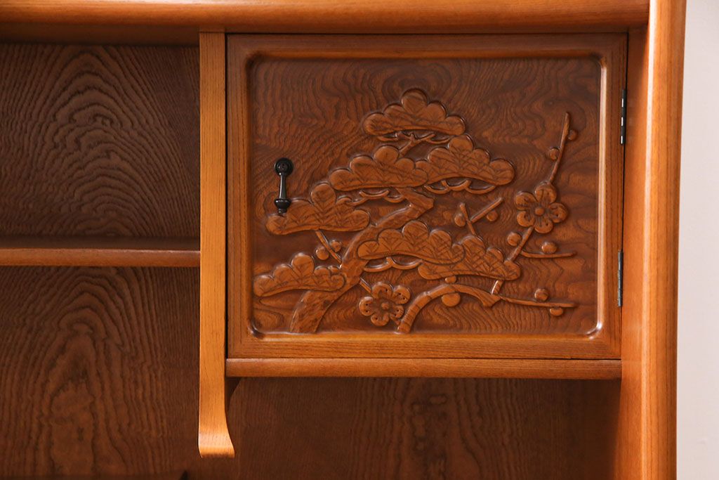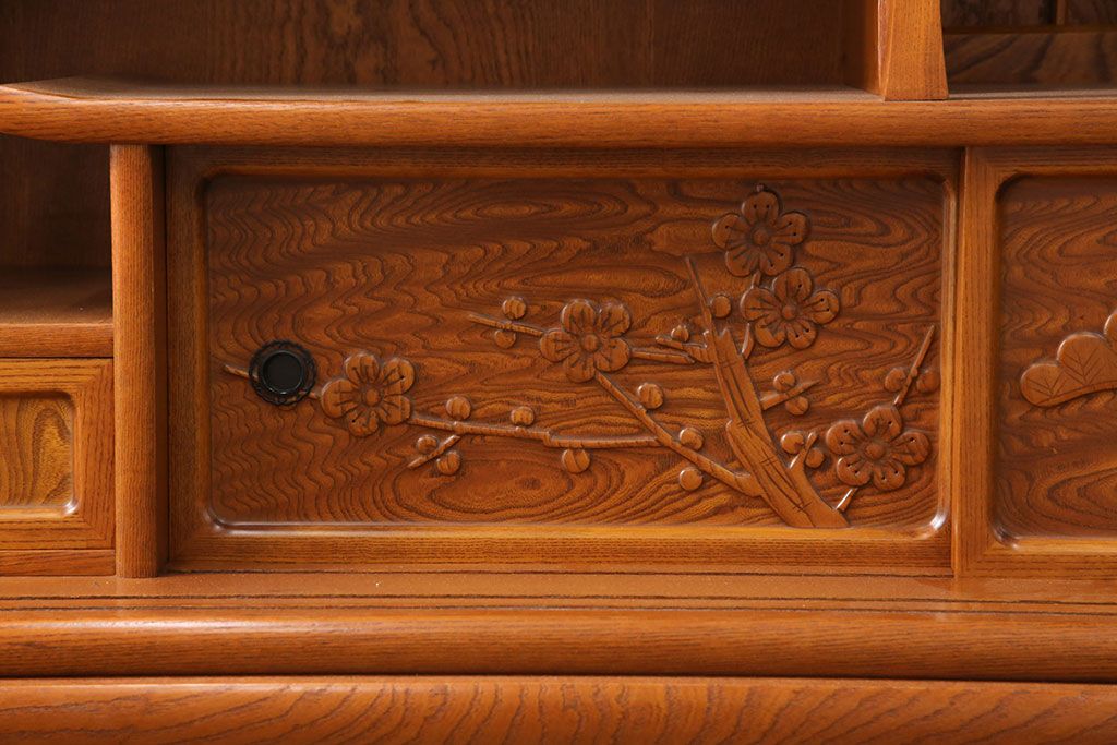 ラフジュ工房> 和箪笥> 茶箪笥・茶棚 > 中古 美品 前面ケヤキ材 なかなかお目にかかれない特大サイズの2段重ね茶箪笥(茶棚、食器棚、収納棚、キャビネット、戸棚)(定価約135万円)(R-051786)