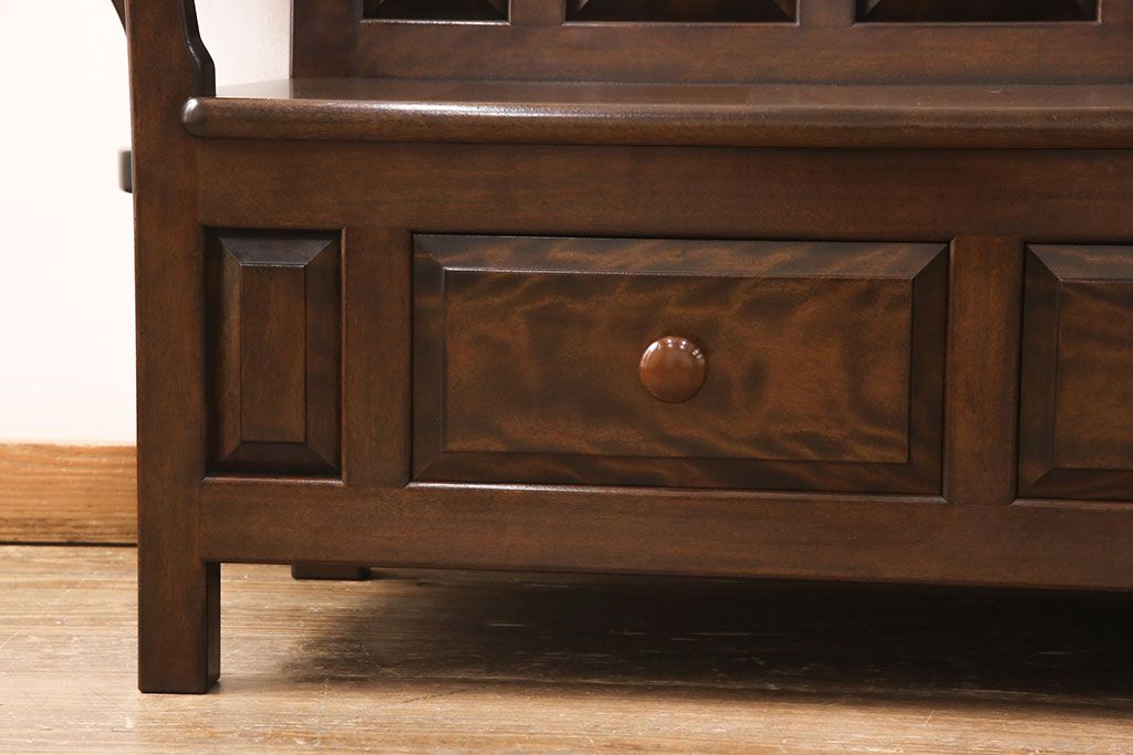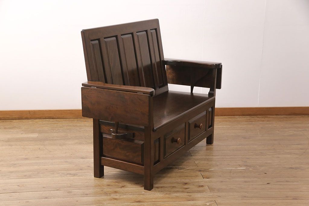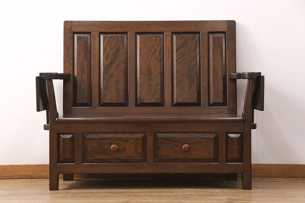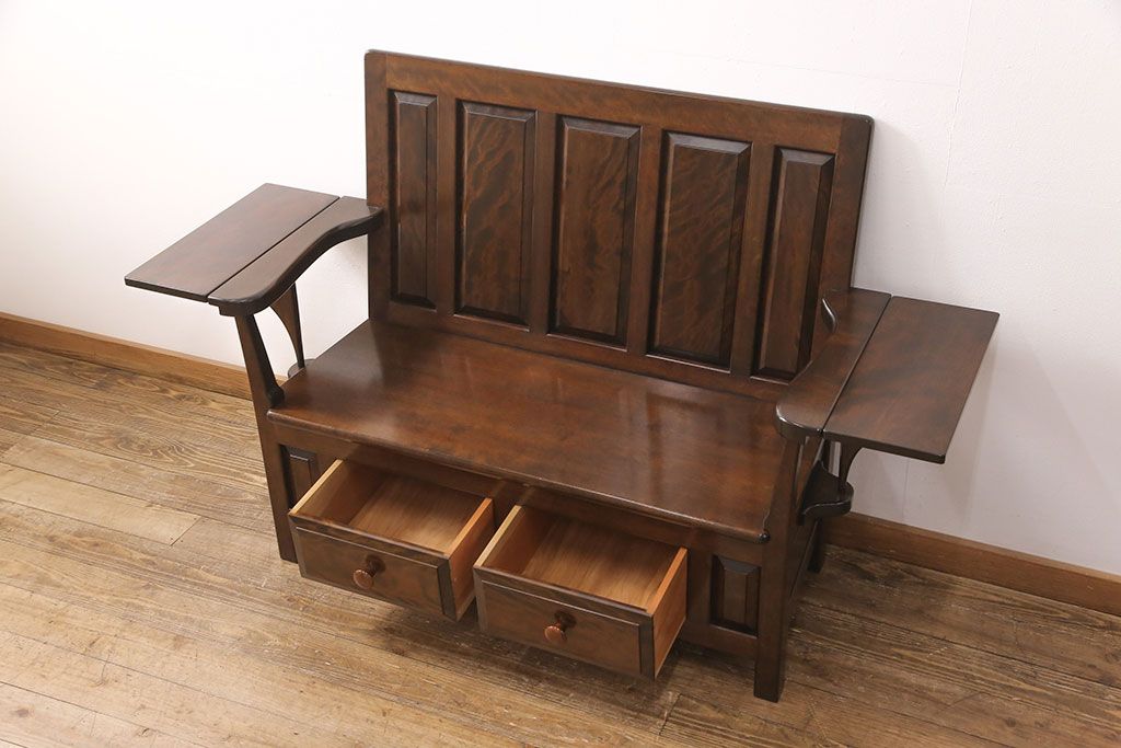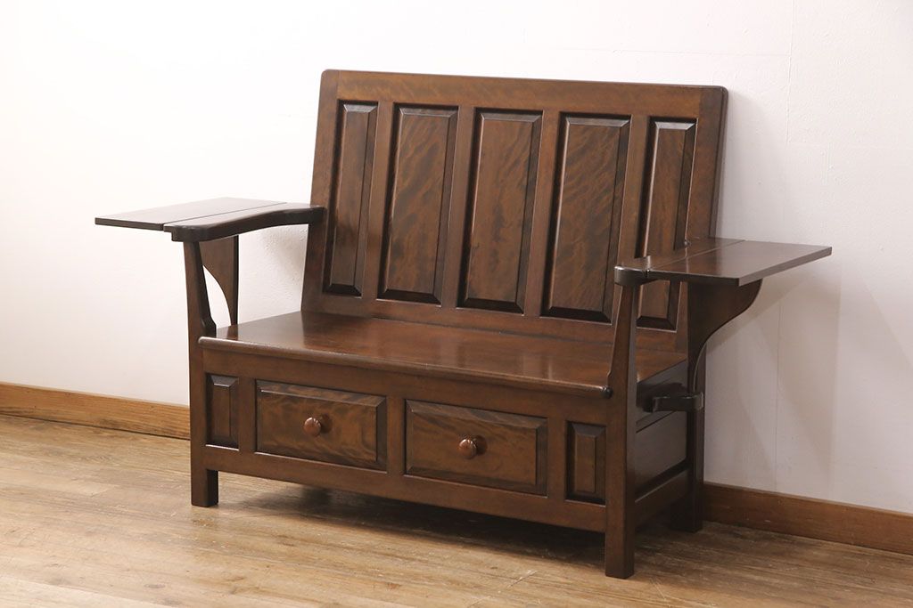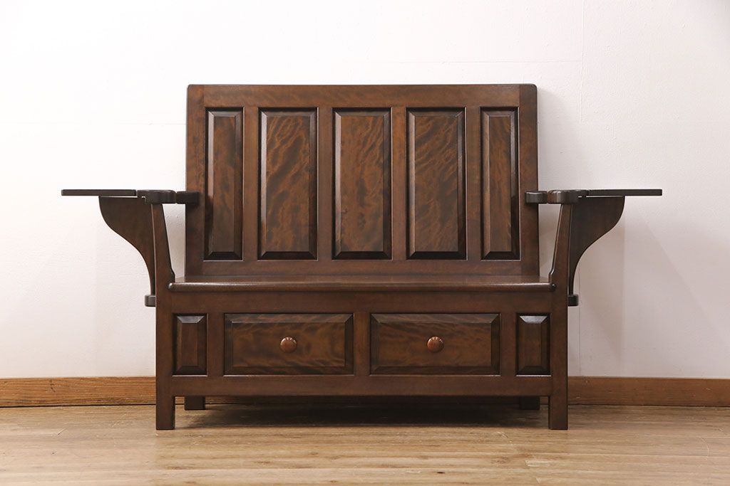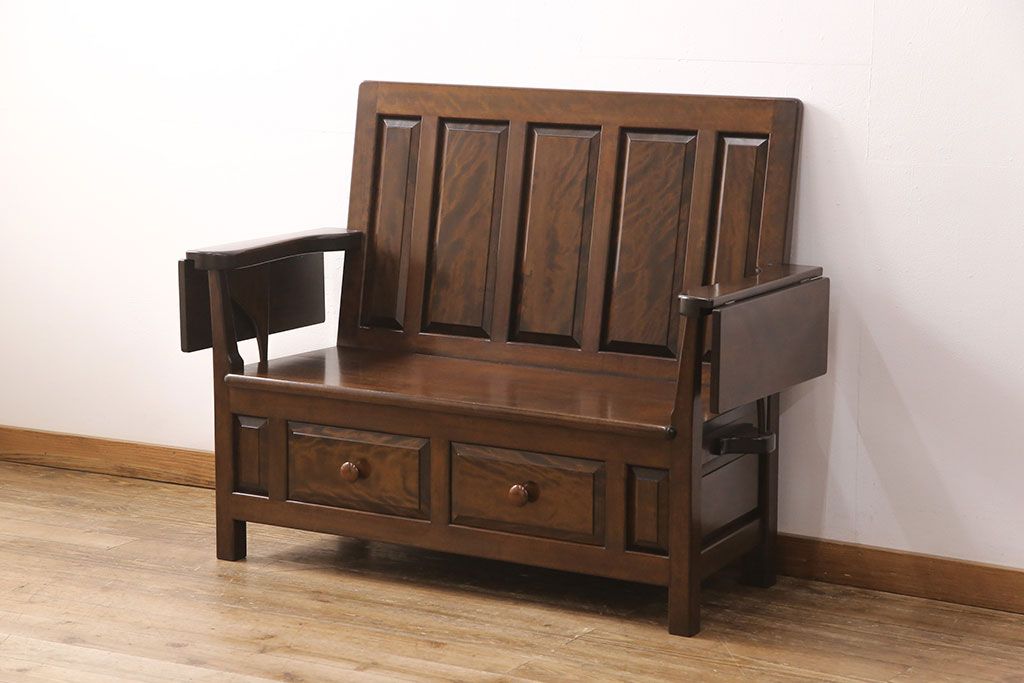 民芸家具 > 中古 美品 松本民芸家具 シックな大人の空間を演出する羽根付ベンチ(長椅子、二人掛けベンチ、板座)(R-051783)