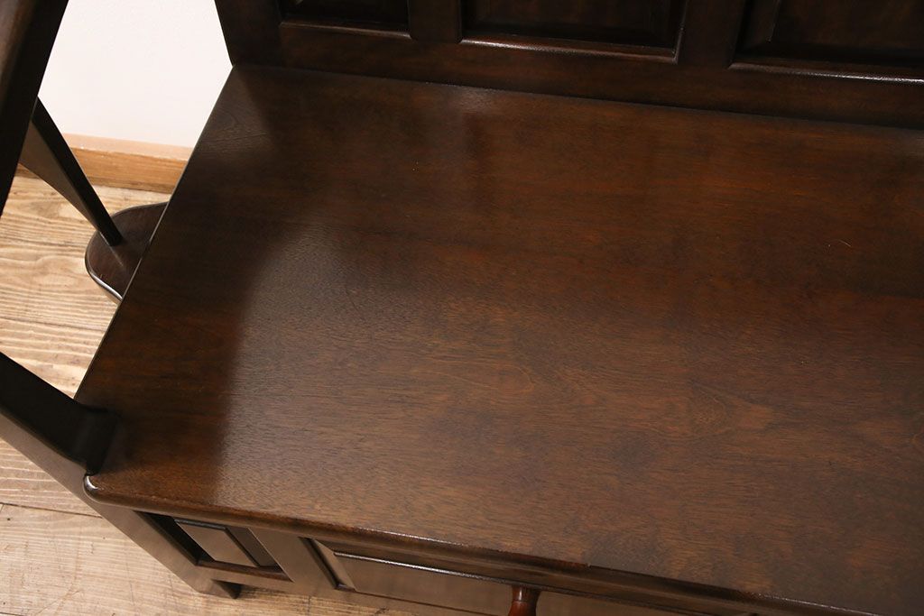 椅子・ベンチ> ベンチ > 中古 美品 松本民芸家具 シックな大人の空間を演出する羽根付ベンチ(長椅子、二人掛けベンチ、板座)(R-051783)