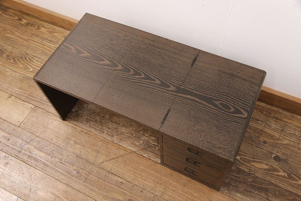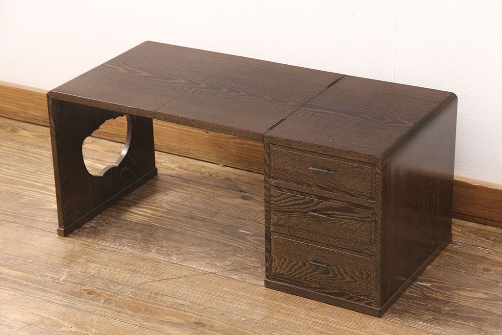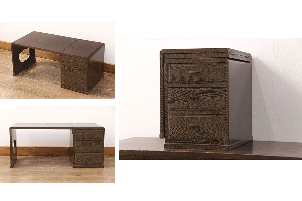 デスク> 片袖机・両袖机 > 中古 美品 国産手造り家具 コンパクトに収納できてお部屋に取り入れやすい、折りたたみ式文机(折り畳み、座机、ローテーブル、座卓、小引き出し)(R-051799)