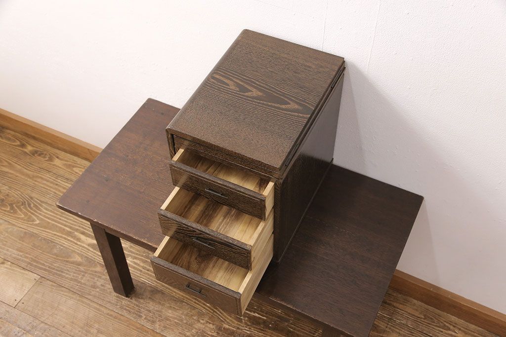 小物収納・トランク> 小引き出し > 中古 美品 国産手造り家具 コンパクトに収納できてお部屋に取り入れやすい、折りたたみ式文机(折り畳み、座机、ローテーブル、座卓、小引き出し)(R-051799)