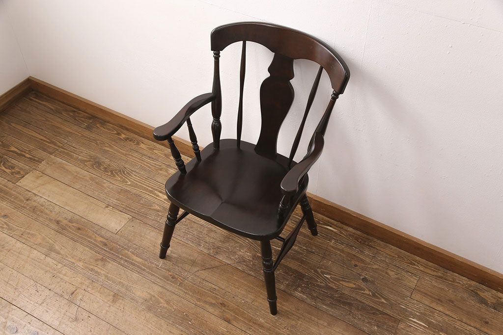 中古 美品 北海道民芸家具 HM661 クラシカルな佇まいのオックスボーアームチェア(オックスボウ、ダイニングチェア、椅子)(R-051795)