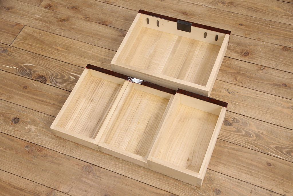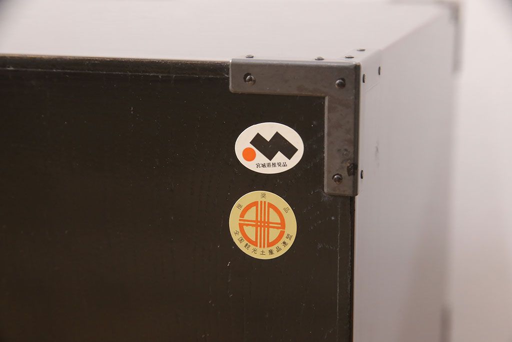 中古 極美品 欅産業 KM-3D 木地呂漆塗り 迫力のある手打ち金具が目を引く仙台民芸小箪笥(片開小箪笥、小引き出し)(R-051800)です。