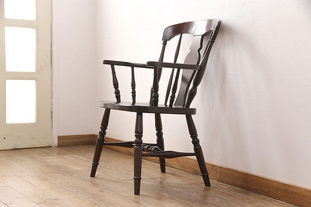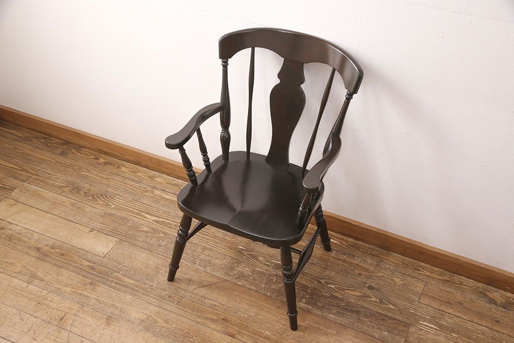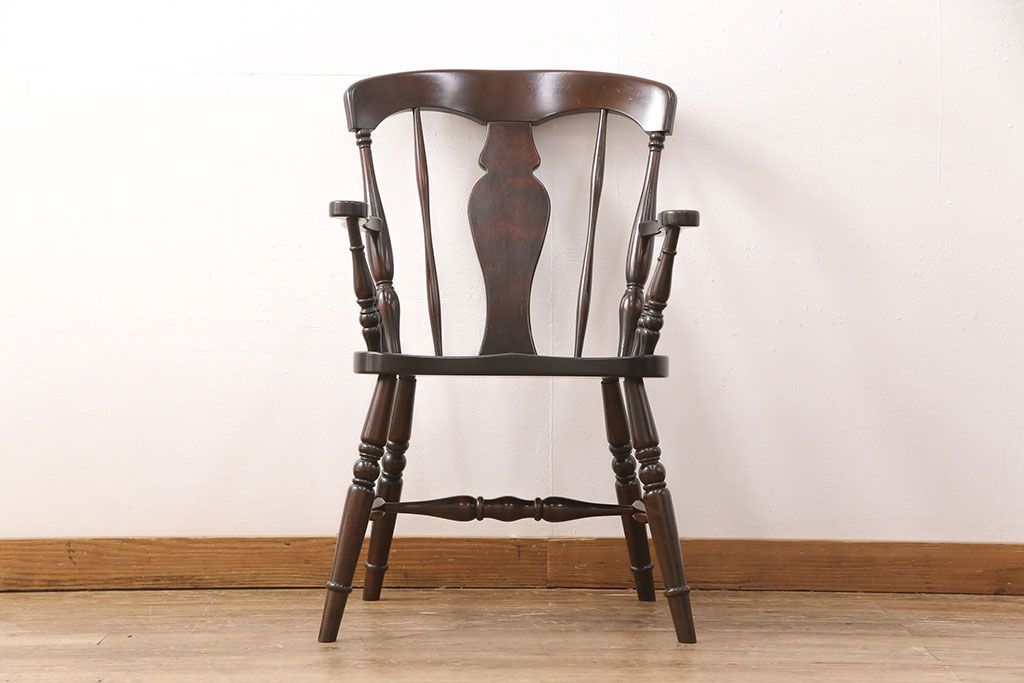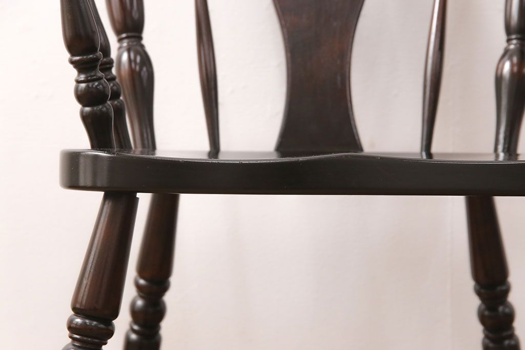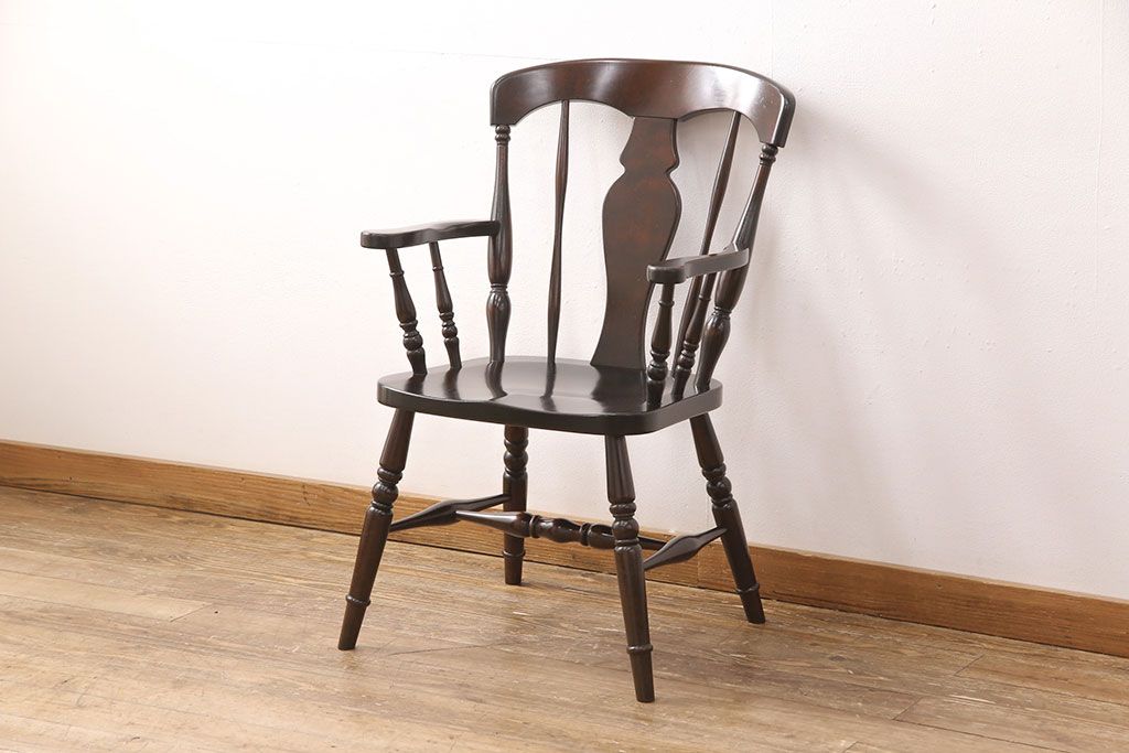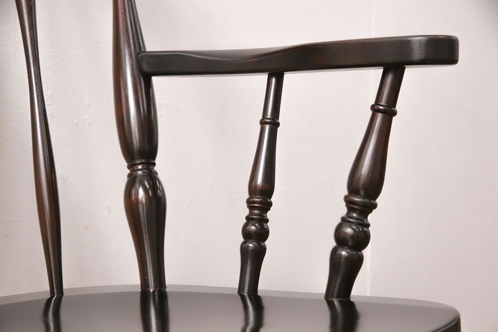 椅子・ベンチ> アームチェア > 中古 北海道民芸家具 上品な雰囲気漂うアームチェア(ウィンザーチェア、ダイニングチェア、板座チェア、ウインザーチェア)(R-051803)