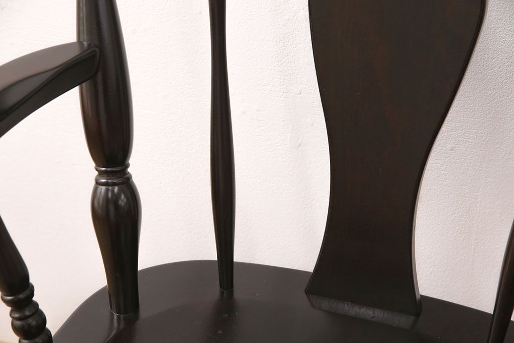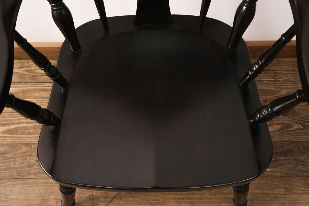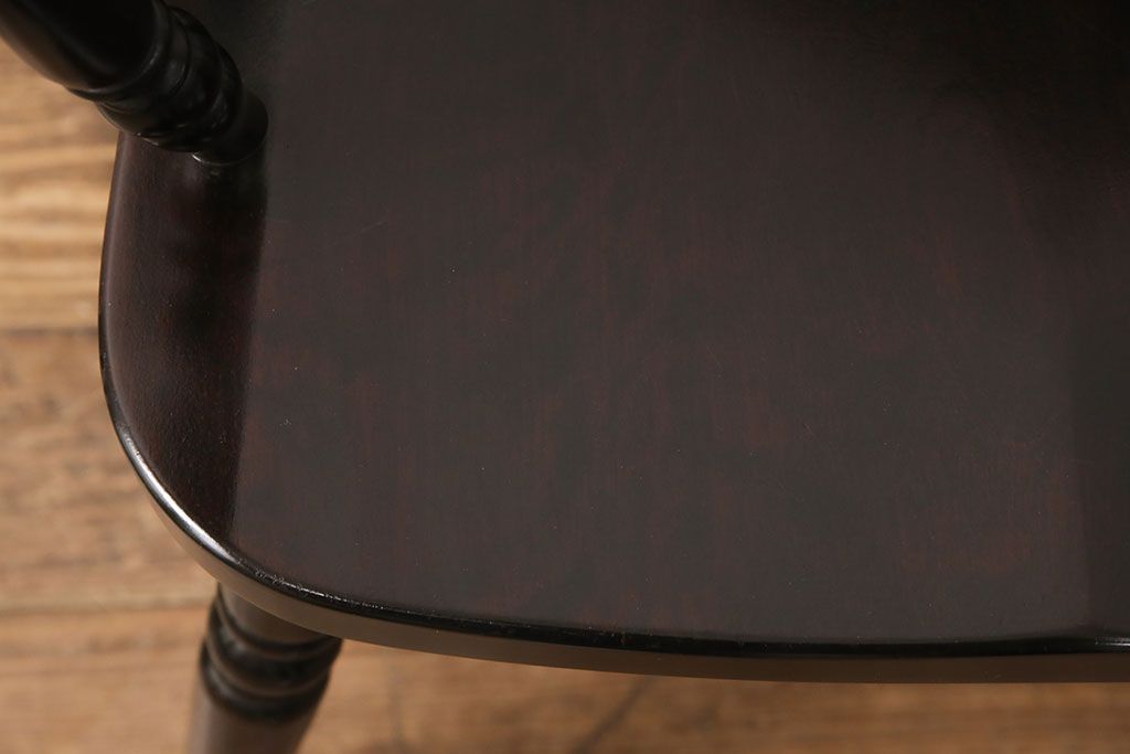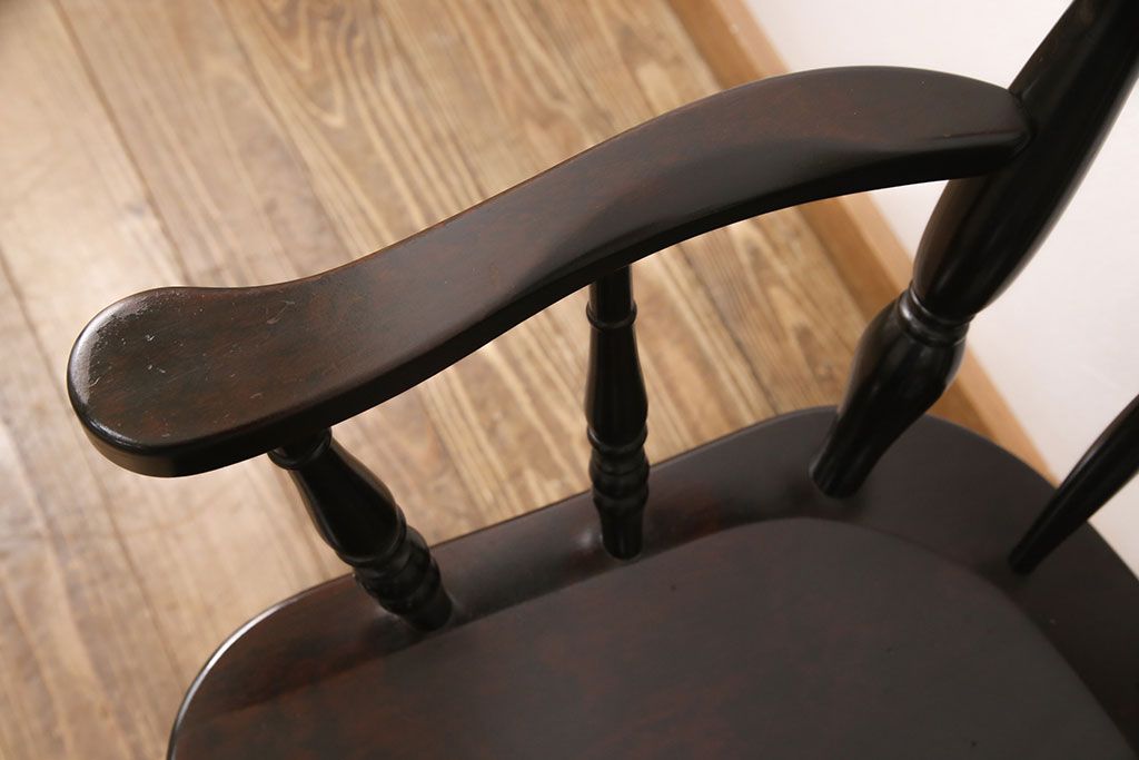 椅子・ベンチ> ウィンザーチェア > 中古 北海道民芸家具 上品な雰囲気漂うアームチェア(ウィンザーチェア、ダイニングチェア、板座チェア、ウインザーチェア)(R-051803)