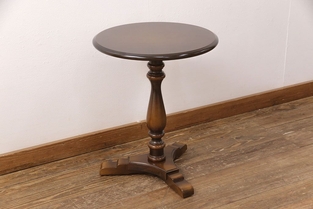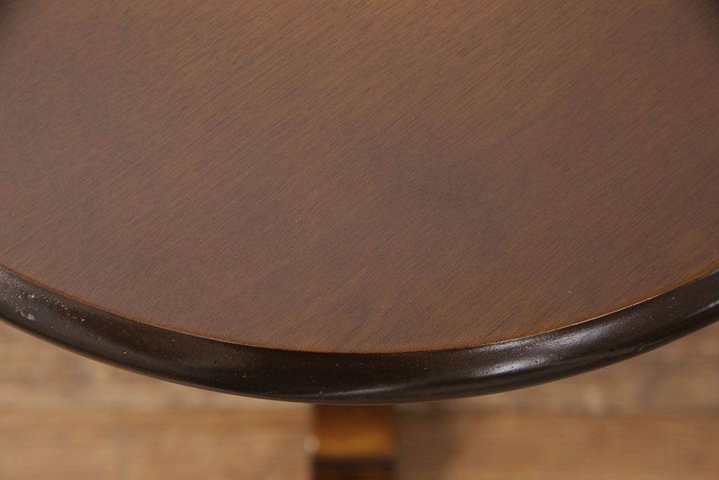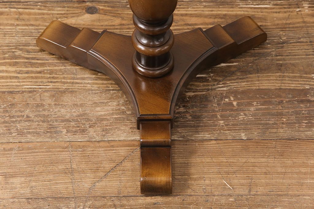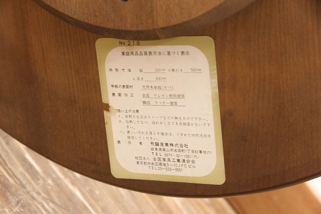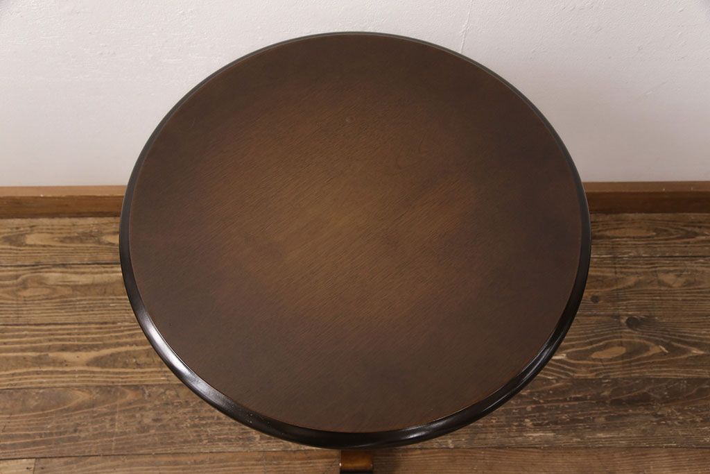和製ヴィンテージ 飛騨産業 キツツキ 丸い天板のサイドテーブル(飾り台、花台)(R-051749)