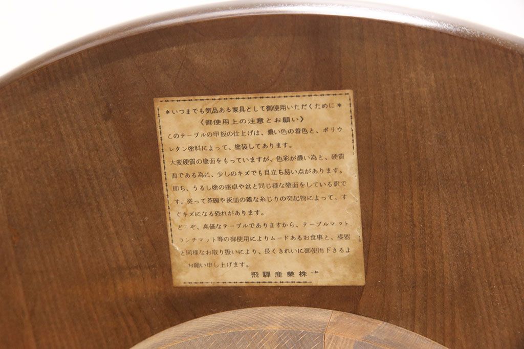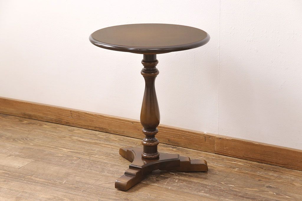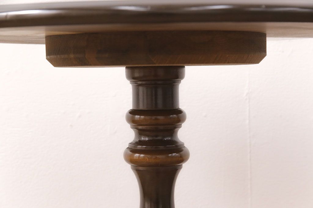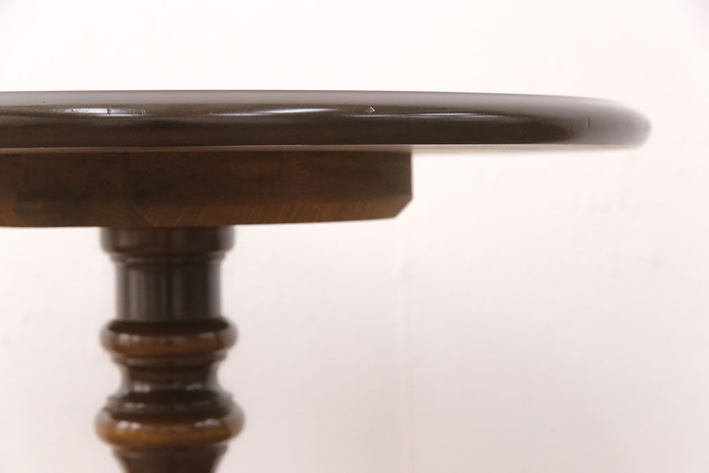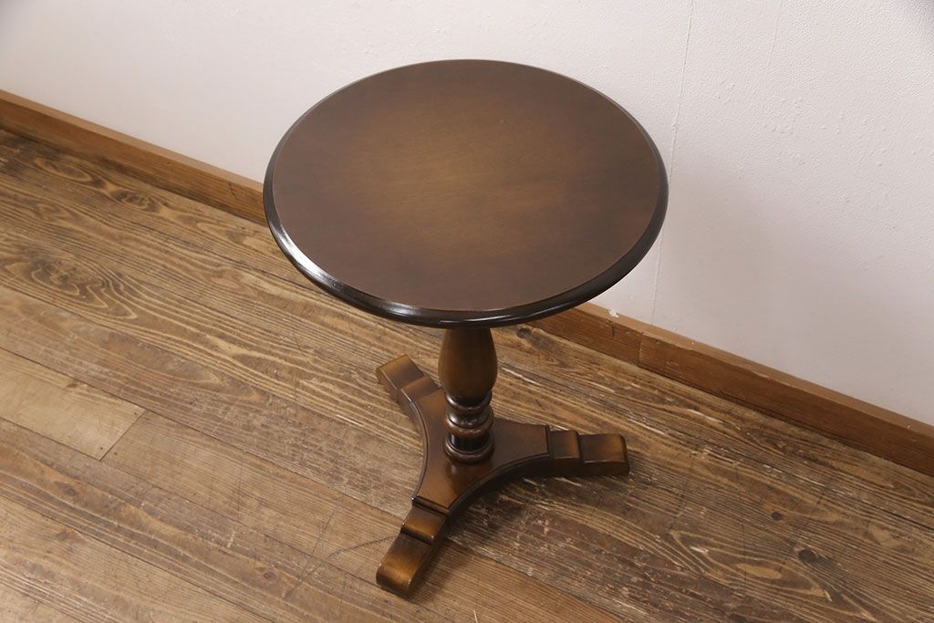 和製ヴィンテージ 飛騨産業 キツツキ 丸い天板のサイドテーブル(飾り台、花台)(R-051749)