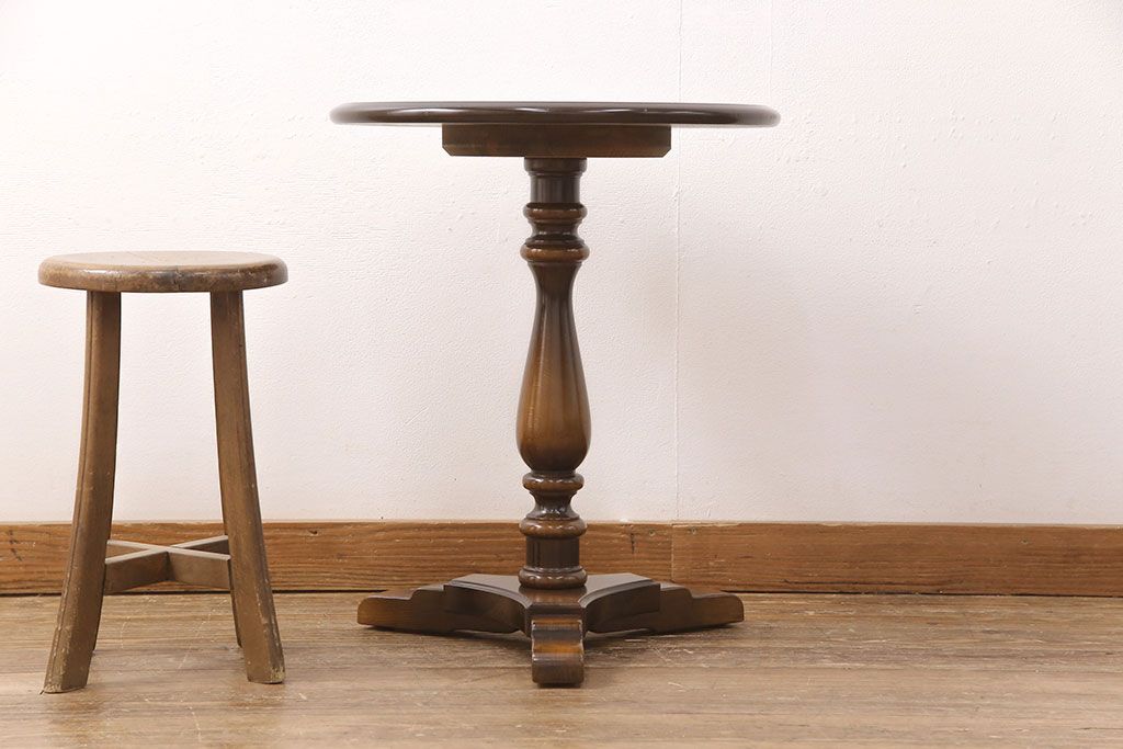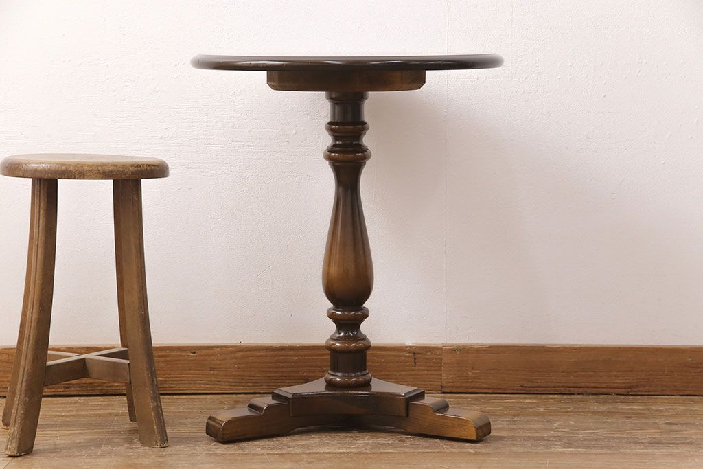 和製ヴィンテージ 飛騨産業 キツツキ 丸い天板のサイドテーブル(飾り台、花台)(R-051749)です。