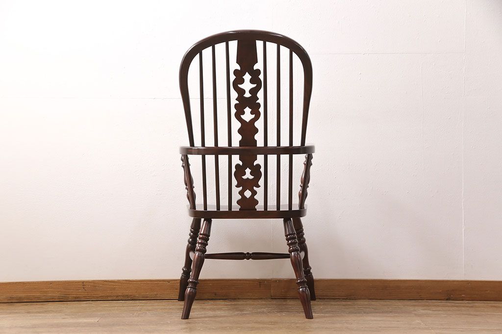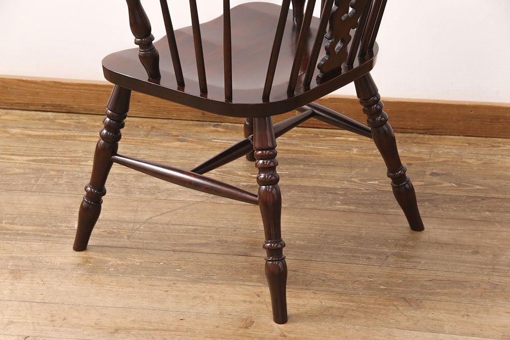 中古 美品 松本民芸家具風 背もたれのデザインがお洒落な上質なつくりのウィンザーチェア(アームチェア、椅子、ウインザーチェア)(R-051742)
