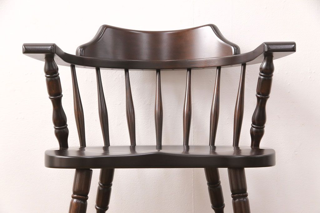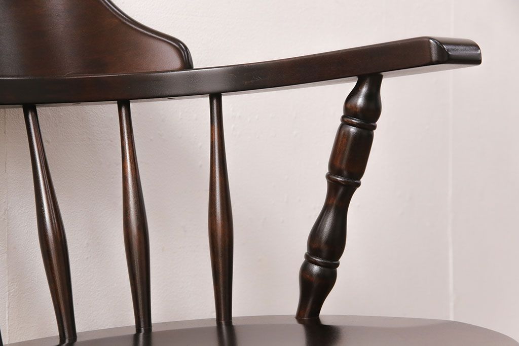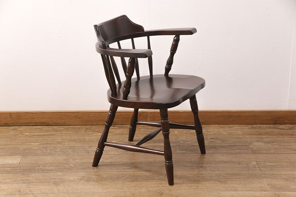 中古 美品 北海道民芸家具 HM630 格好良い佇まいが魅力のキャプテンチェア(肘掛け椅子、アームチェア、イス)(R-051741)