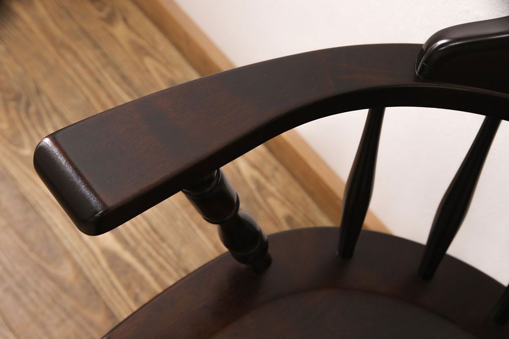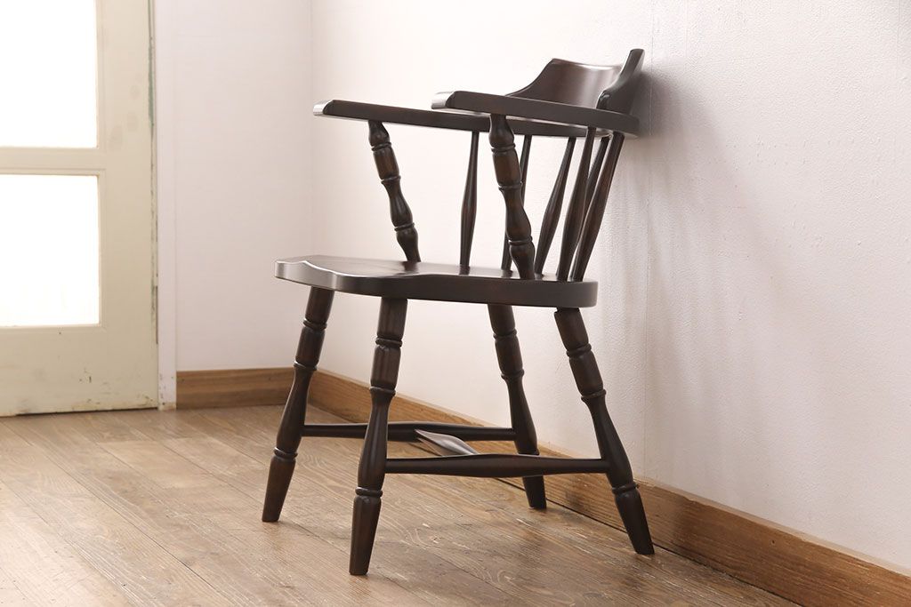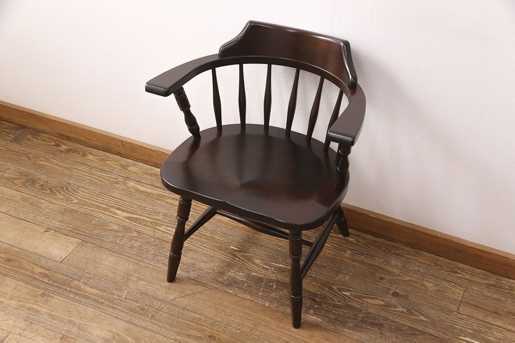 椅子・ベンチ> ダイニングチェア > 中古 美品 北海道民芸家具 HM630 格好良い佇まいが魅力のキャプテンチェア(肘掛け椅子、アームチェア、イス)(R-051741)