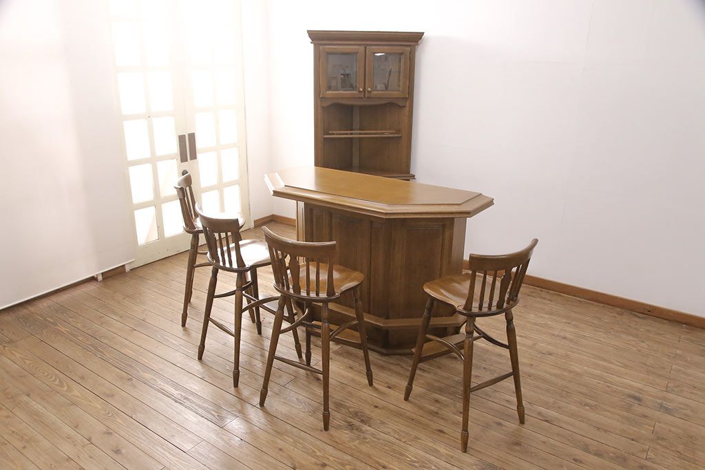中古 美品 柏木工(KASHIWA・カシワ) Oscar Getzシリーズ ナラ材 希少!!カウンターバーセット(カウンターチェア、コーナーキャビネット)(R-051721)