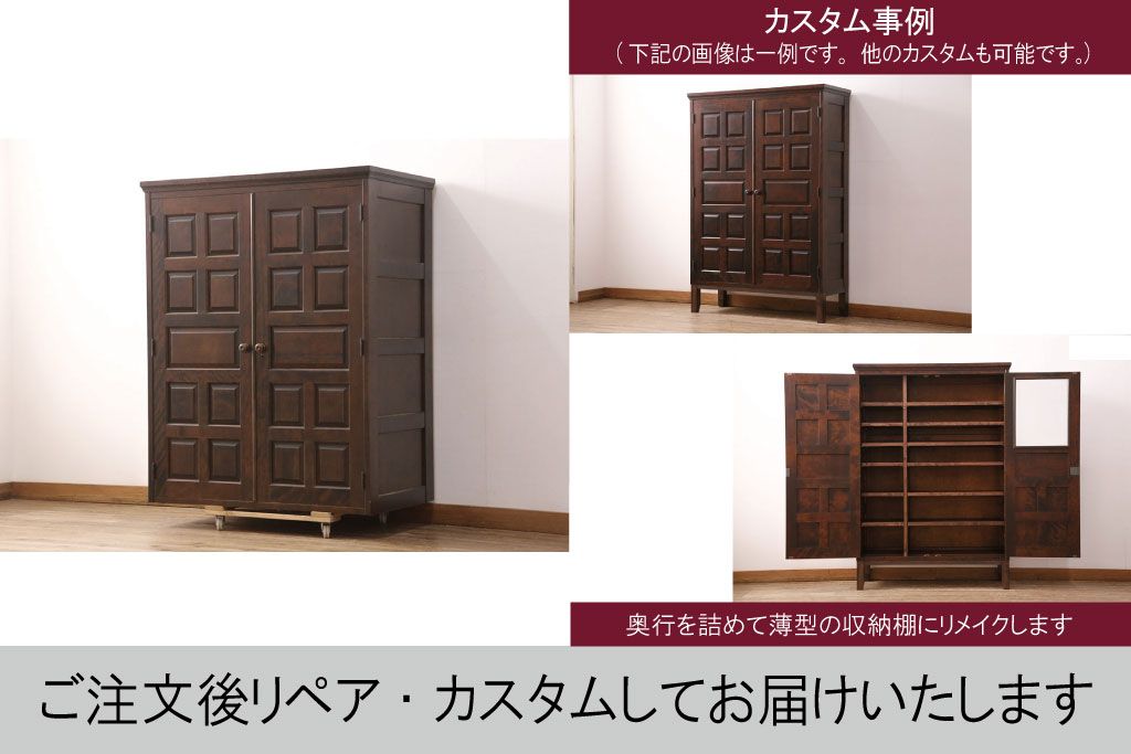 キャビネット・戸棚> 下駄箱 > 中古 北海道民芸家具 ワードローブをリメイク!取り入れやすいサイズに生まれ変わる収納棚(本箱、下駄箱、ブックケース、本箱、キャビネット)(R-051752)