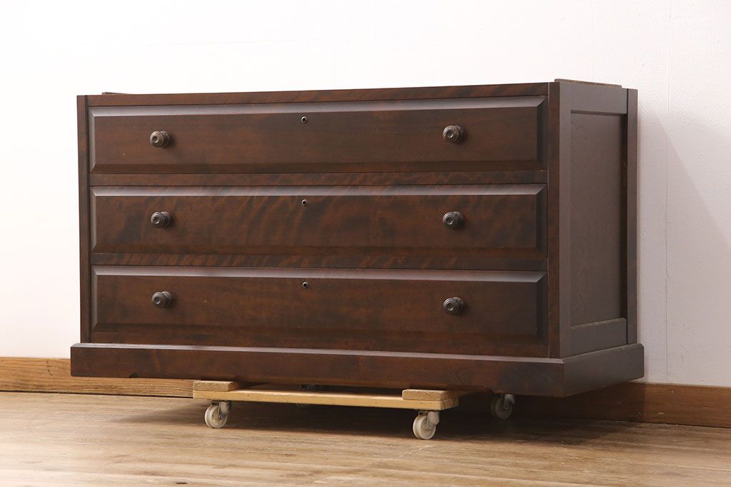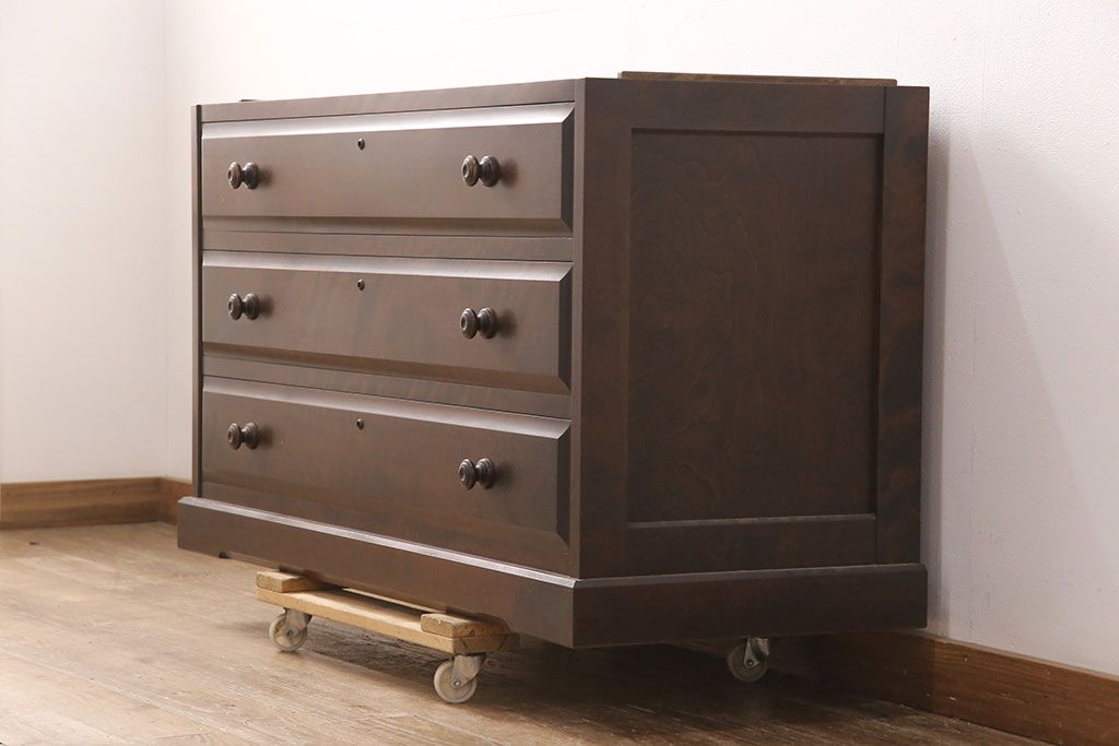 中古 天板リメイク 落ち着いた木の色合いが魅力的なチェスト(サイドボード、テレビボード、引き出し)(R-051758)
