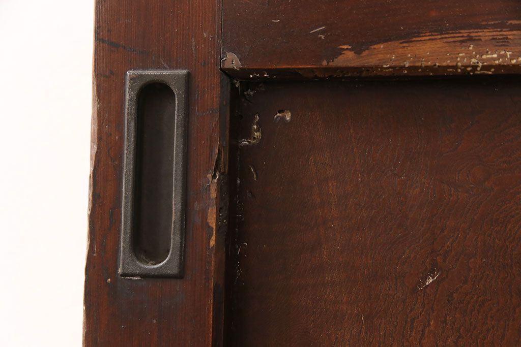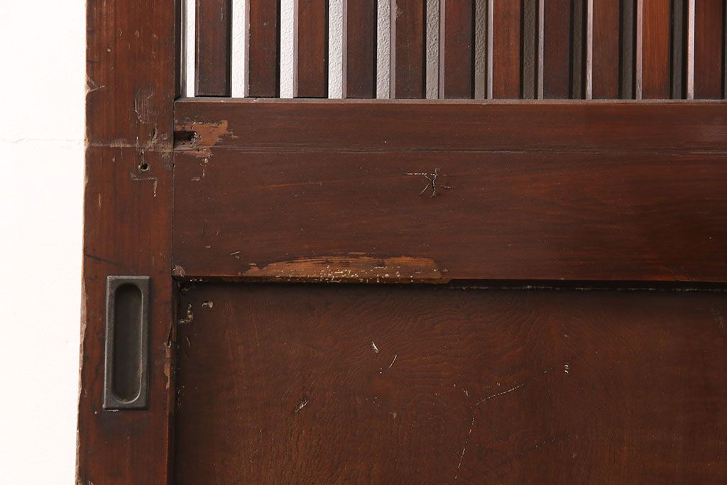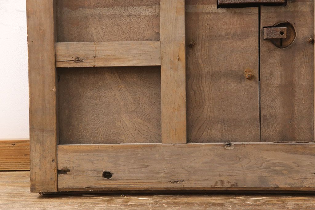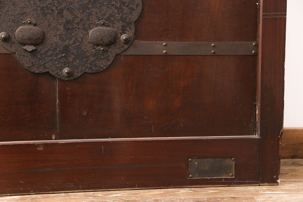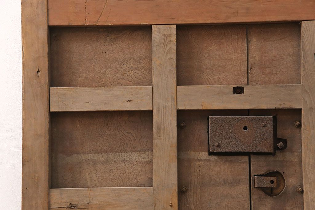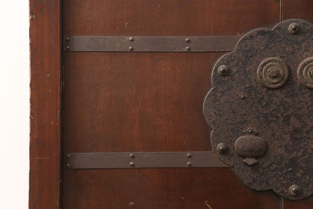 アンティーク建具 ヒノキ材・腰板ケヤキ材 玉杢 赤みがかった木肌と品のある金具が魅力の格子蔵戸1枚(玄関戸、玄関ドア、引き戸)(R-051731)