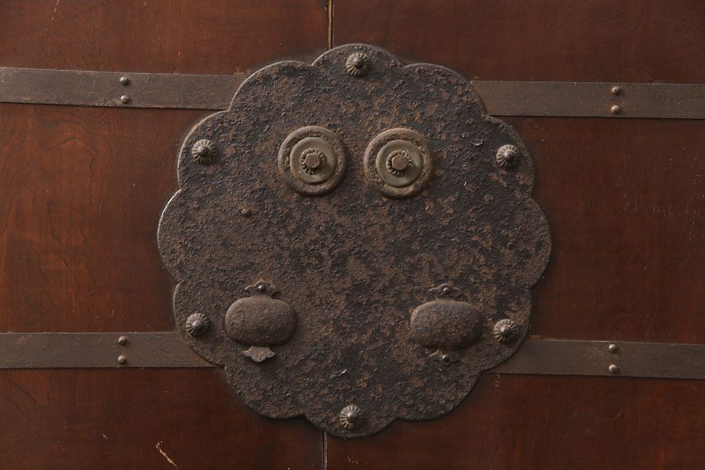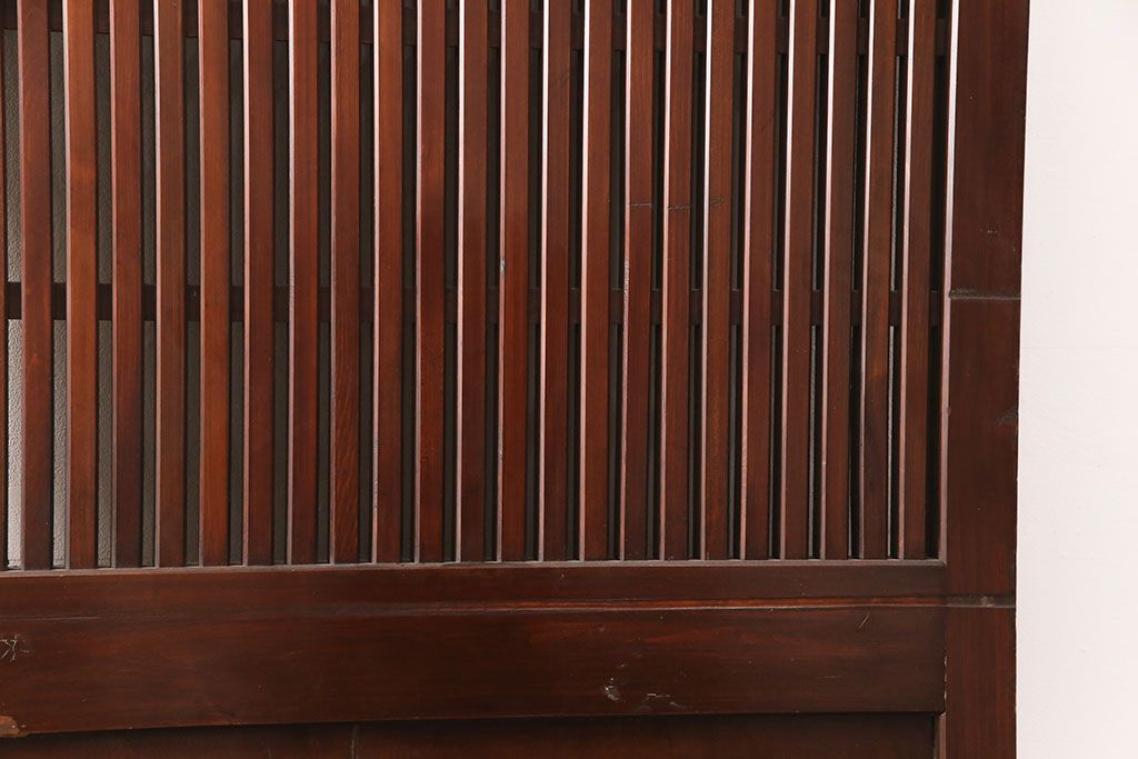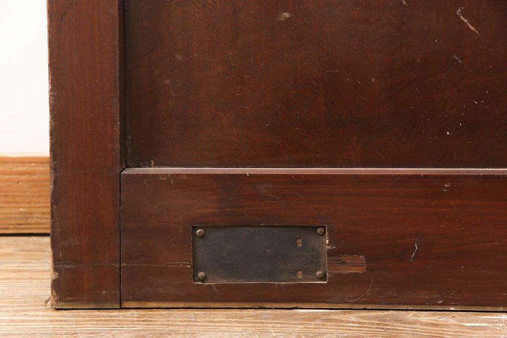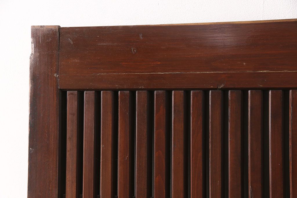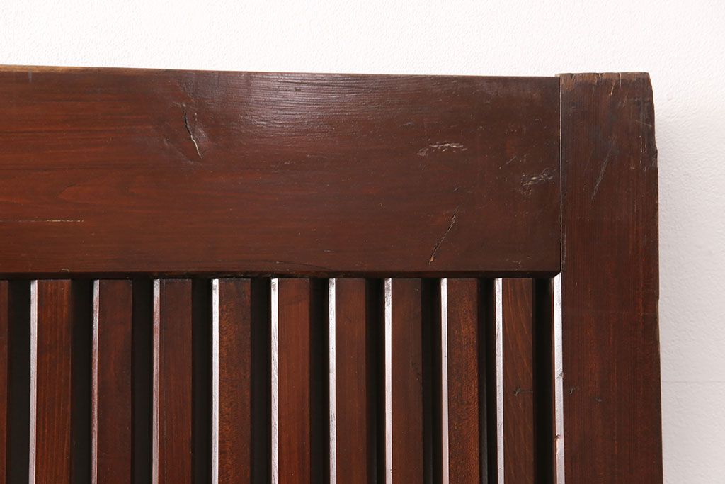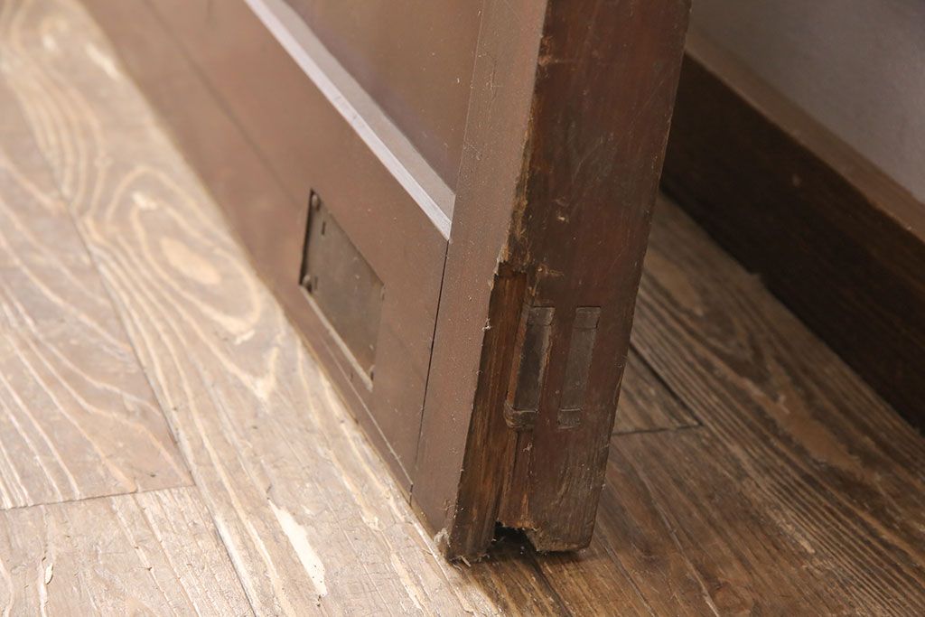 アンティーク建具 ヒノキ材・腰板ケヤキ材 玉杢 赤みがかった木肌と品のある金具が魅力の格子蔵戸1枚(玄関戸、玄関ドア、引き戸)(R-051731)