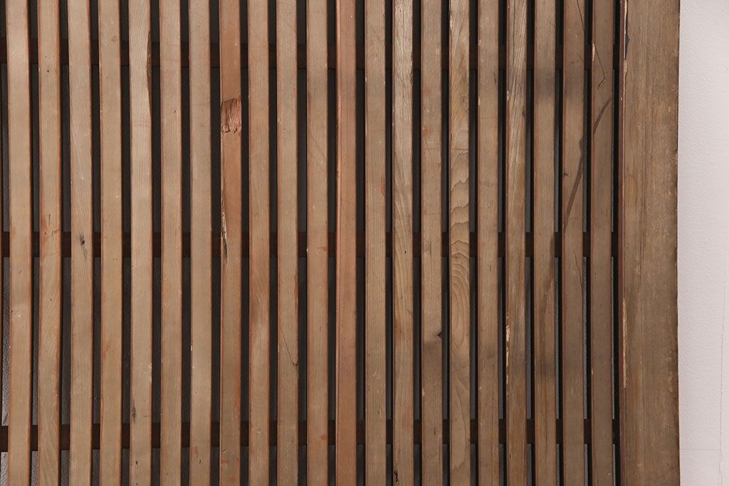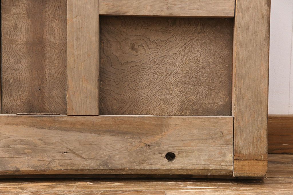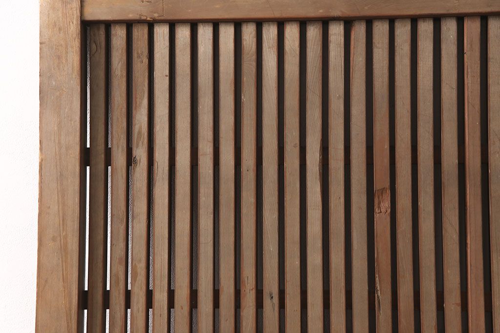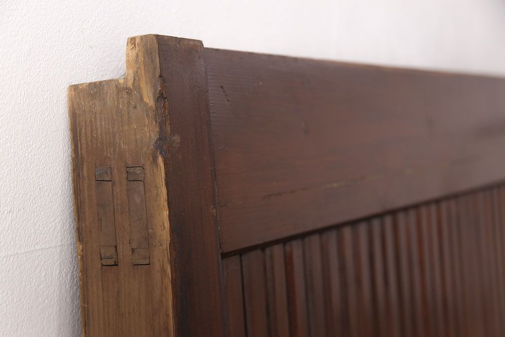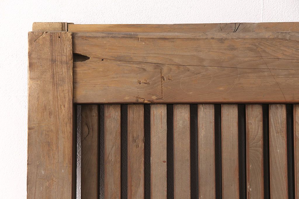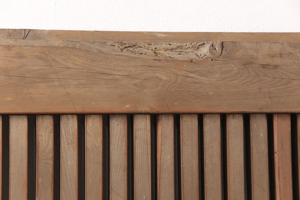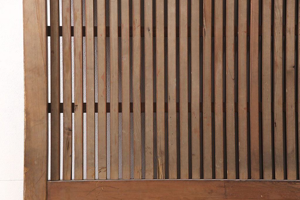 ラフジュ工房> ドア・建具> 引き戸 > アンティーク建具 ヒノキ材・腰板ケヤキ材 玉杢 赤みがかった木肌と品のある金具が魅力の格子蔵戸1枚(玄関戸、玄関ドア、引き戸)(R-051731)