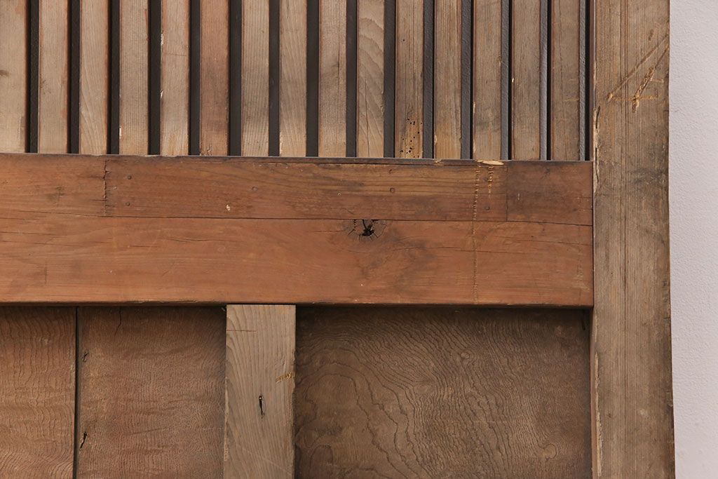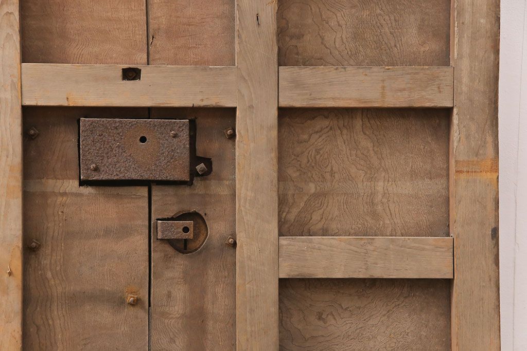 ラフジュ工房> ドア・建具> 玄関ドア・玄関戸 > アンティーク建具 ヒノキ材・腰板ケヤキ材 玉杢 赤みがかった木肌と品のある金具が魅力の格子蔵戸1枚(玄関戸、玄関ドア、引き戸)(R-051731)