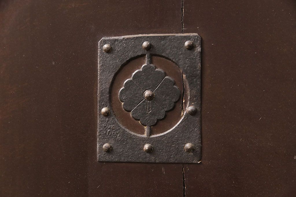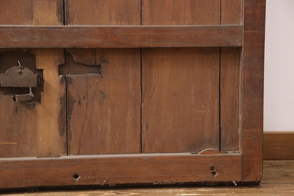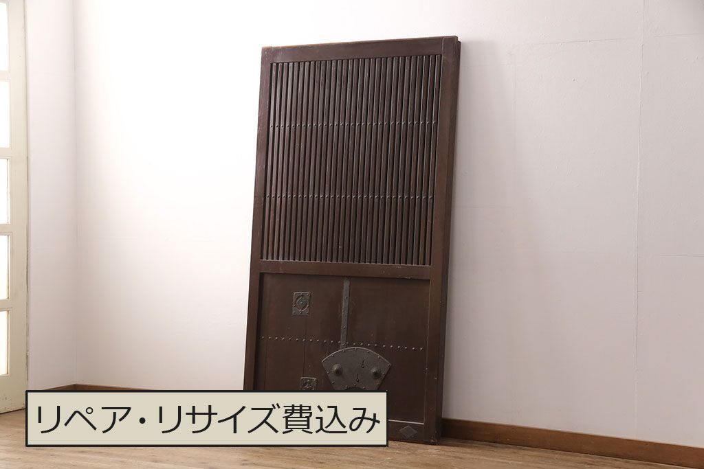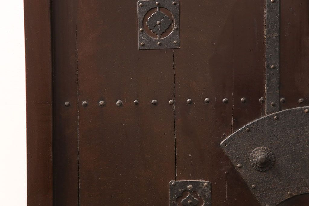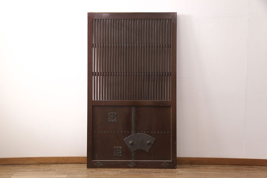 アンティーク建具 総ケヤキ材 重厚でありながら花の金具が可愛らしい雰囲気を醸しだす格子蔵戸1枚(玄関戸、玄関ドア、引き戸)(R-051732)