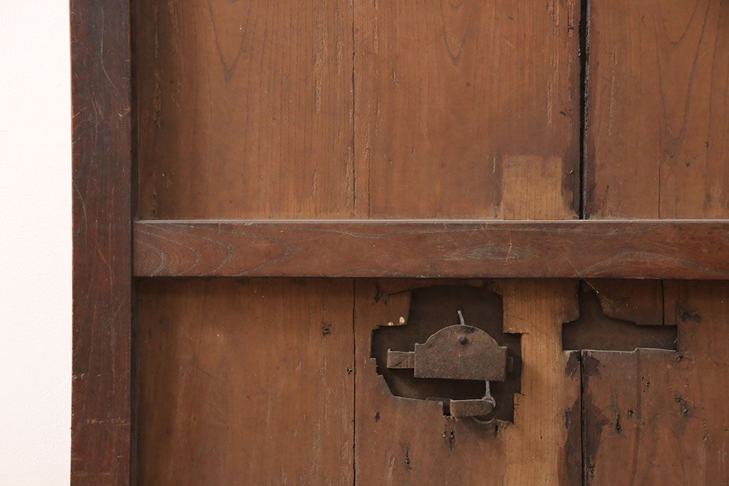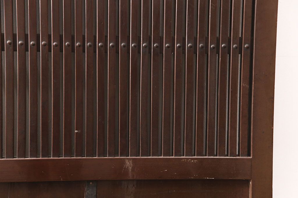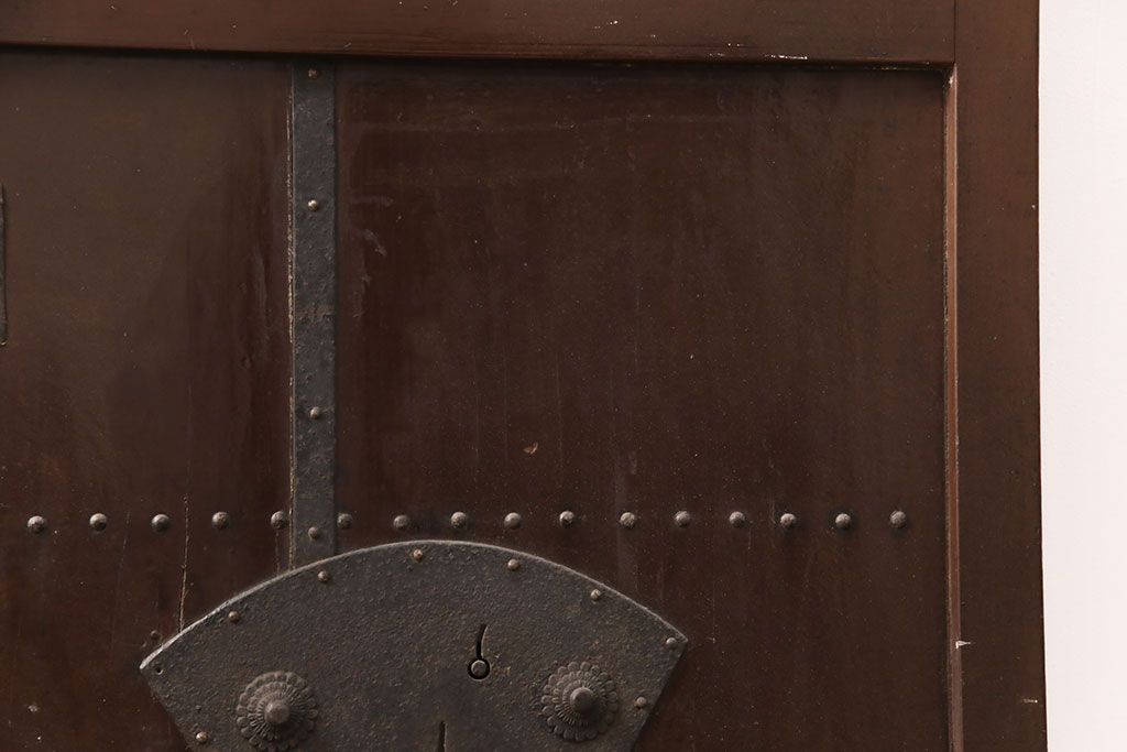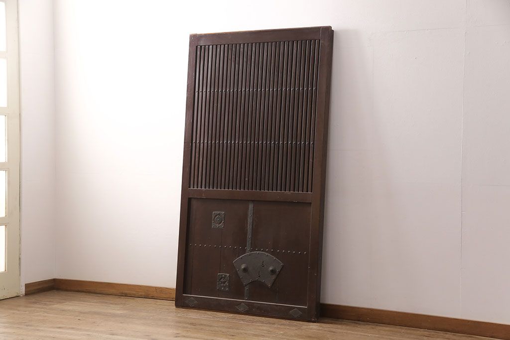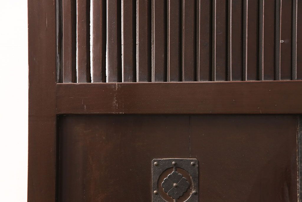 ラフジュ工房> ドア・建具> 蔵戸 > アンティーク建具 総ケヤキ材 重厚でありながら花の金具が可愛らしい雰囲気を醸しだす格子蔵戸1枚(玄関戸、玄関ドア、引き戸)(R-051732)
