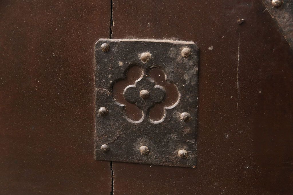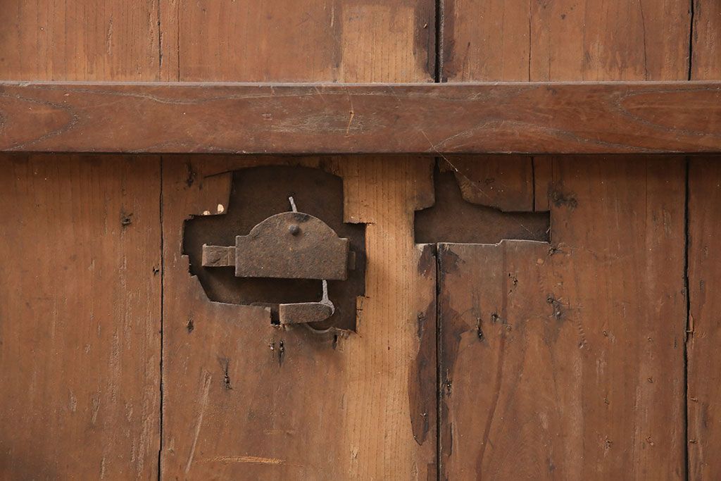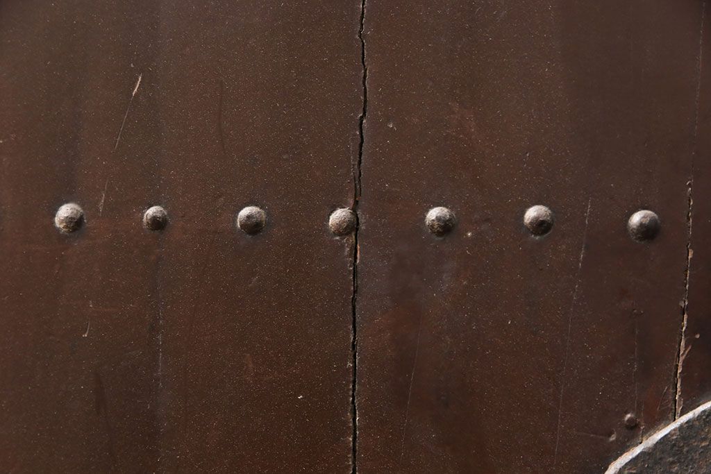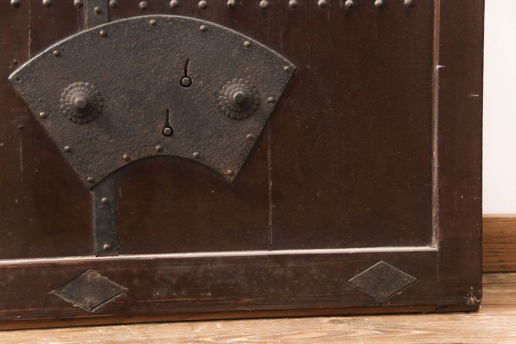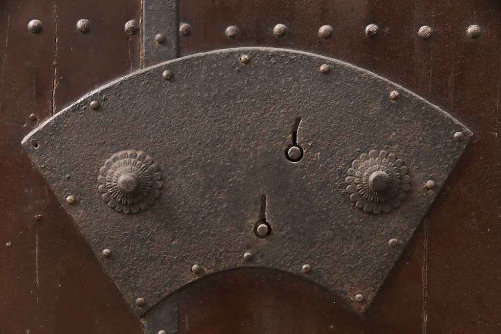 ラフジュ工房> ドア・建具> 蔵戸 > アンティーク建具 総ケヤキ材 重厚でありながら花の金具が可愛らしい雰囲気を醸しだす格子蔵戸1枚(玄関戸、玄関ドア、引き戸)(R-051732)