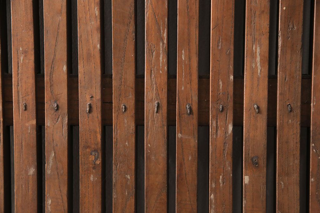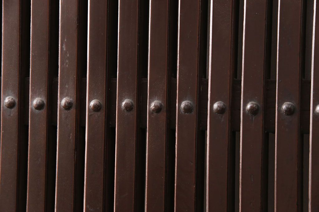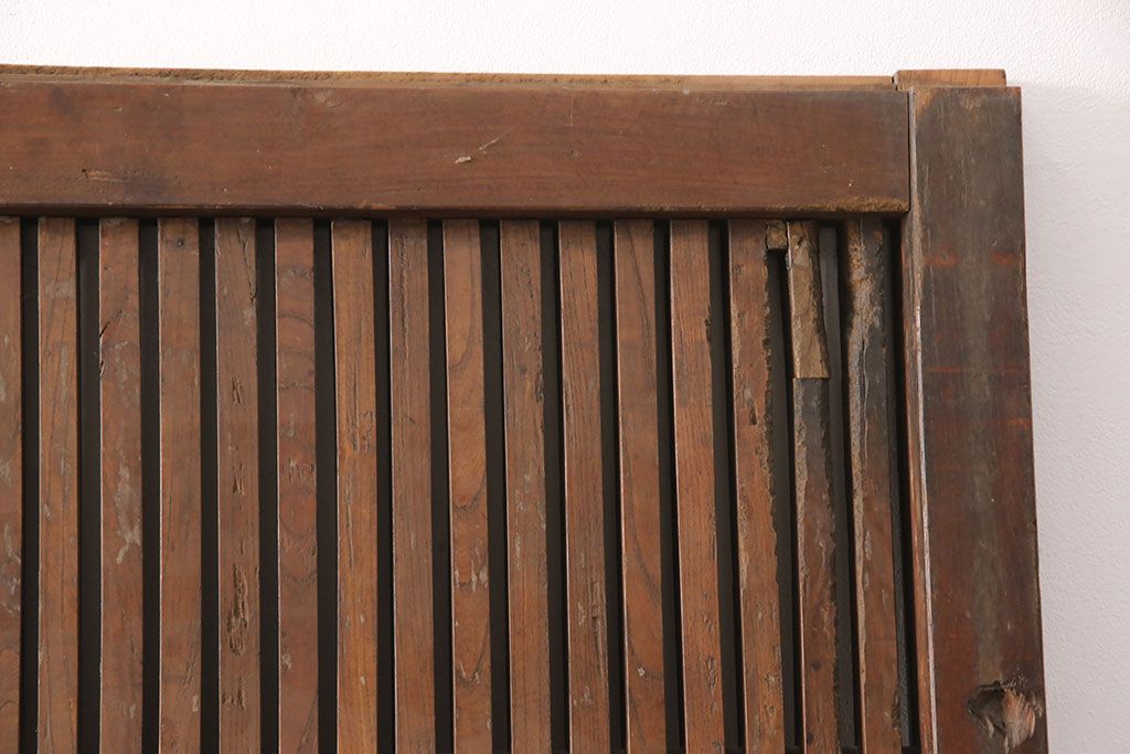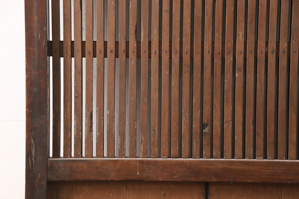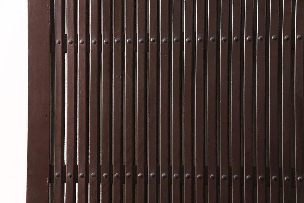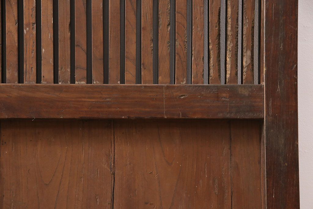 ラフジュ工房> ドア・建具> 玄関ドア・玄関戸 > アンティーク建具 総ケヤキ材 重厚でありながら花の金具が可愛らしい雰囲気を醸しだす格子蔵戸1枚(玄関戸、玄関ドア、引き戸)(R-051732)