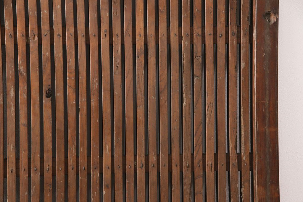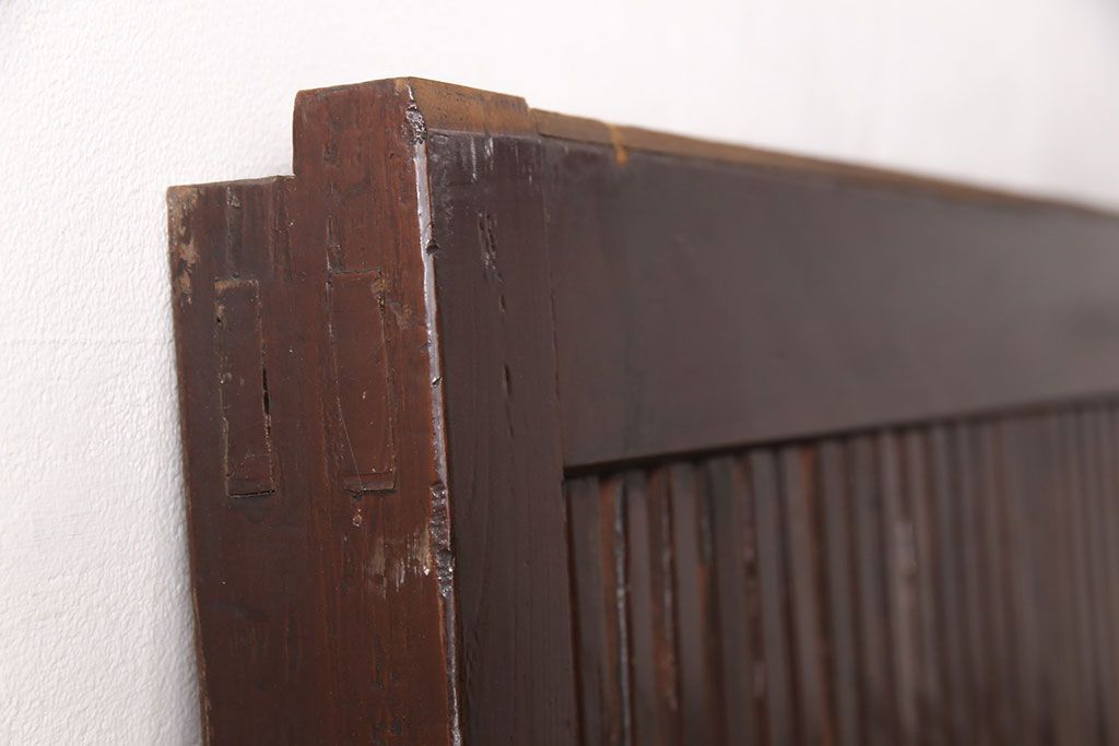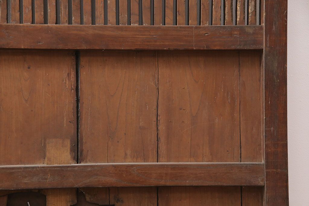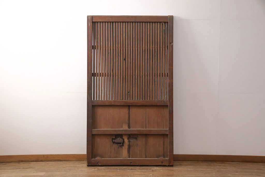 ラフジュ工房> ドア・建具> 引き戸 > アンティーク建具 総ケヤキ材 重厚でありながら花の金具が可愛らしい雰囲気を醸しだす格子蔵戸1枚(玄関戸、玄関ドア、引き戸)(R-051732)