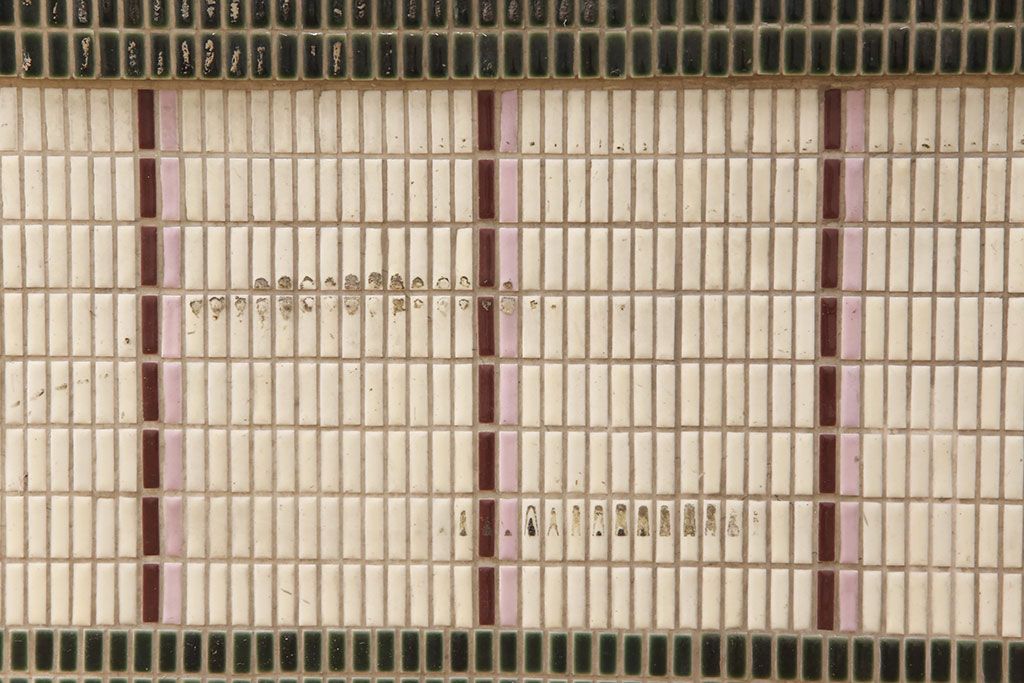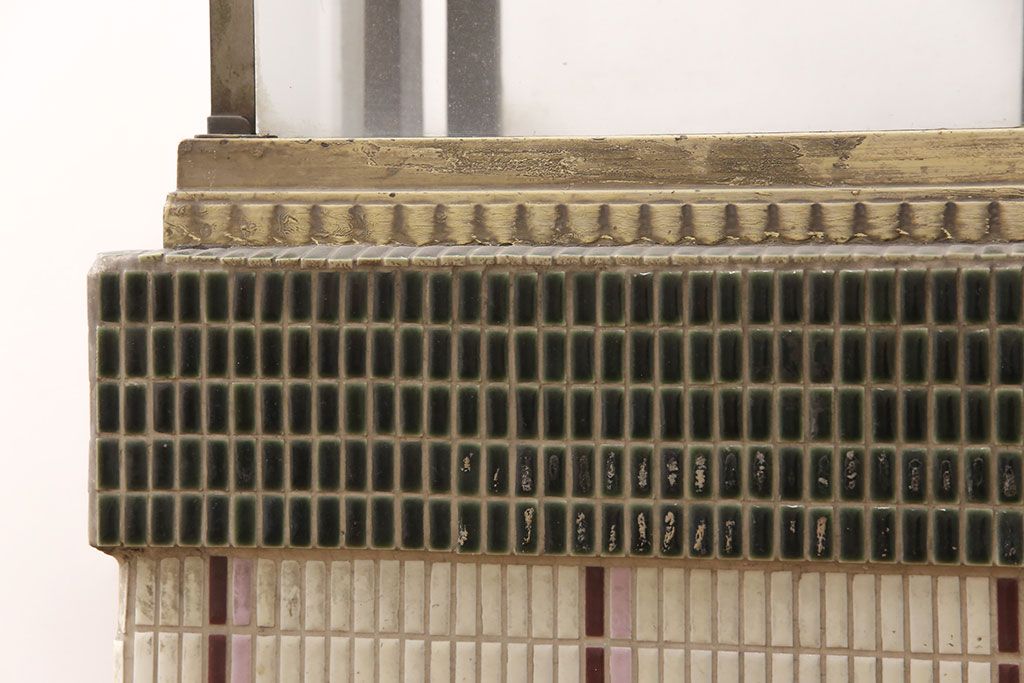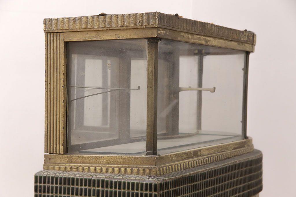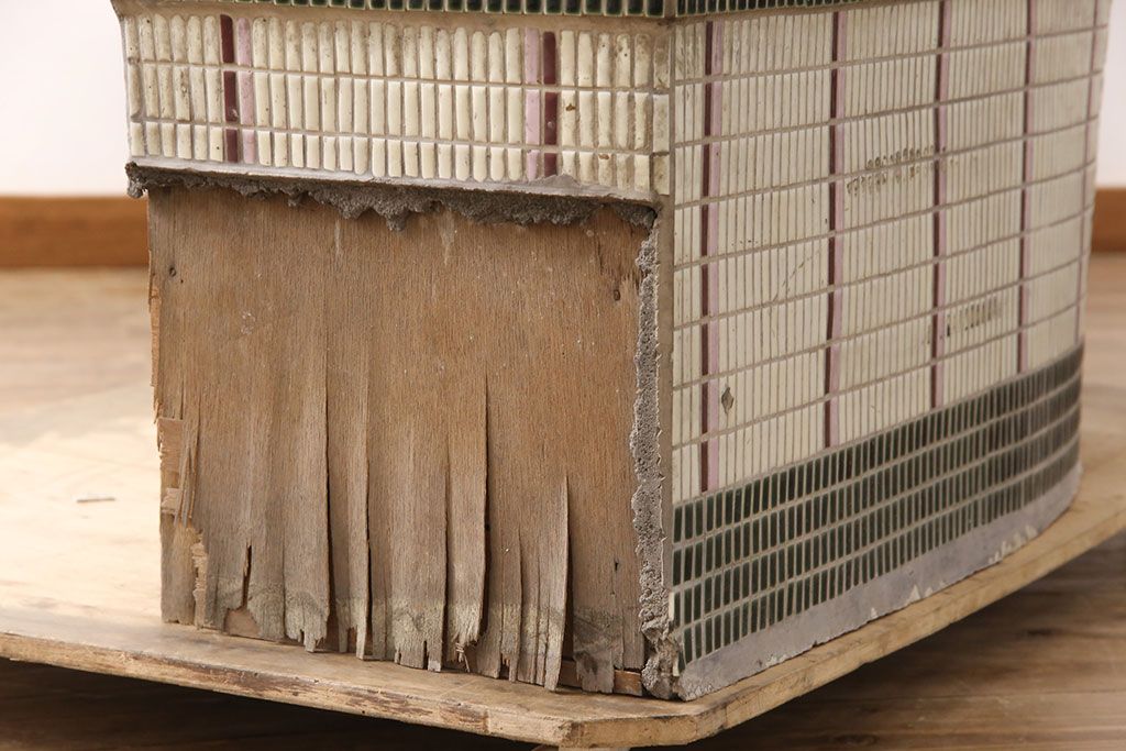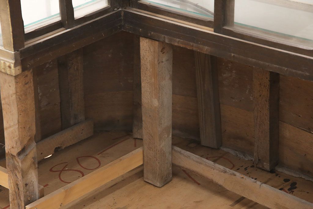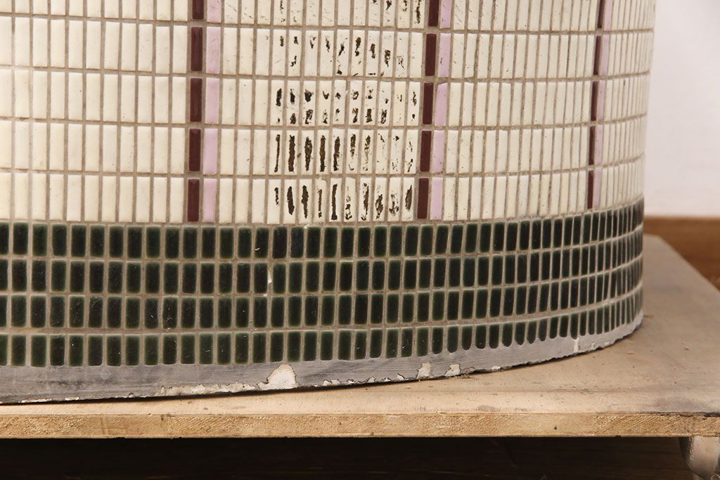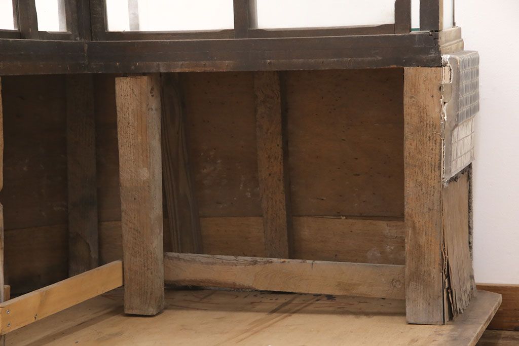ラフジュ工房> 店舗什器 > 和製アンティーク Rガラス タイル張りが魅力!レトロな空間づくりに活躍するガラスケース(ショーケース、陳列棚、店舗什器、曲げガラス、L型ガラスケース)(R-051727)