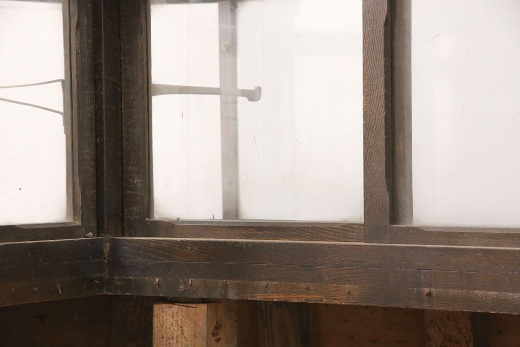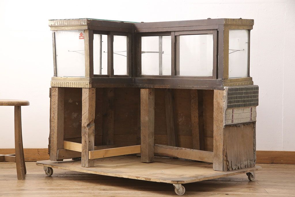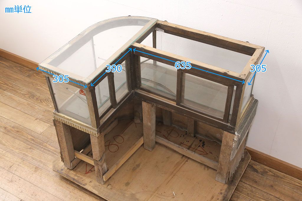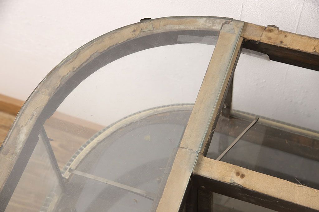 和製アンティーク Rガラス タイル張りが魅力!レトロな空間づくりに活躍するガラスケース(ショーケース、陳列棚、店舗什器、曲げガラス、L型ガラスケース)(R-051727)