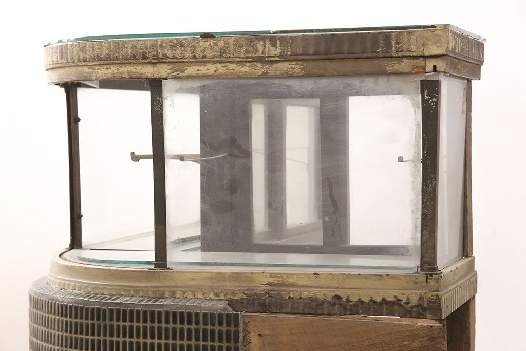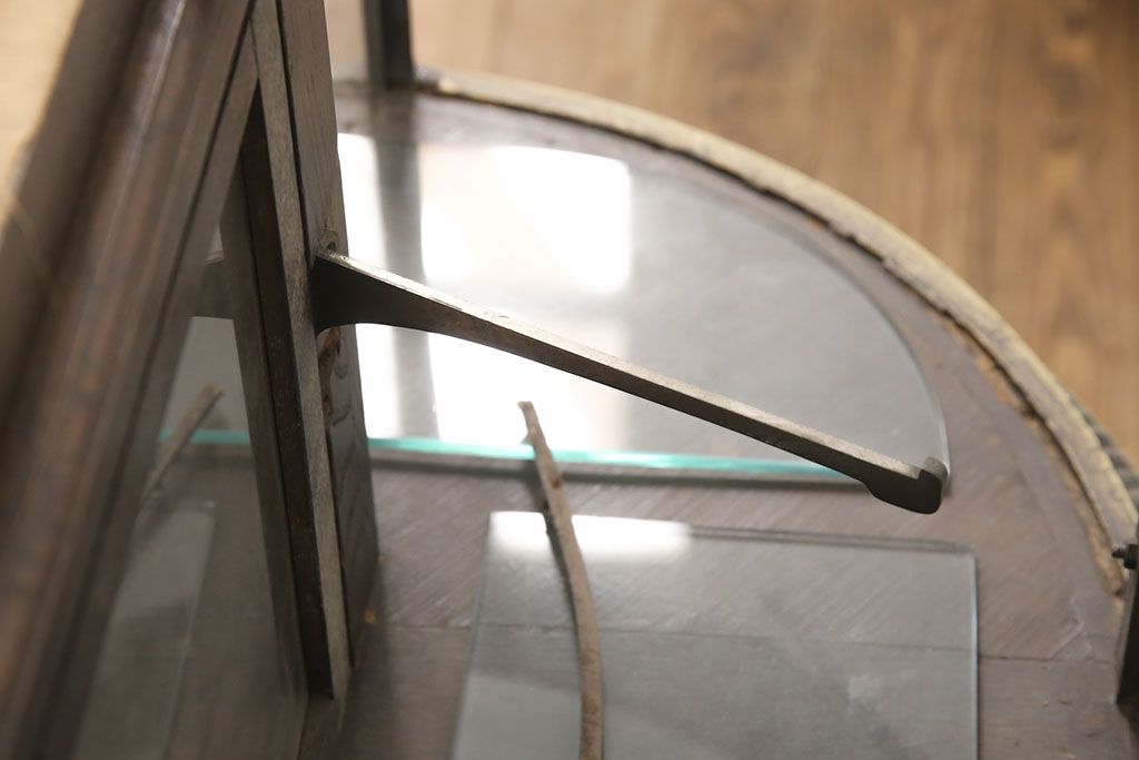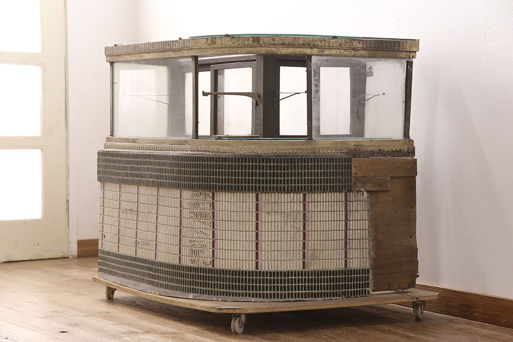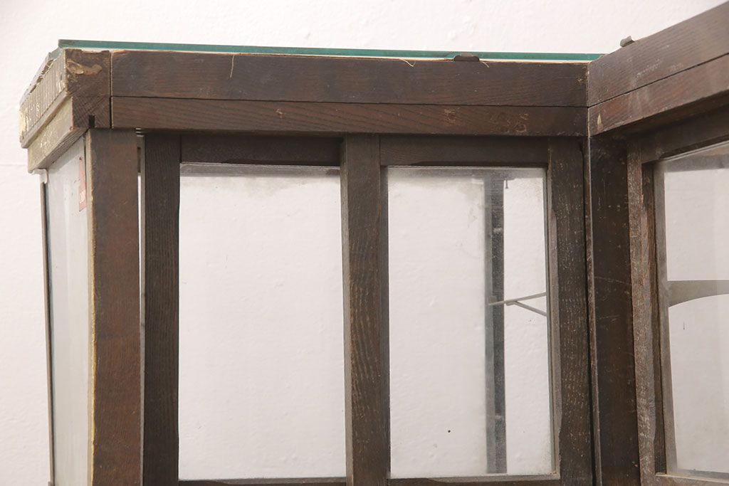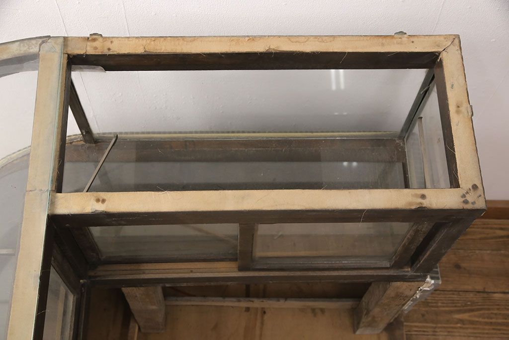 和製アンティーク Rガラス タイル張りが魅力!レトロな空間づくりに活躍するガラスケース(ショーケース、陳列棚、店舗什器、曲げガラス、L型ガラスケース)(R-051727)