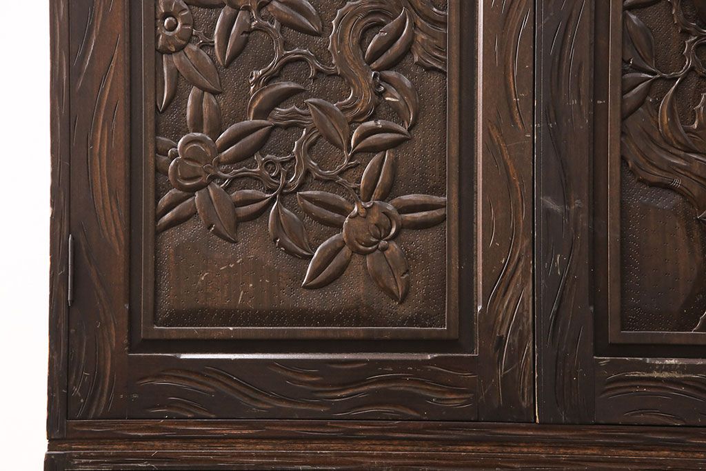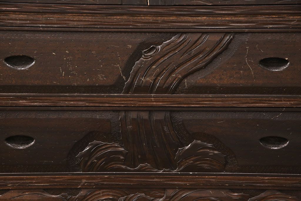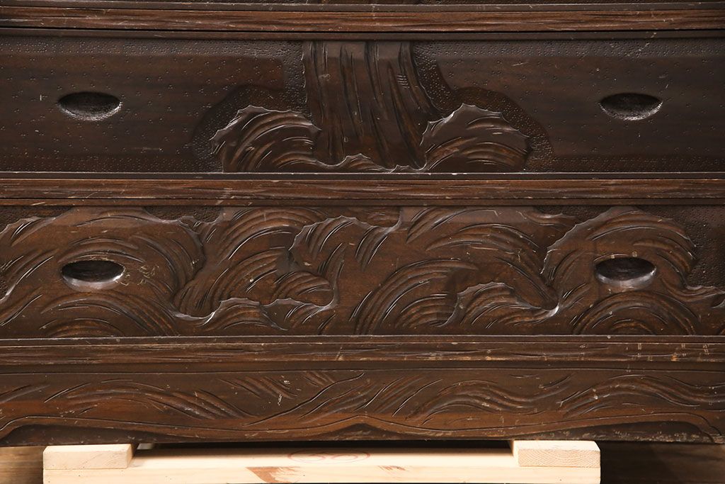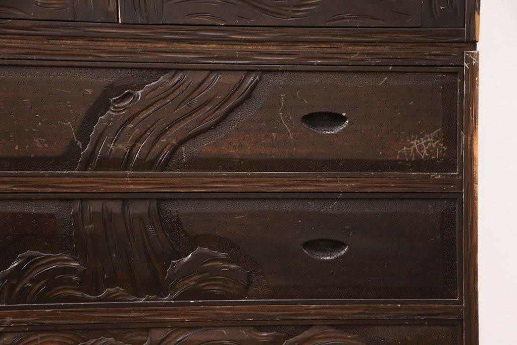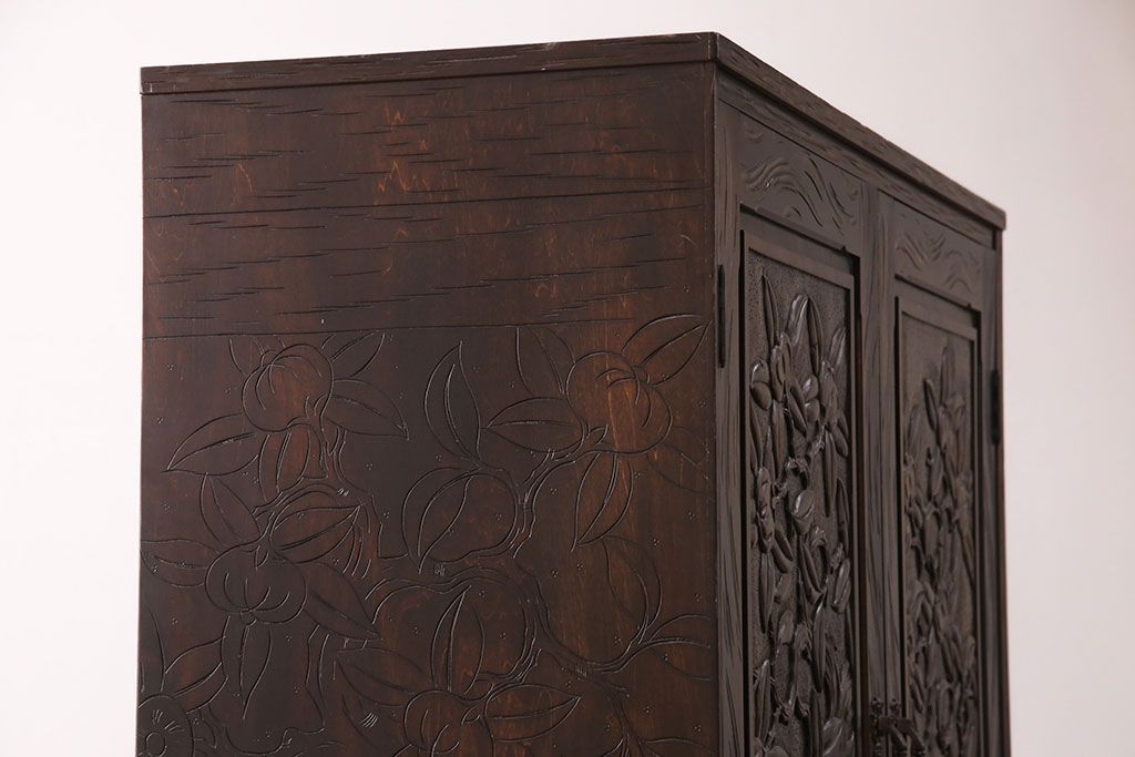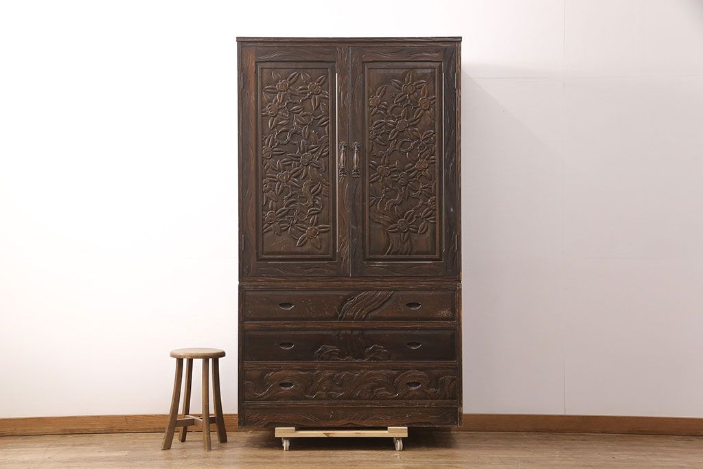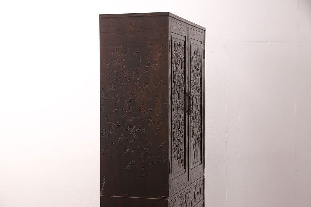 和箪笥> 衣装箪笥 > 中古 伝統工芸 軽井沢彫り 図柄が珍しい!! 細やかな彫刻の意匠に目を奪われる衣装盆付きの和箪笥(和タンス、チェスト、着物箪笥、収納箪笥)(R-051567)