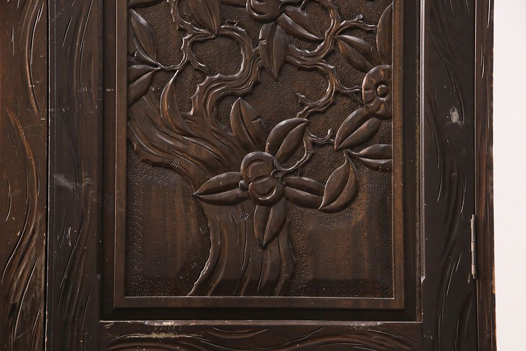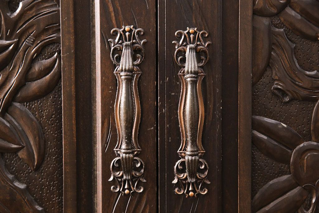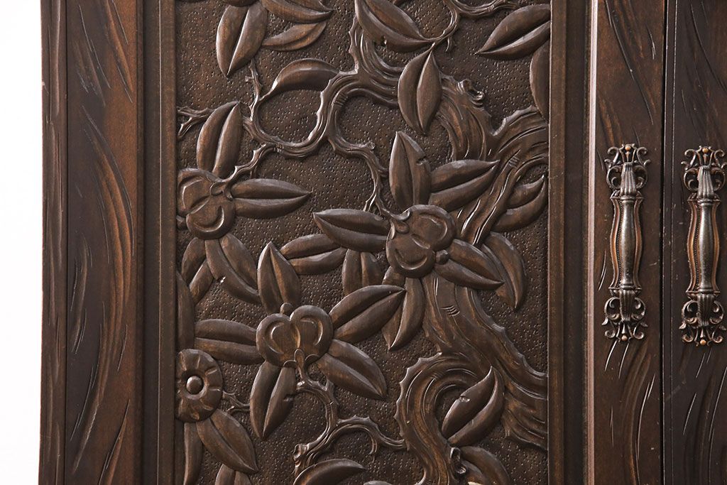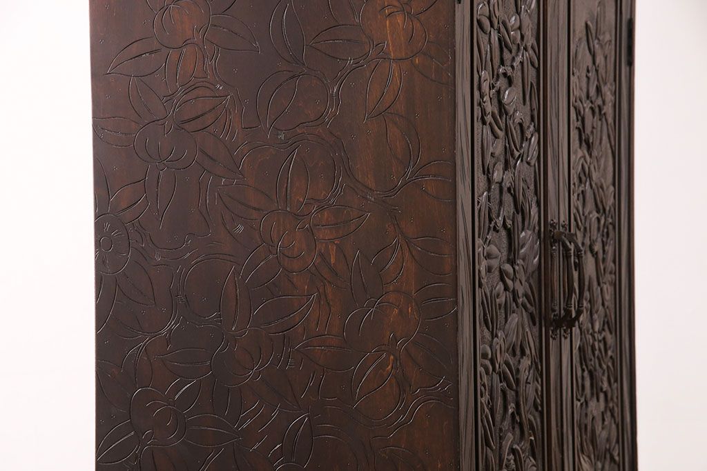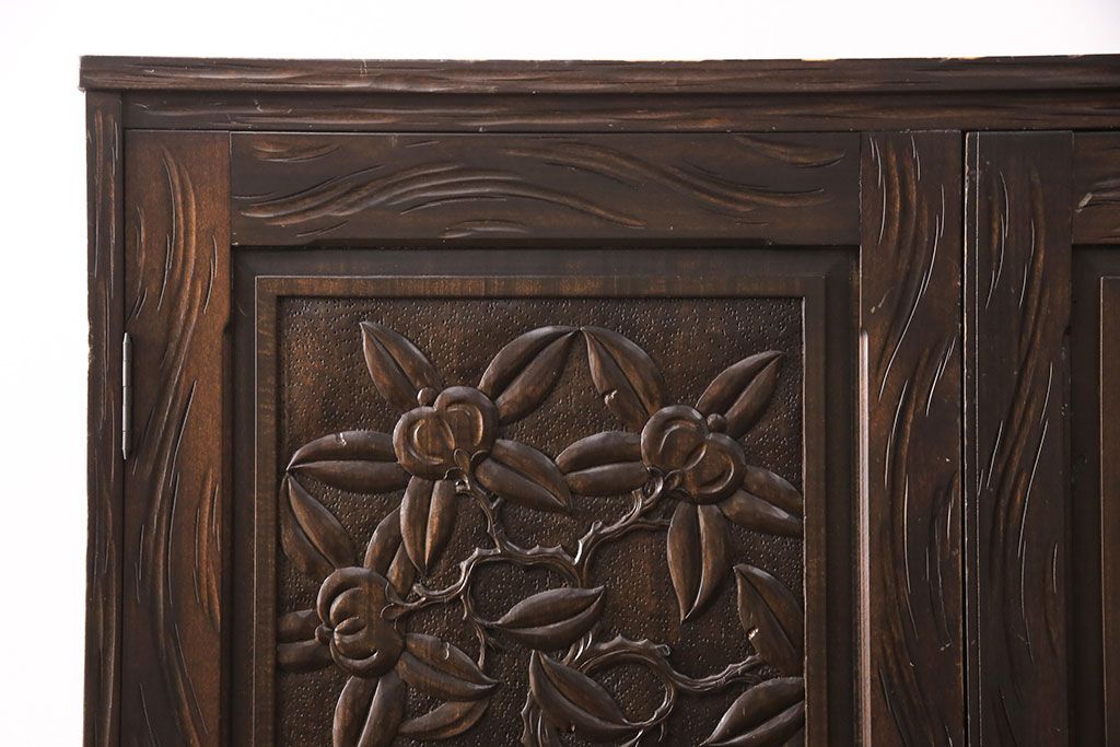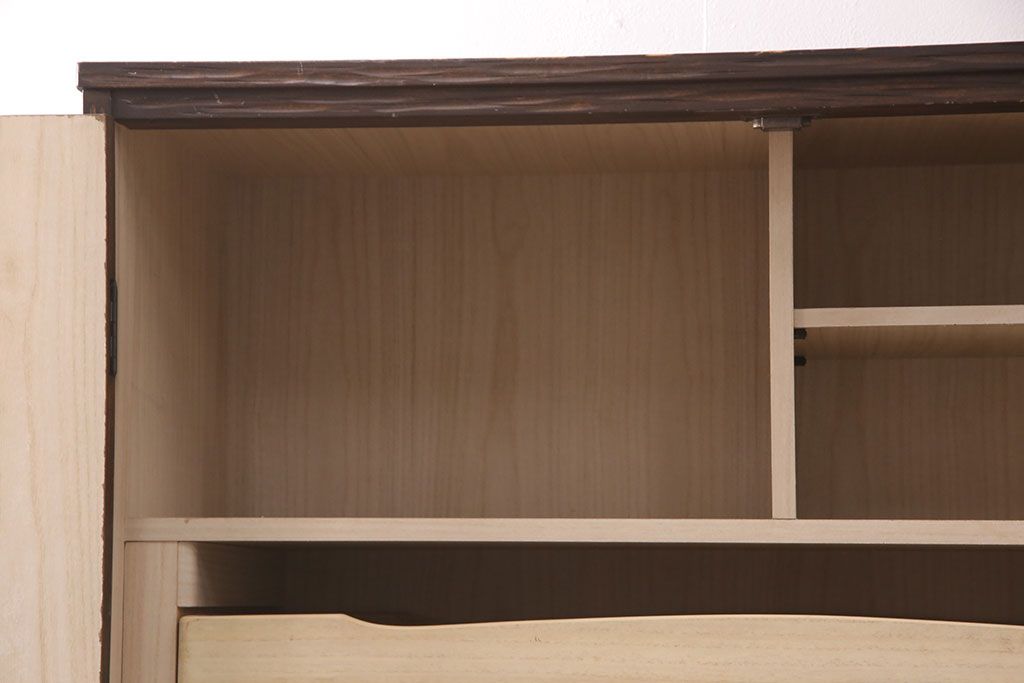 和箪笥> 衣装箪笥 > 中古 伝統工芸 軽井沢彫り 図柄が珍しい!! 細やかな彫刻の意匠に目を奪われる衣装盆付きの和箪笥(和タンス、チェスト、着物箪笥、収納箪笥)(R-051567)