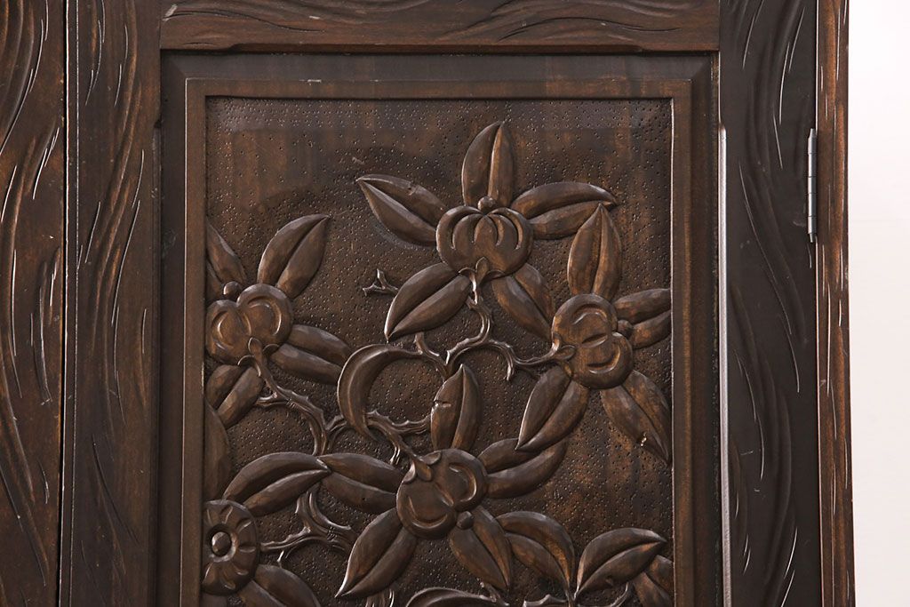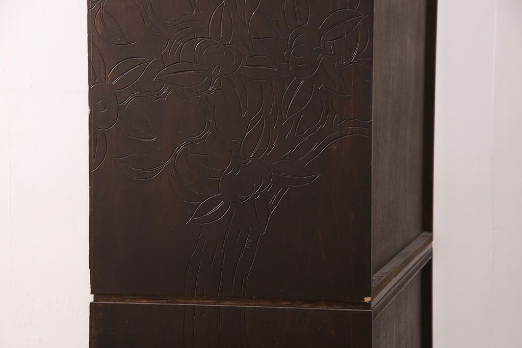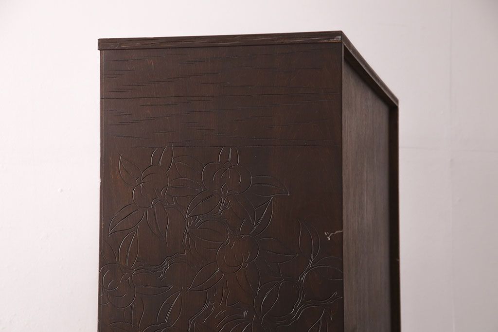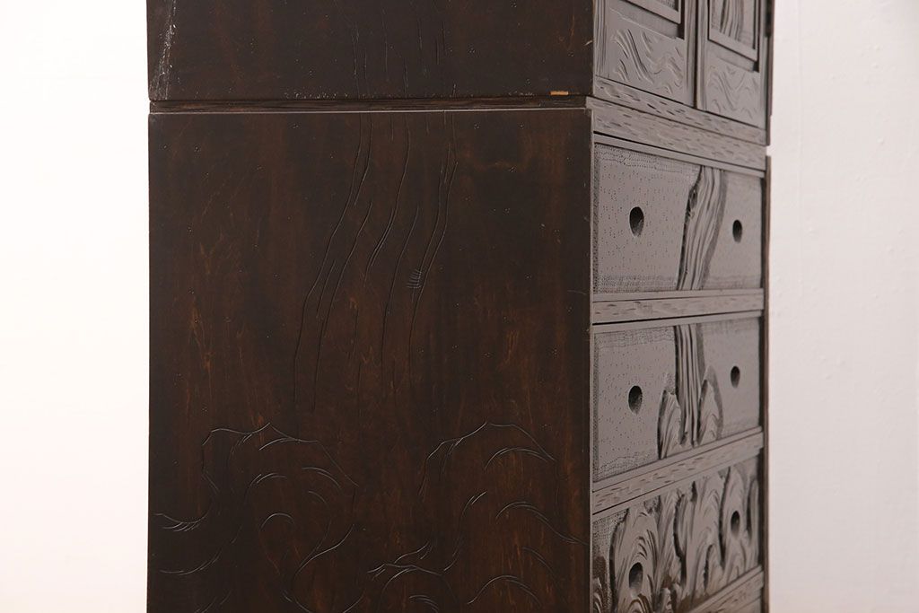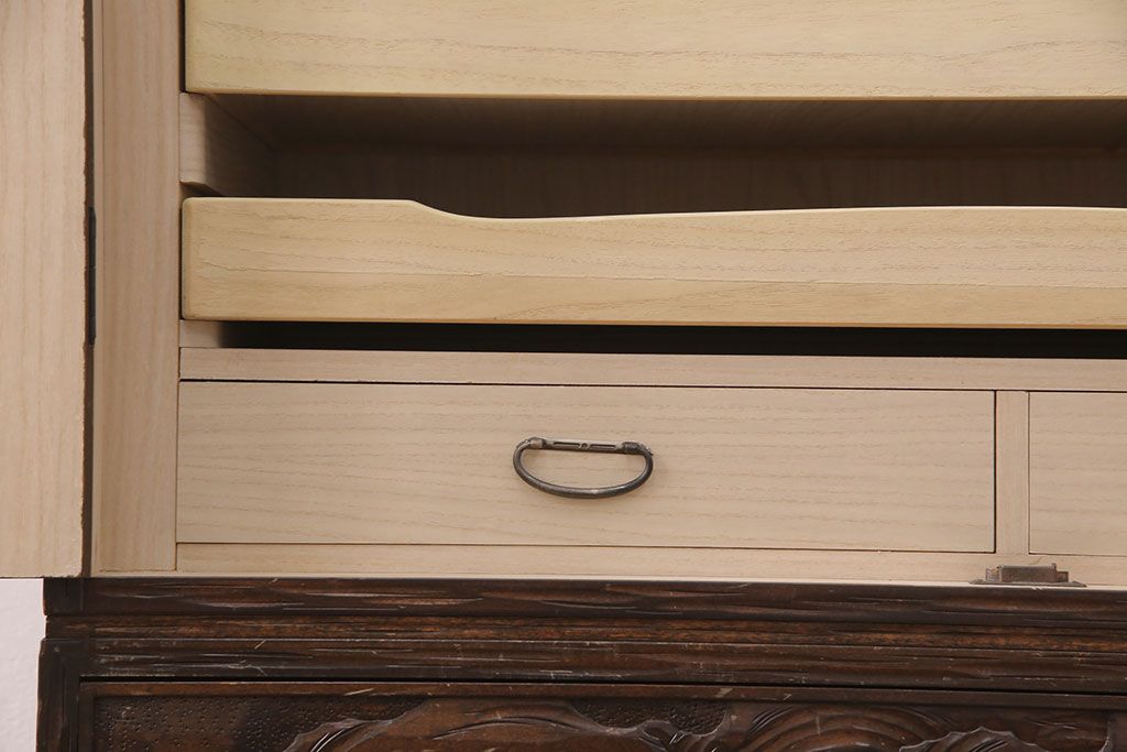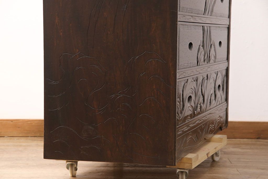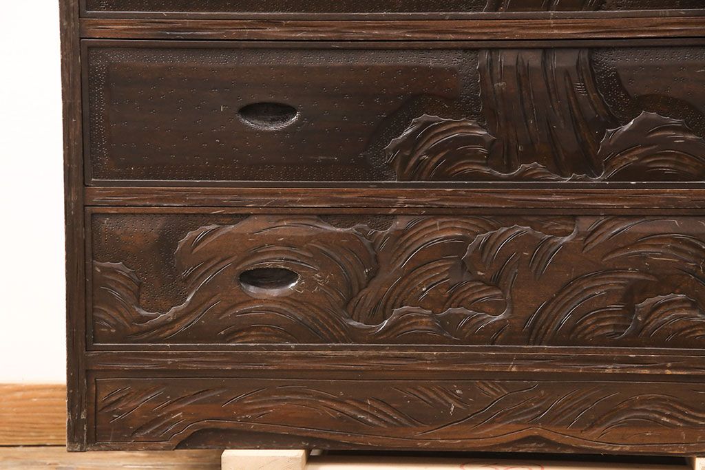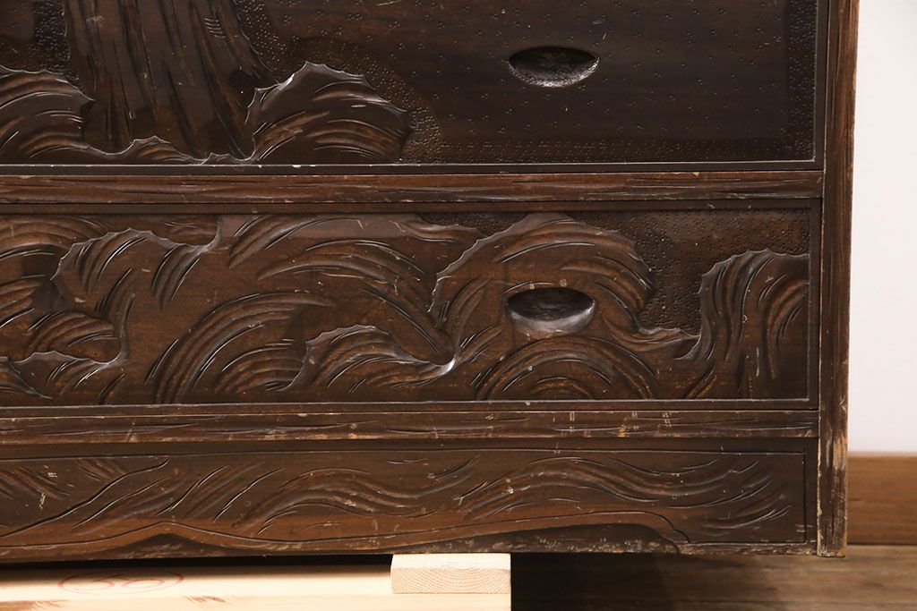 和箪笥 > 中古 伝統工芸 軽井沢彫り 図柄が珍しい!! 細やかな彫刻の意匠に目を奪われる衣装盆付きの和箪笥(和タンス、チェスト、着物箪笥、収納箪笥)(R-051567)