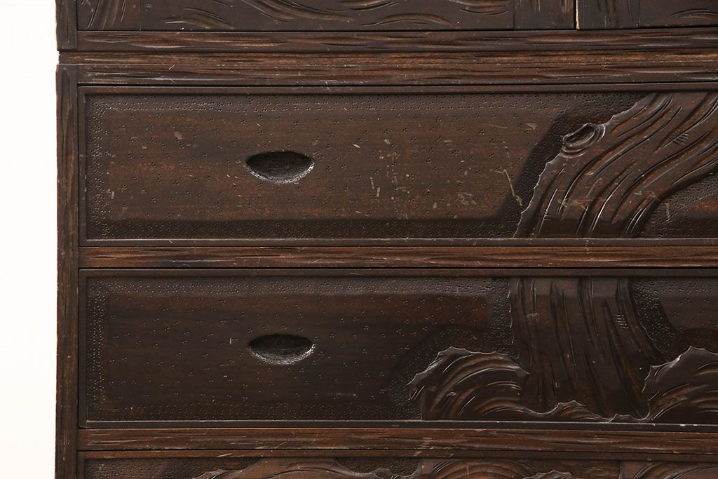 和箪笥> 着物箪笥 > 中古 伝統工芸 軽井沢彫り 図柄が珍しい!! 細やかな彫刻の意匠に目を奪われる衣装盆付きの和箪笥(和タンス、チェスト、着物箪笥、収納箪笥)(R-051567)