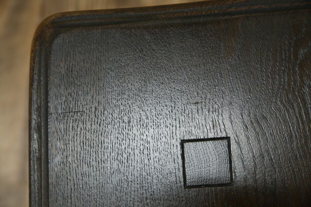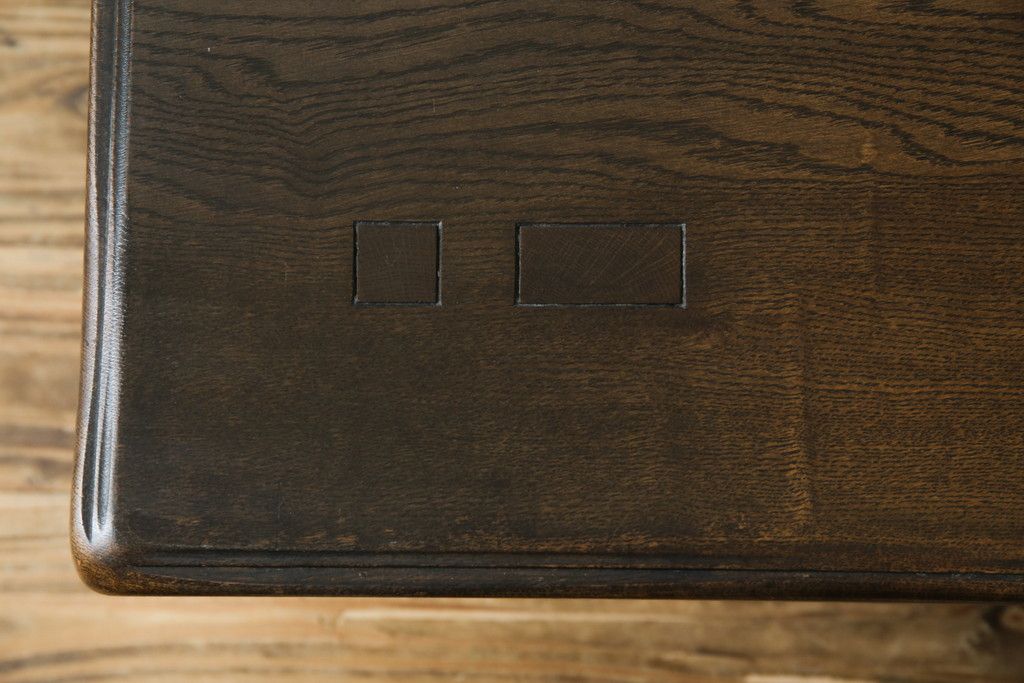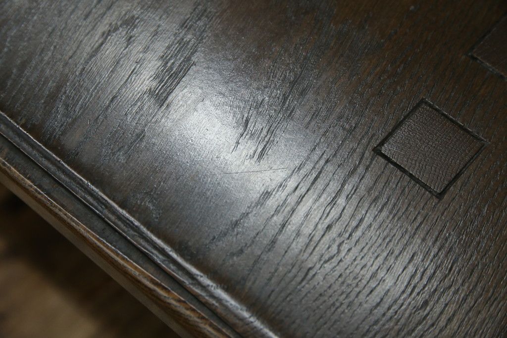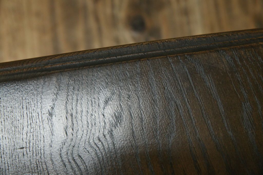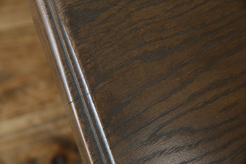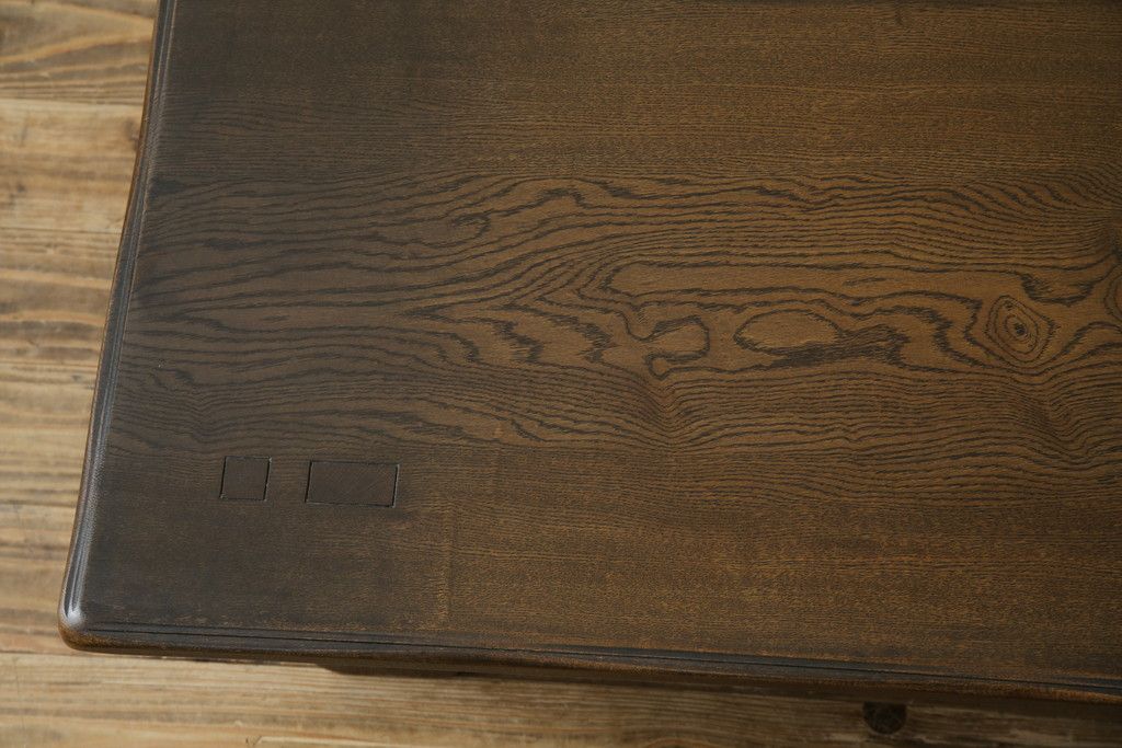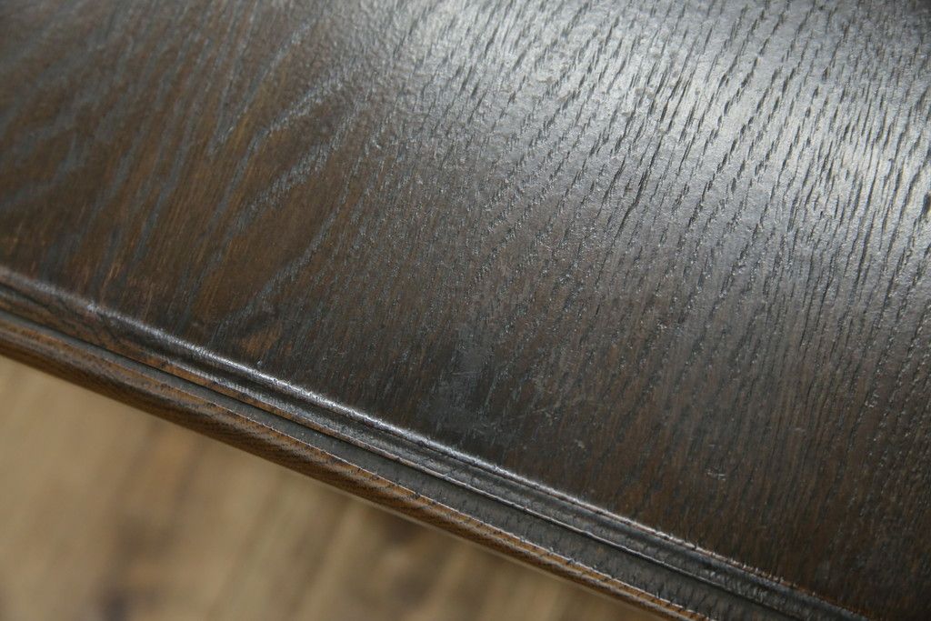 天板は当店でクリア塗装を施しております。小キズ等が目立ちにくく、耐水性と耐久性に優れたお手入れがしやすい仕上げです。