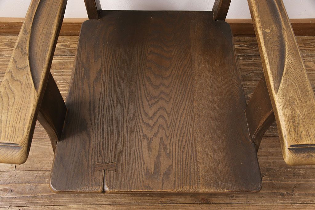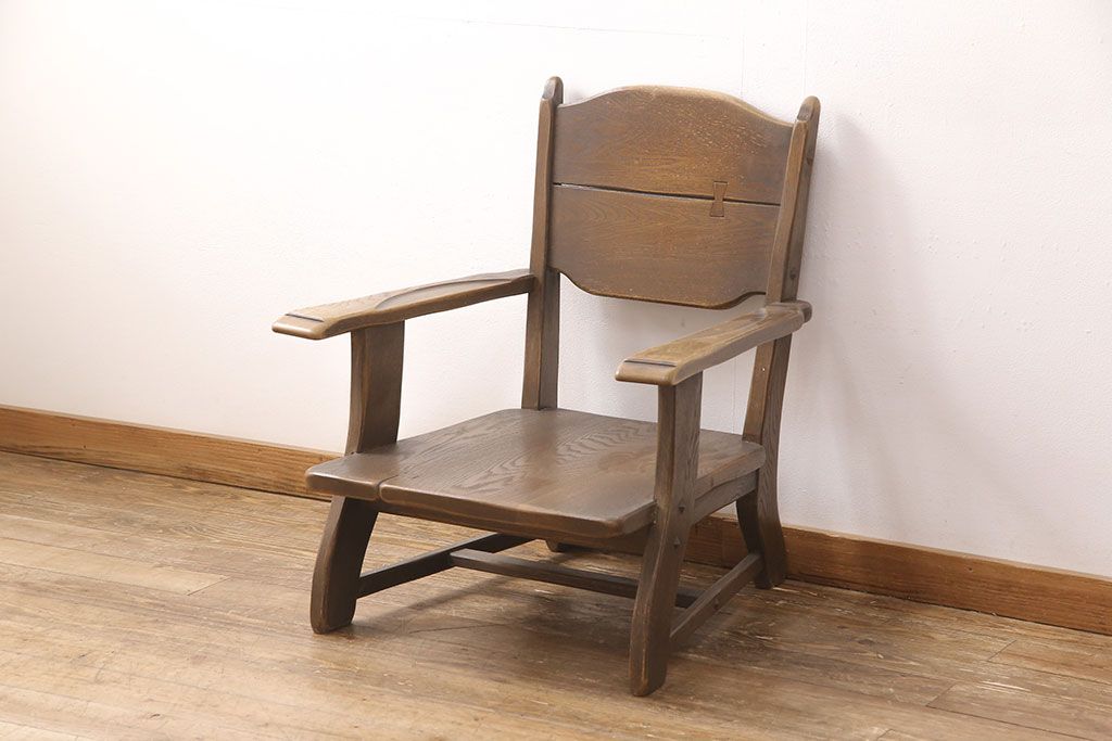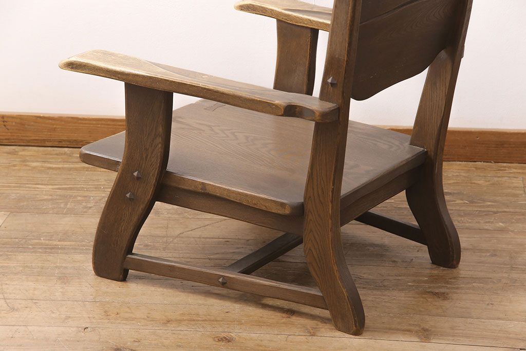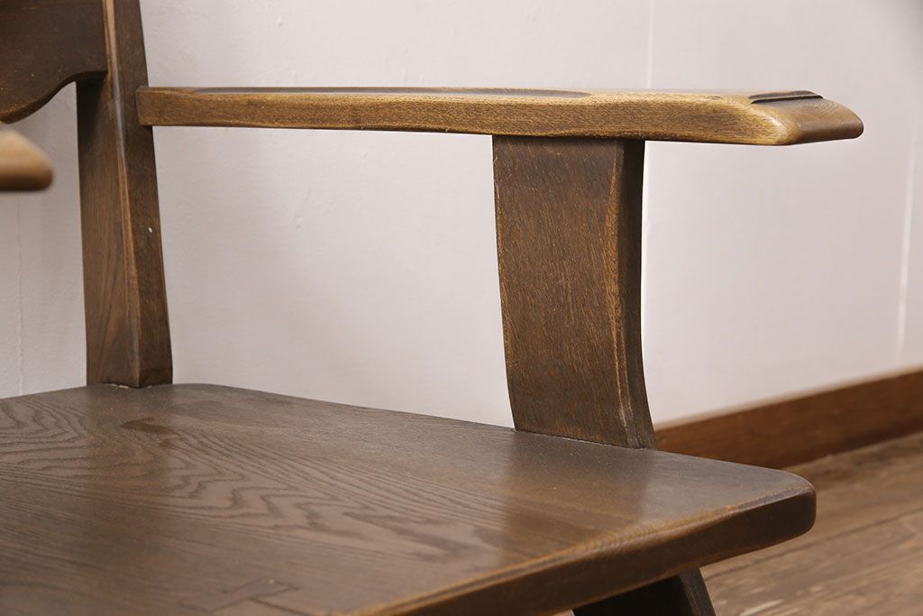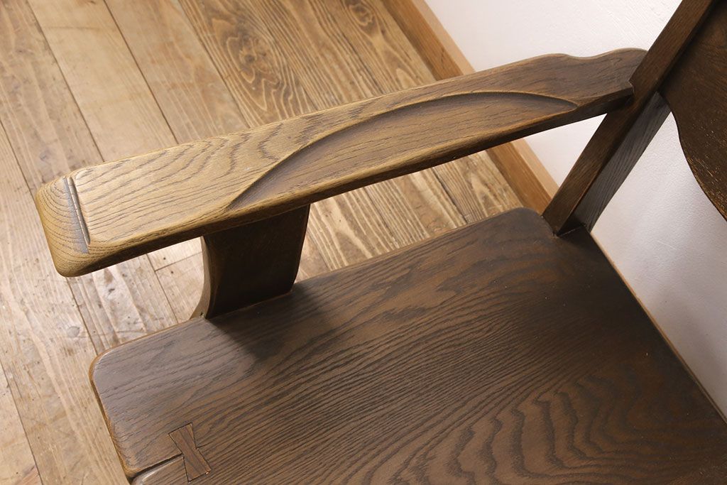 ビンテージ 美品 神戸洋家具 永田良介商店 特注品 民芸風 ナラ材 木の温もりを感じるアームチェア(1人掛け、椅子、ヴィンテージ)(R-051826)