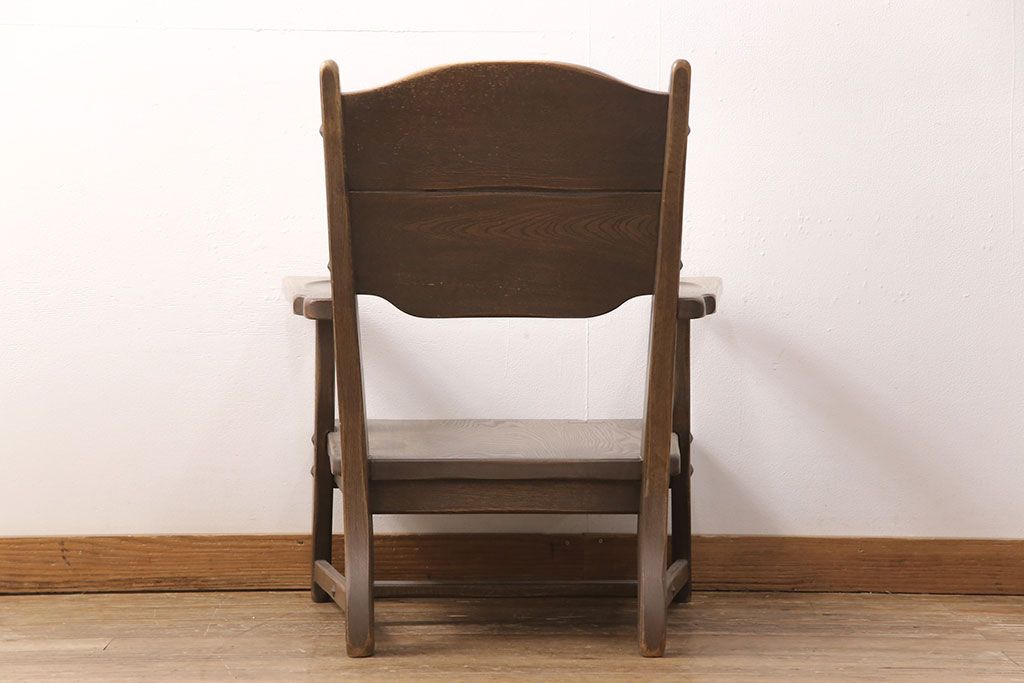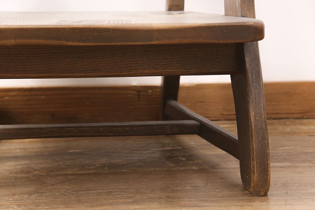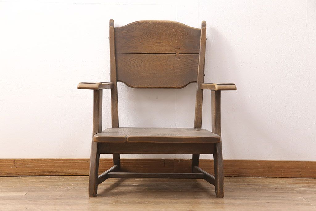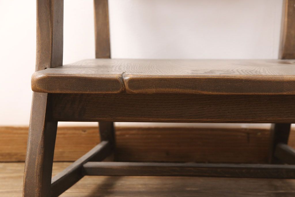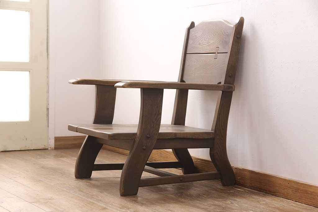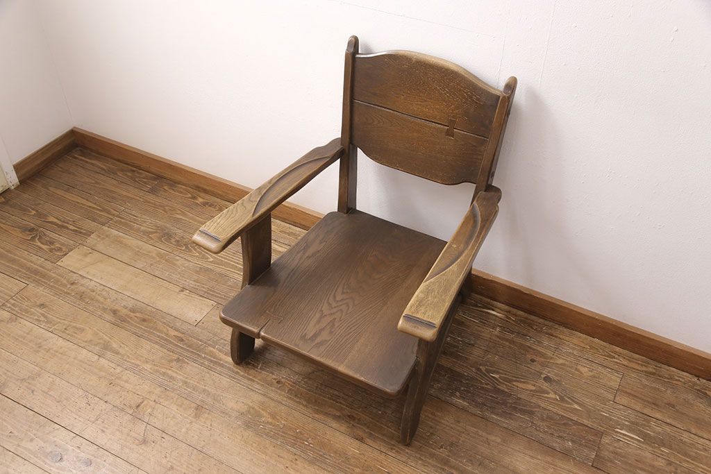 ビンテージ 美品 神戸洋家具 永田良介商店 特注品 民芸風 ナラ材 木の温もりを感じるアームチェア(1人掛け、椅子、ヴィンテージ)(R-051826)
