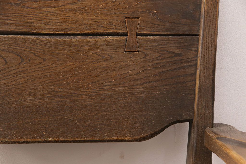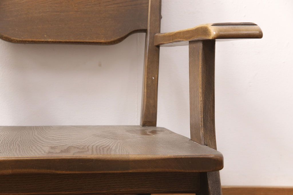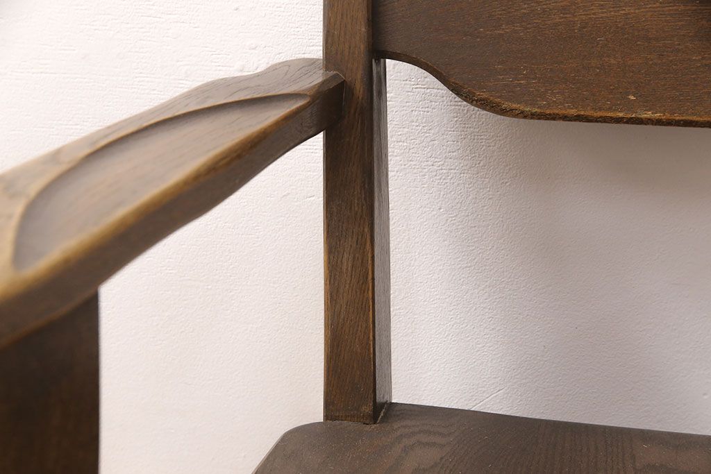 椅子・ベンチ> アームチェア > ビンテージ 美品 神戸洋家具 永田良介商店 特注品 民芸風 ナラ材 木の温もりを感じるアームチェア(1人掛け、椅子、ヴィンテージ)(R-051826)