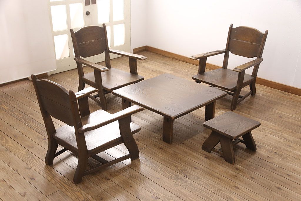 ビンテージ 美品 神戸洋家具 永田良介商店 特注品 民芸風 ナラ材 木の温もりを感じるアームチェア(1人掛け、椅子、ヴィンテージ)(R-051826)です。