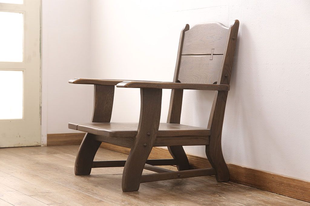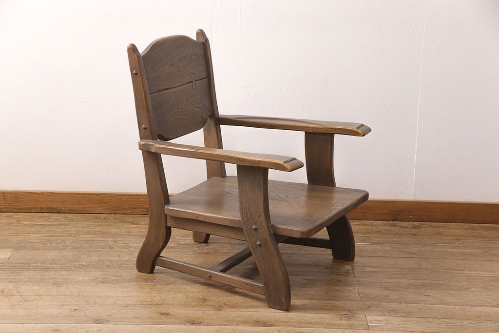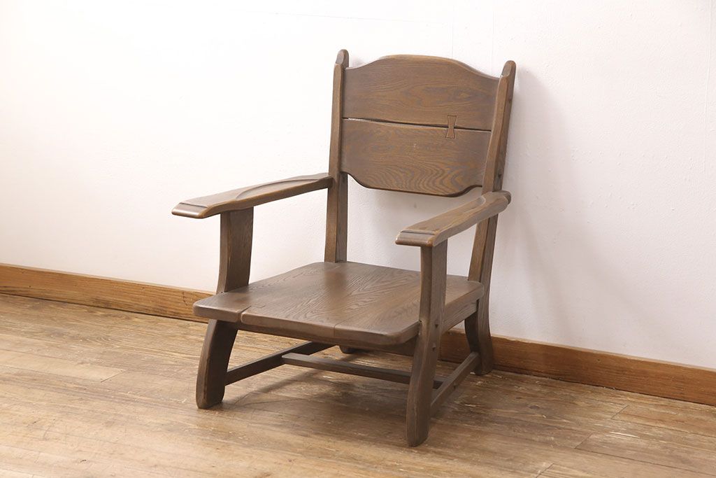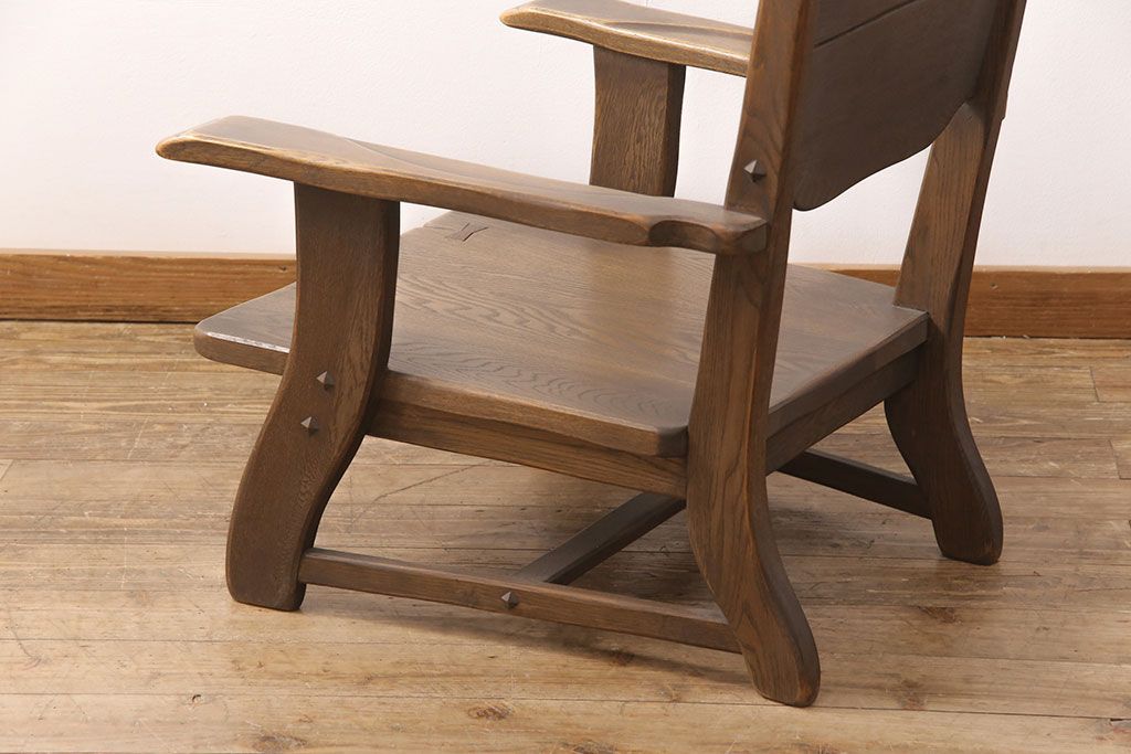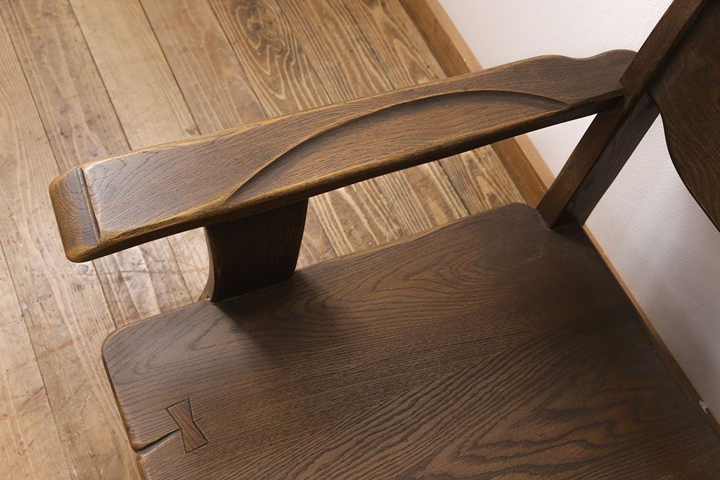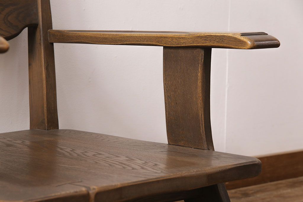 ビンテージ 美品 神戸洋家具 永田良介商店 特注品 民芸風 ナラ材 木の温もりを感じるアームチェア(1人掛け、椅子、ヴィンテージ)(R-051828)