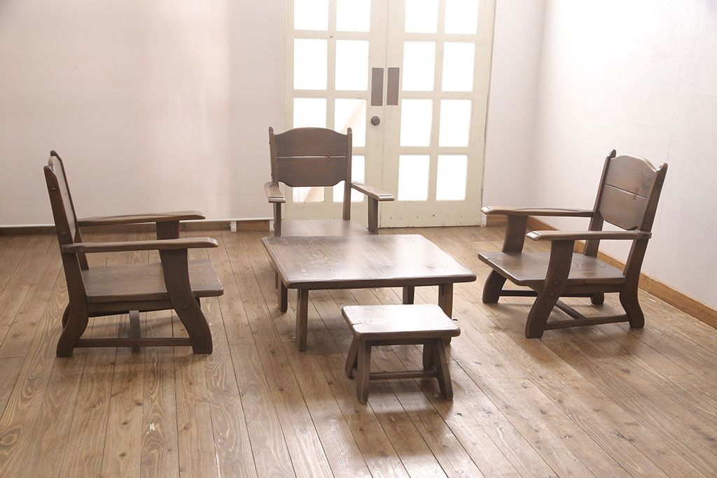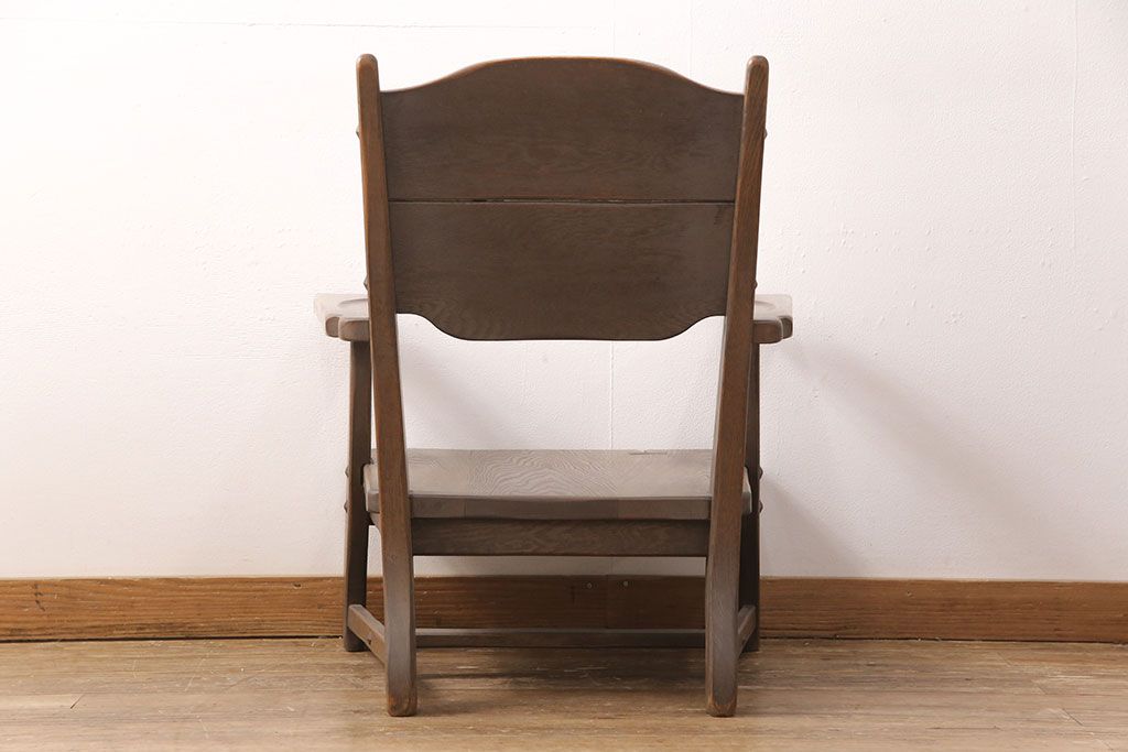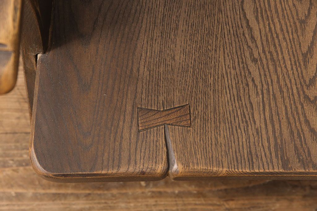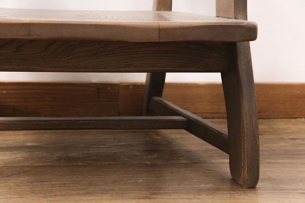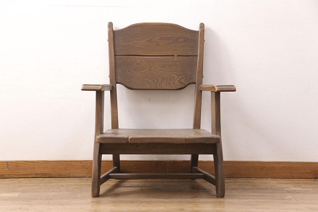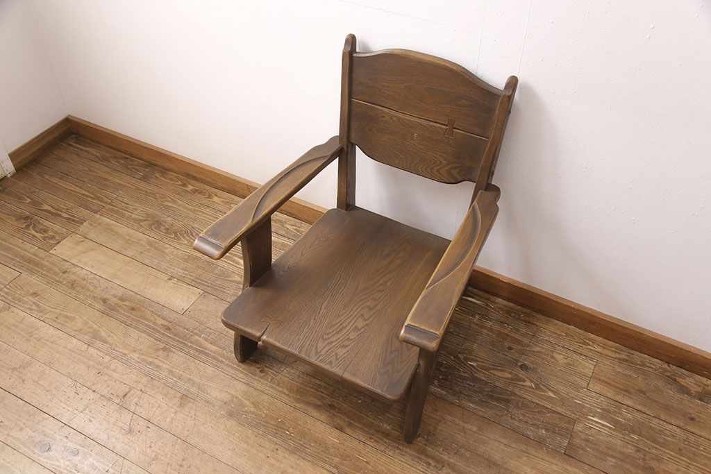 ビンテージ 美品 神戸洋家具 永田良介商店 特注品 民芸風 ナラ材 木の温もりを感じるアームチェア(1人掛け、椅子、ヴィンテージ)(R-051828)