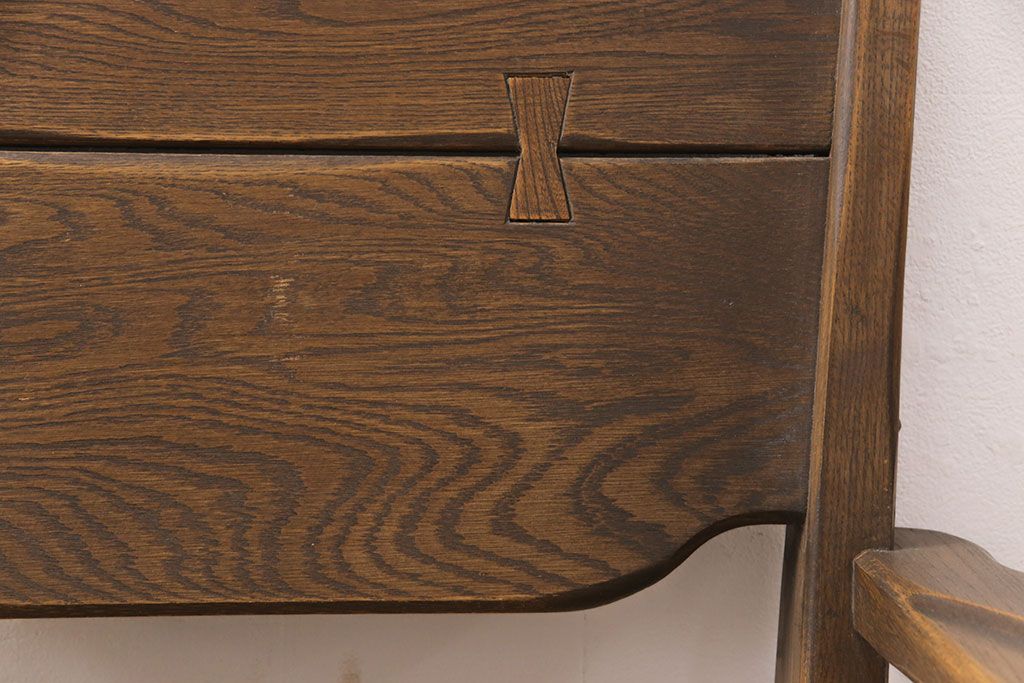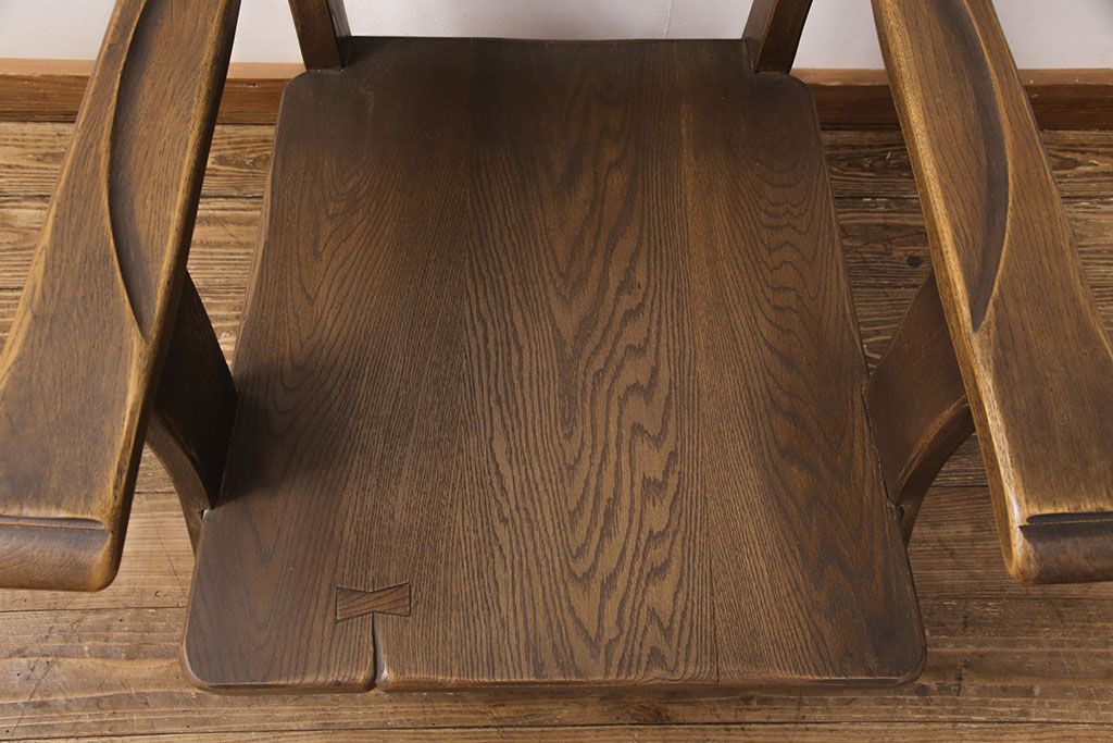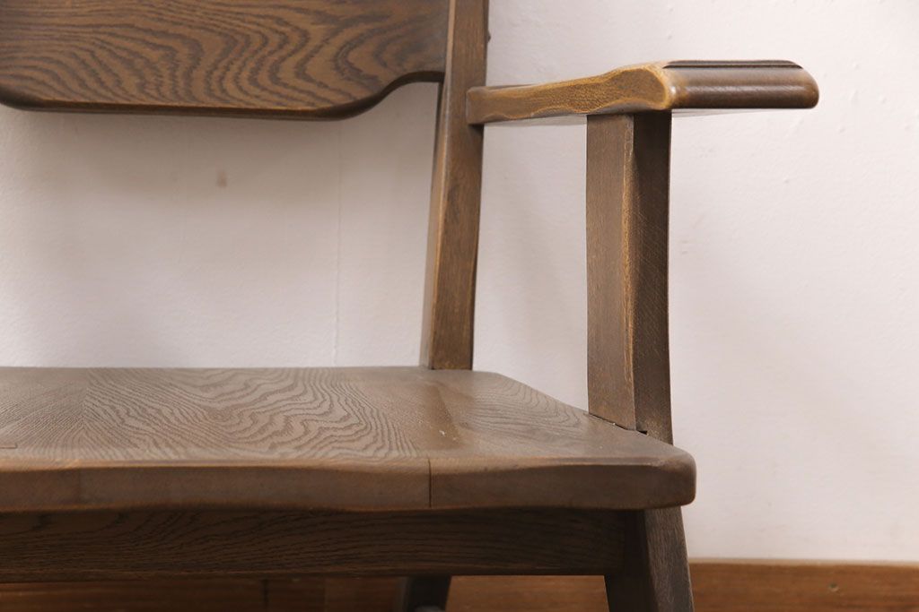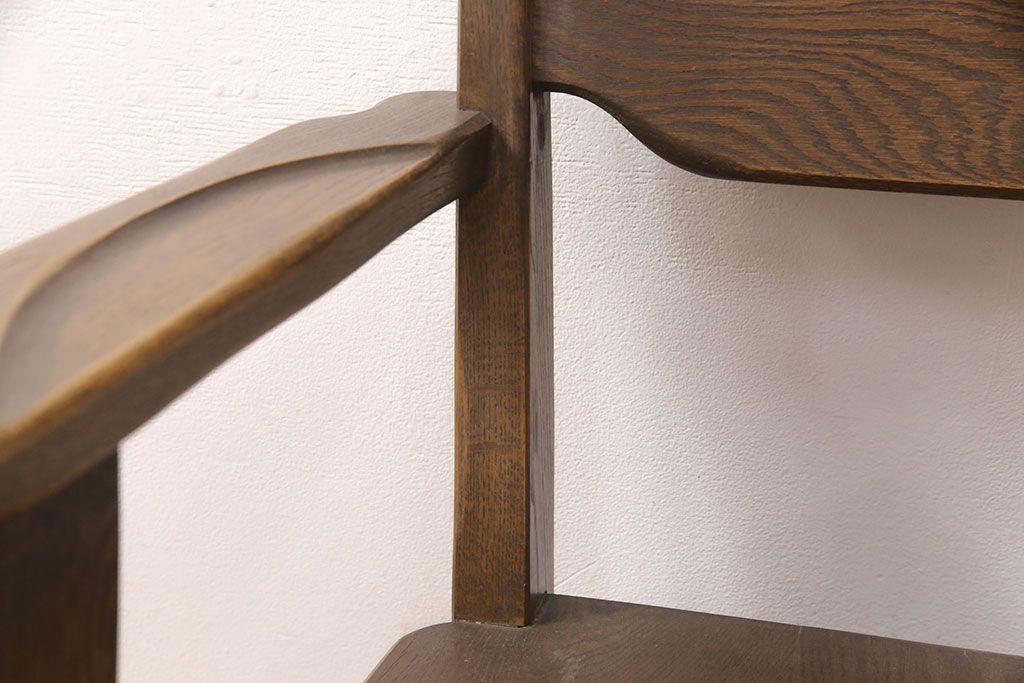 椅子・ベンチ> アームチェア > ビンテージ 美品 神戸洋家具 永田良介商店 特注品 民芸風 ナラ材 木の温もりを感じるアームチェア(1人掛け、椅子、ヴィンテージ)(R-051828)