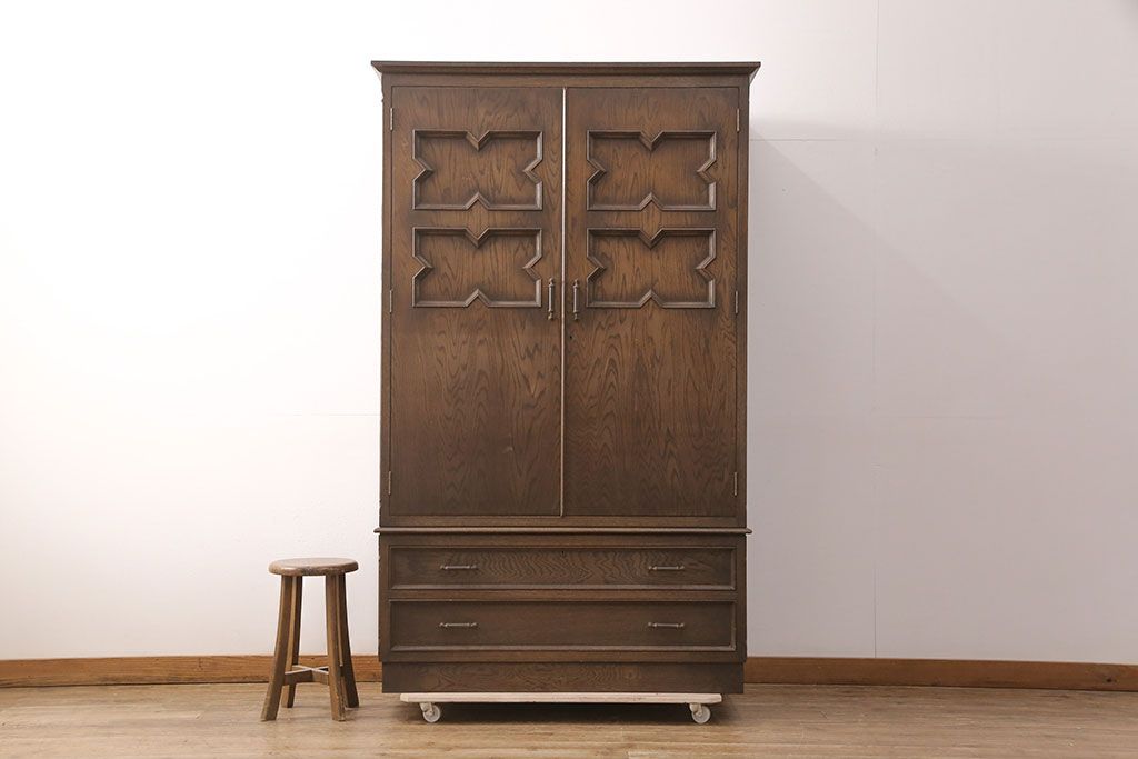 ビンテージ 永田良介商店 欧風のデザインが素敵なワードローブ(衣装箪笥、引き出し、洋服タンス、ヴィンテージ)(R-052012)