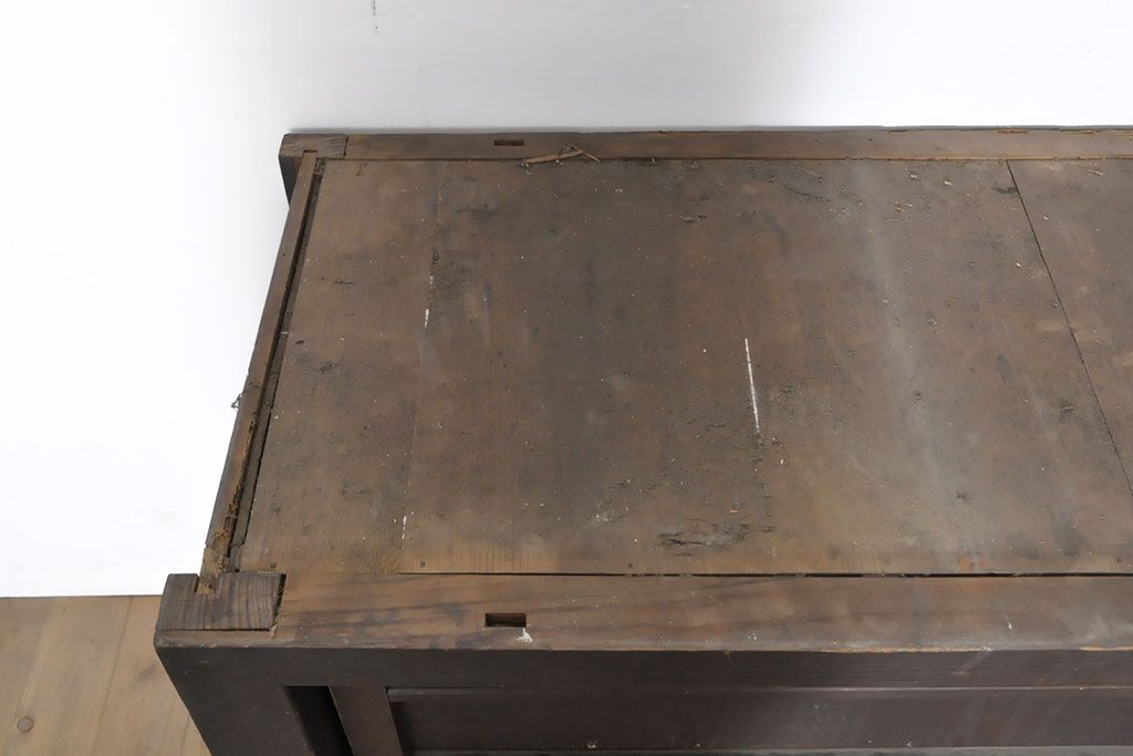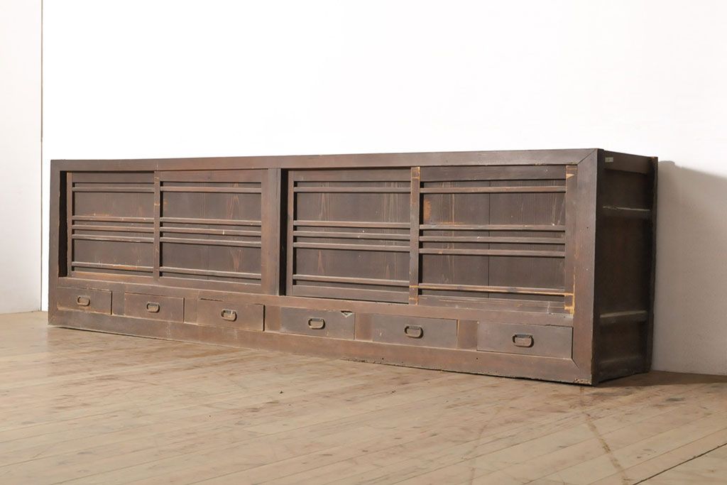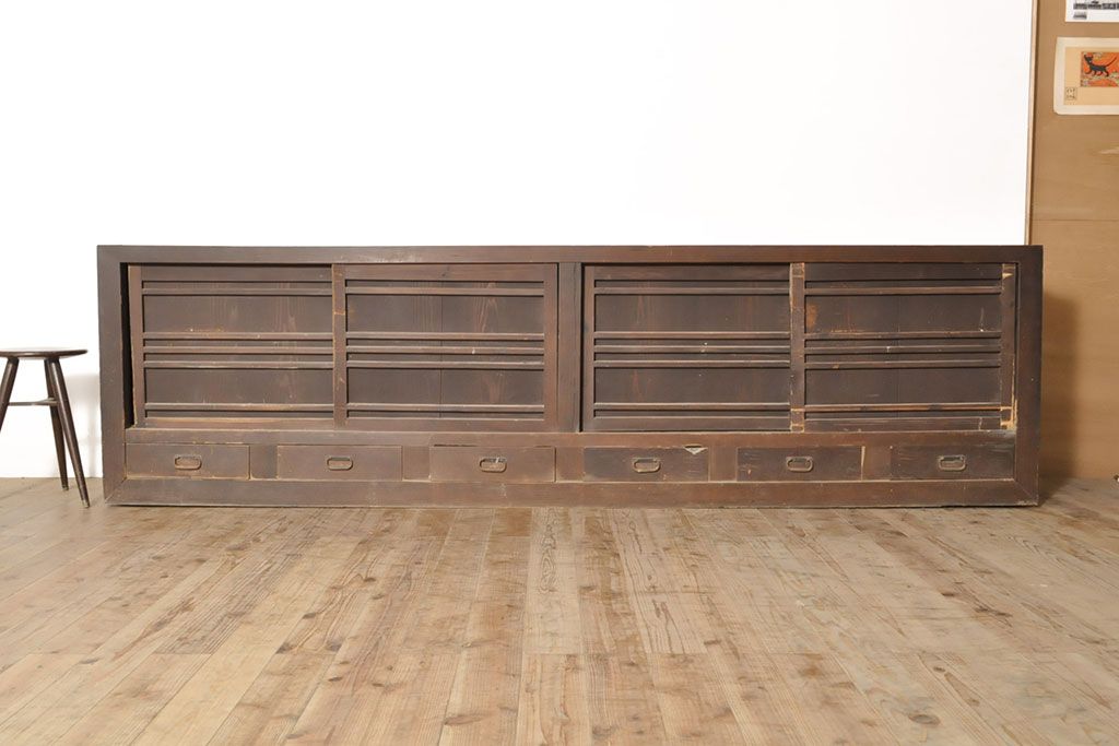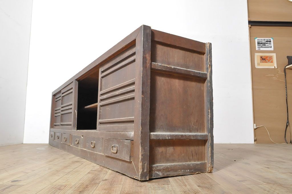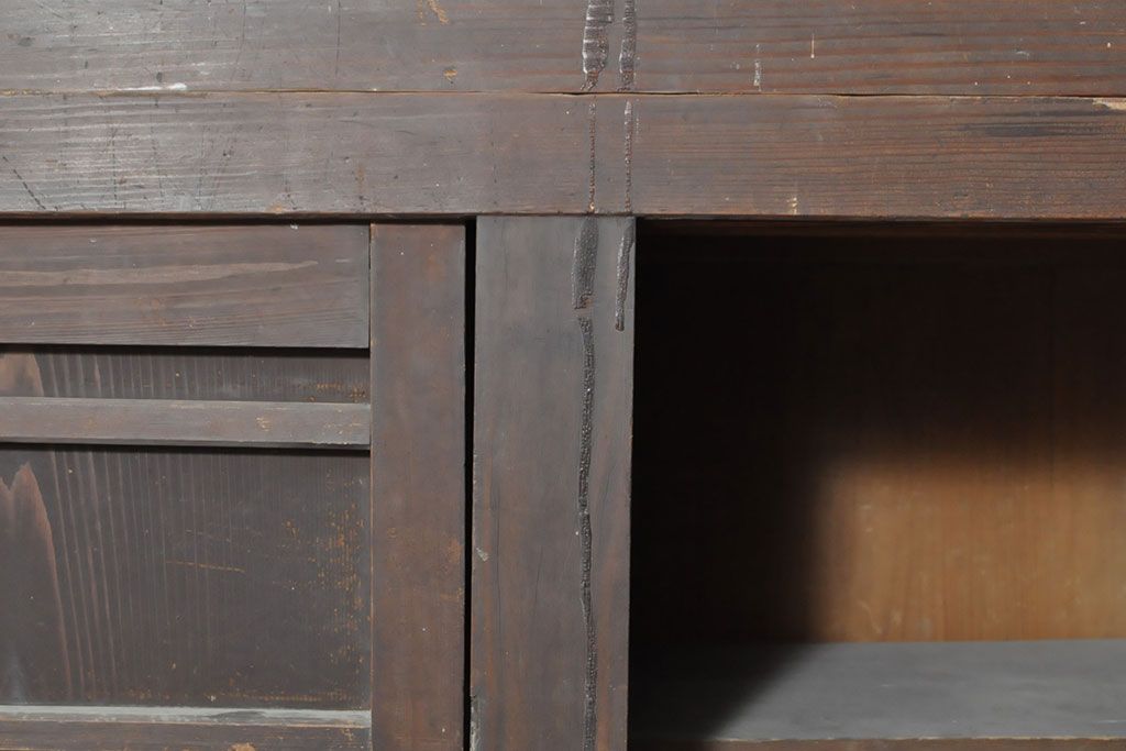 ラフジュ工房> キャビネット・戸棚> サイドキャビネット > 和製アンティーク 前面ヒノキ材 特大サイズ!九尺収納箪笥キャビネット(水屋箪笥、食器棚、収納棚、サイドボード)(R-051517)